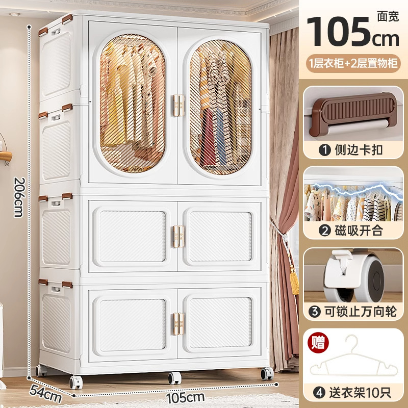 • 폭 105CM - 1단 옷장 + 단색 수납함 1개 [무료 옷걸이 10개]