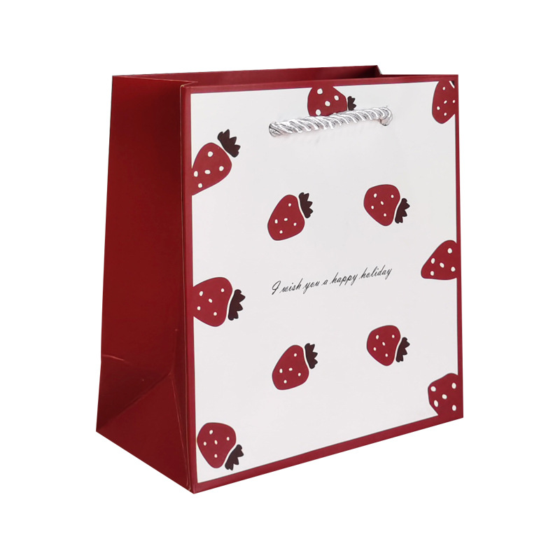 딸기 만화 선물 포장 가방 인스타 스타일 생일 기념품 가방 선물 가방 선물 가방 핸드백 종이 가방스토어 가기