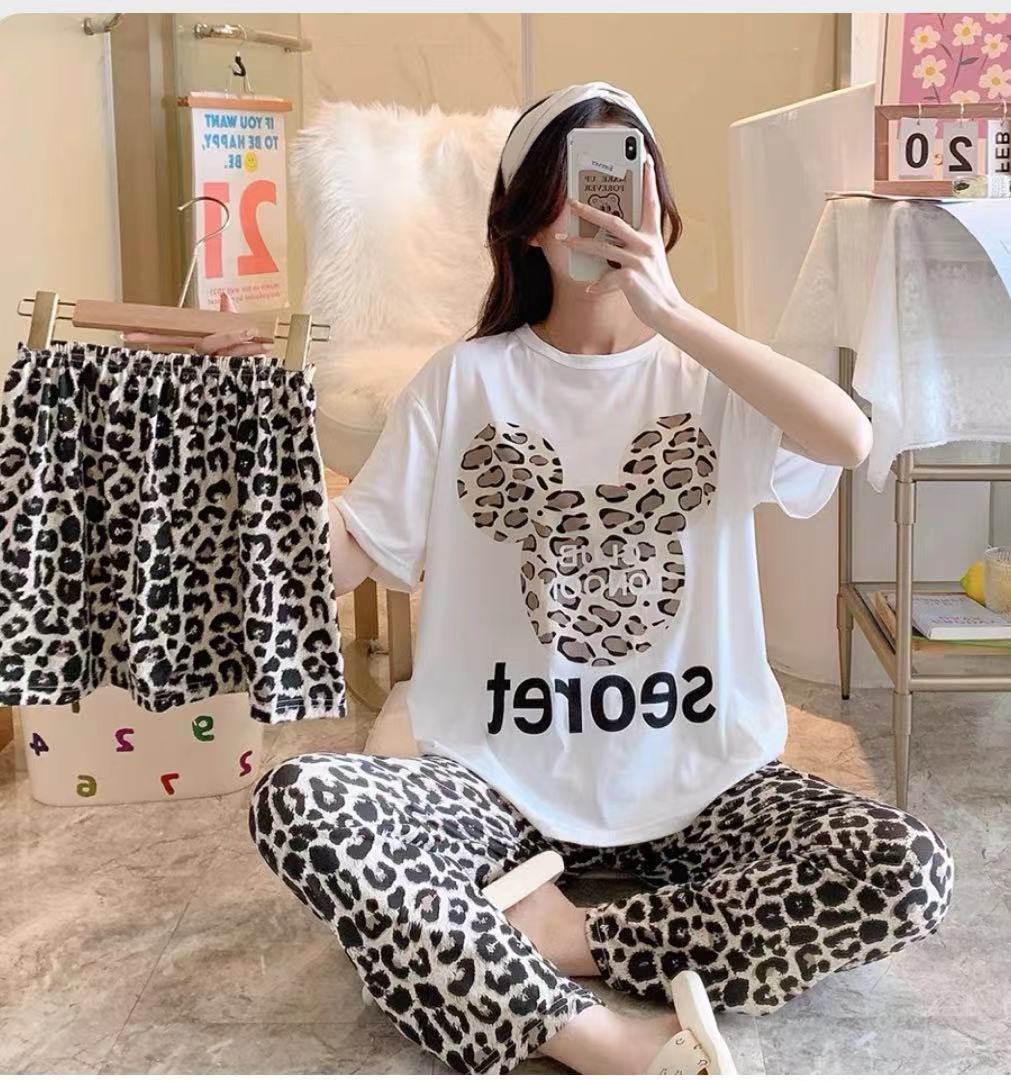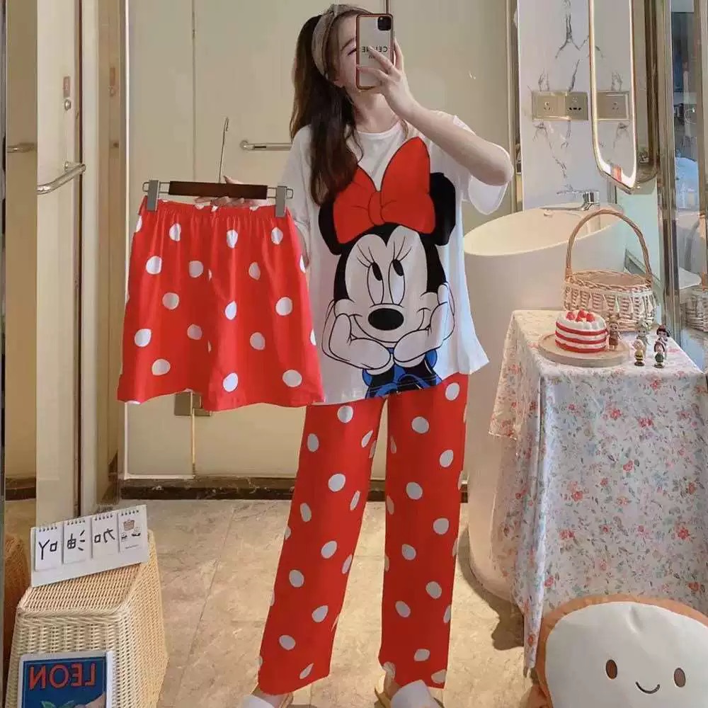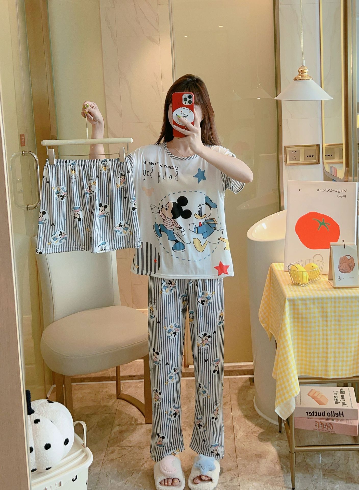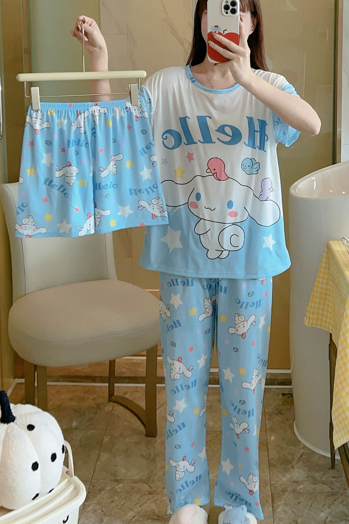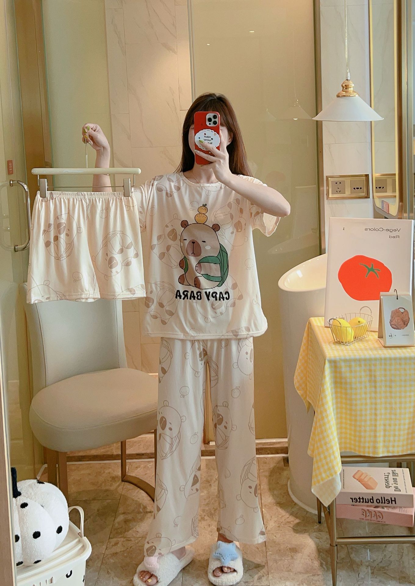 대외 무역 국경 파자마 여성 여름 3 종 세트 여름 얇은 반팔 반바지 바지 달콤한 귀여운 여성용 홈 옷