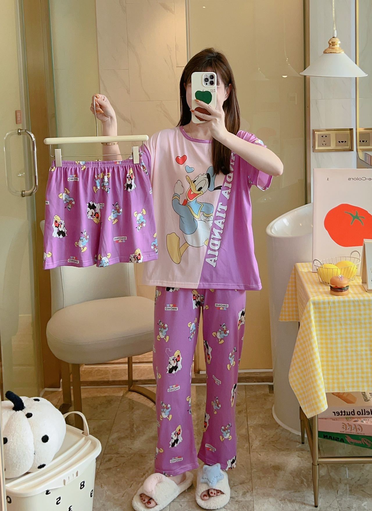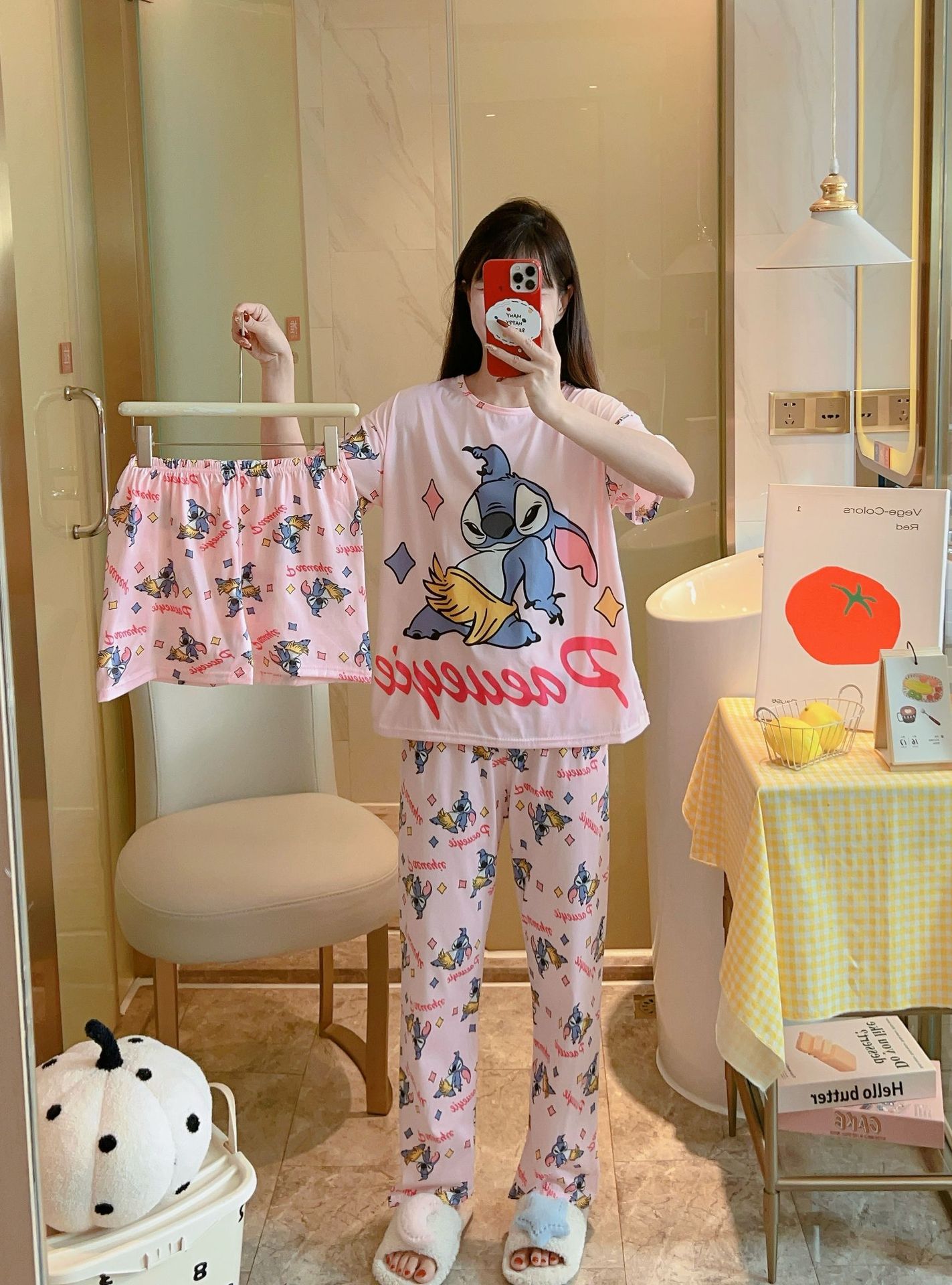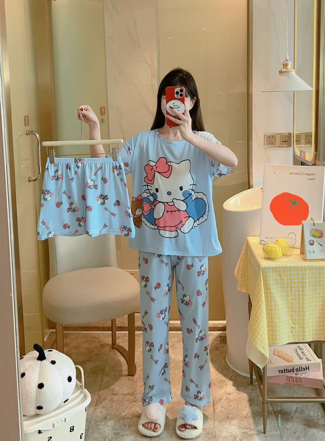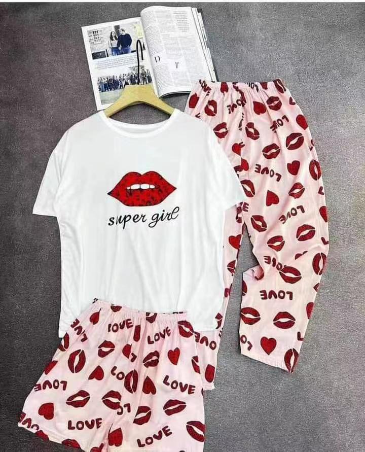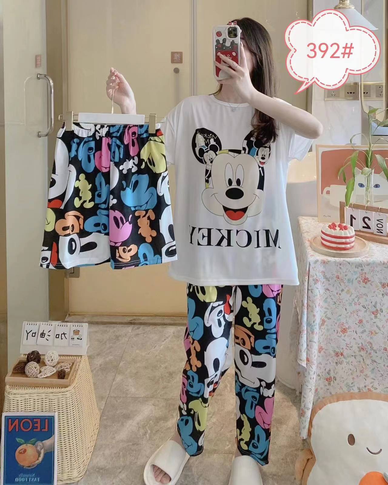 대외 무역 국경 파자마 여성 여름 3 종 세트 여름 얇은 반팔 반바지 바지 달콤한 귀여운 여성용 홈 옷