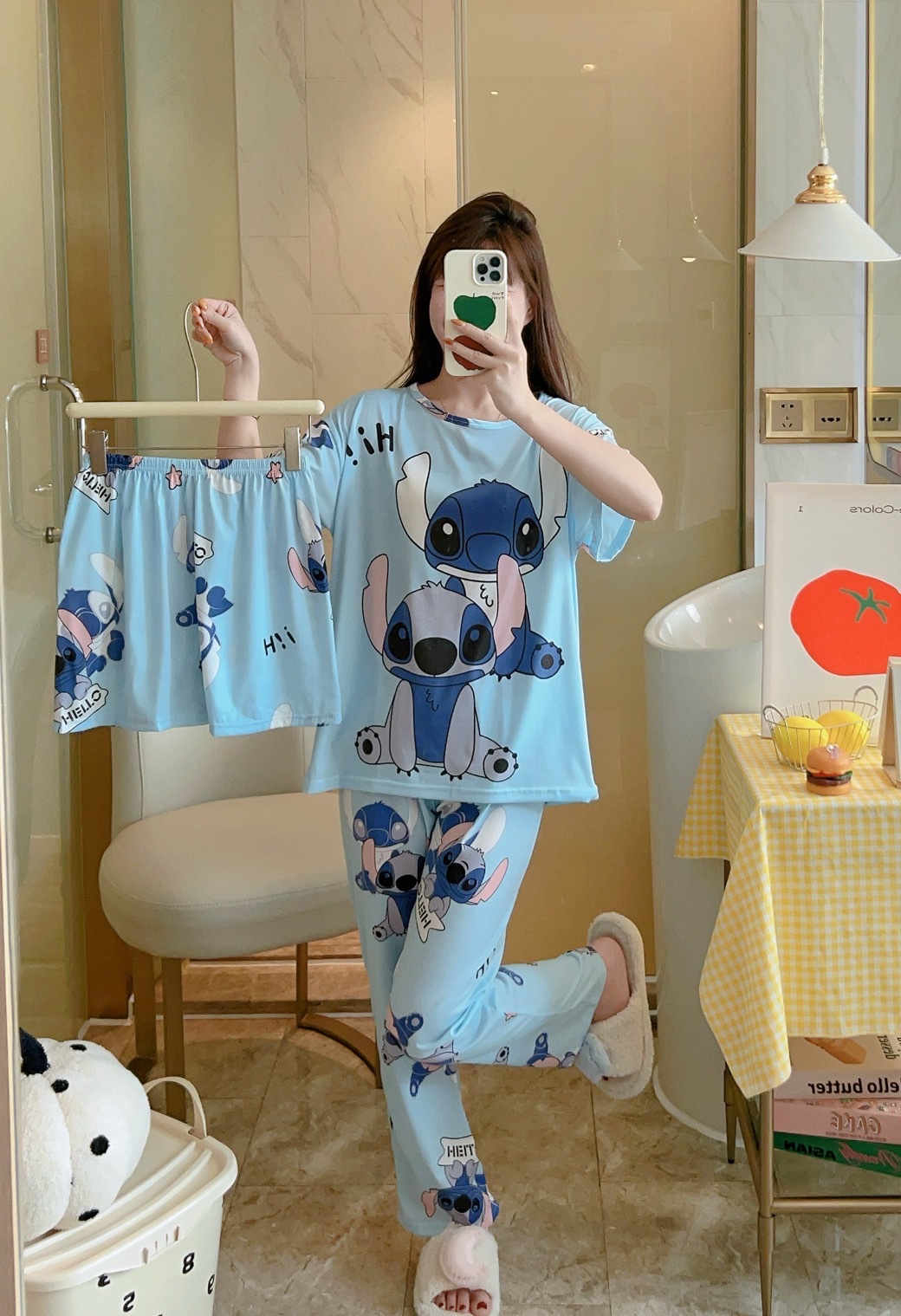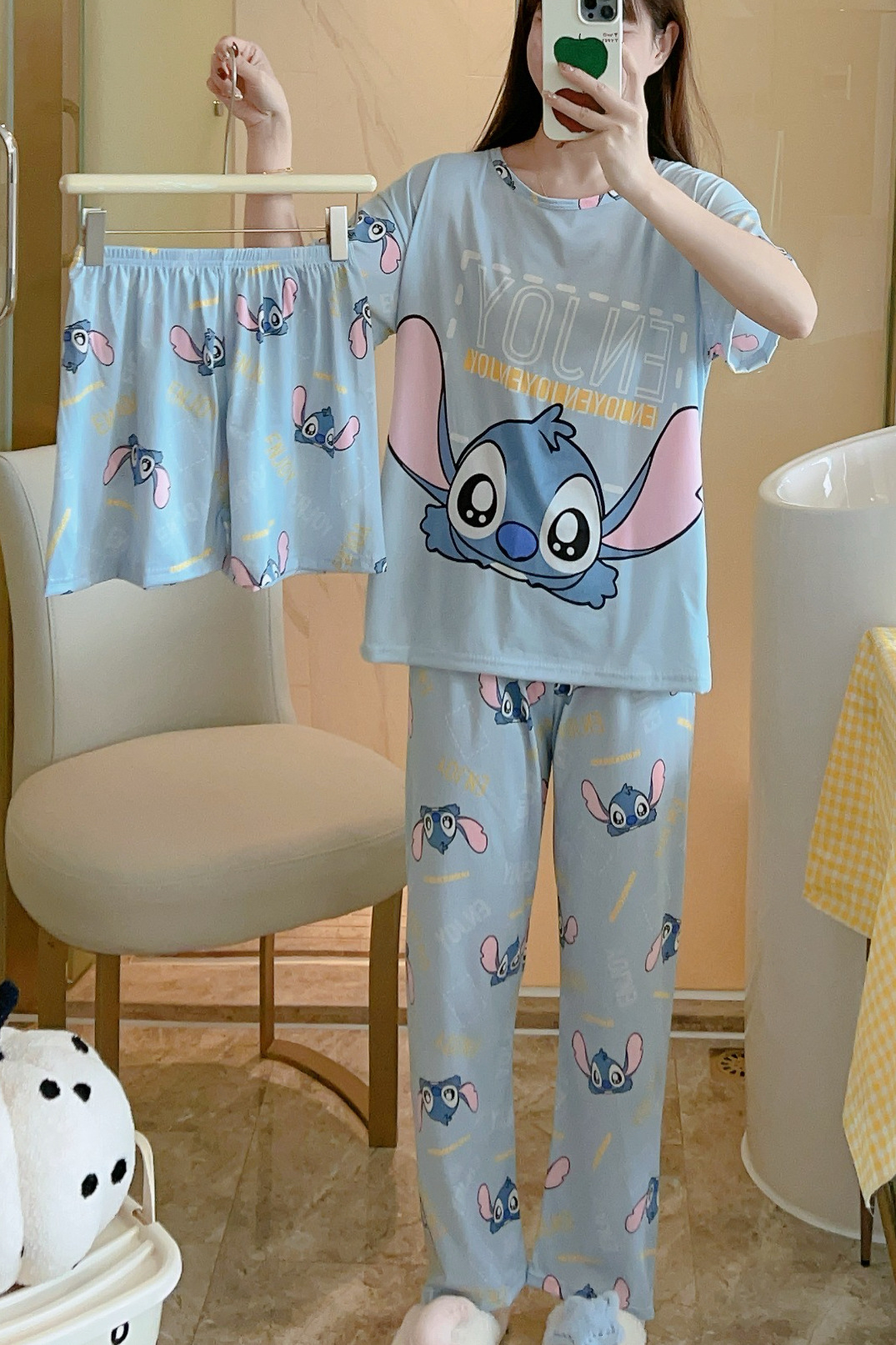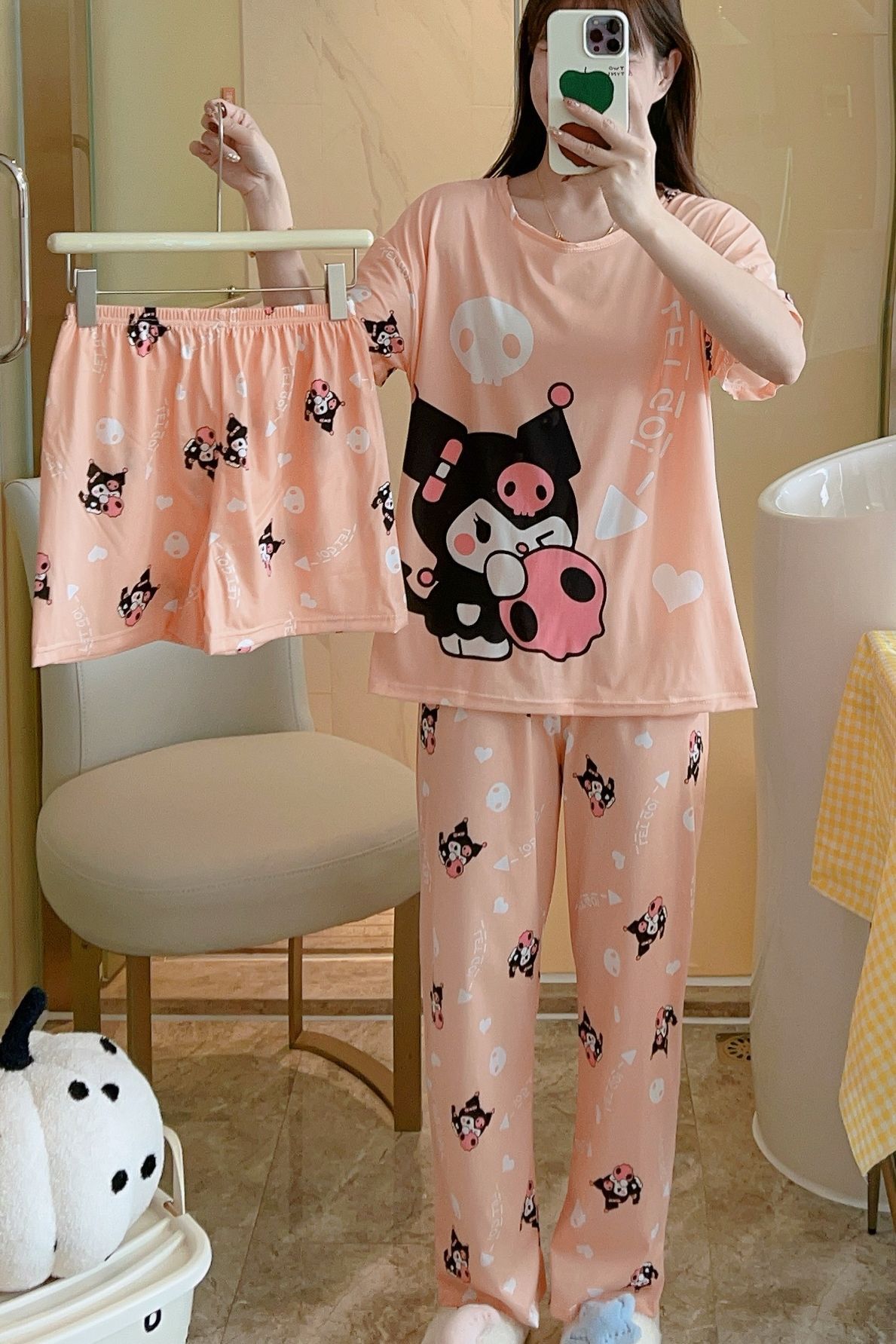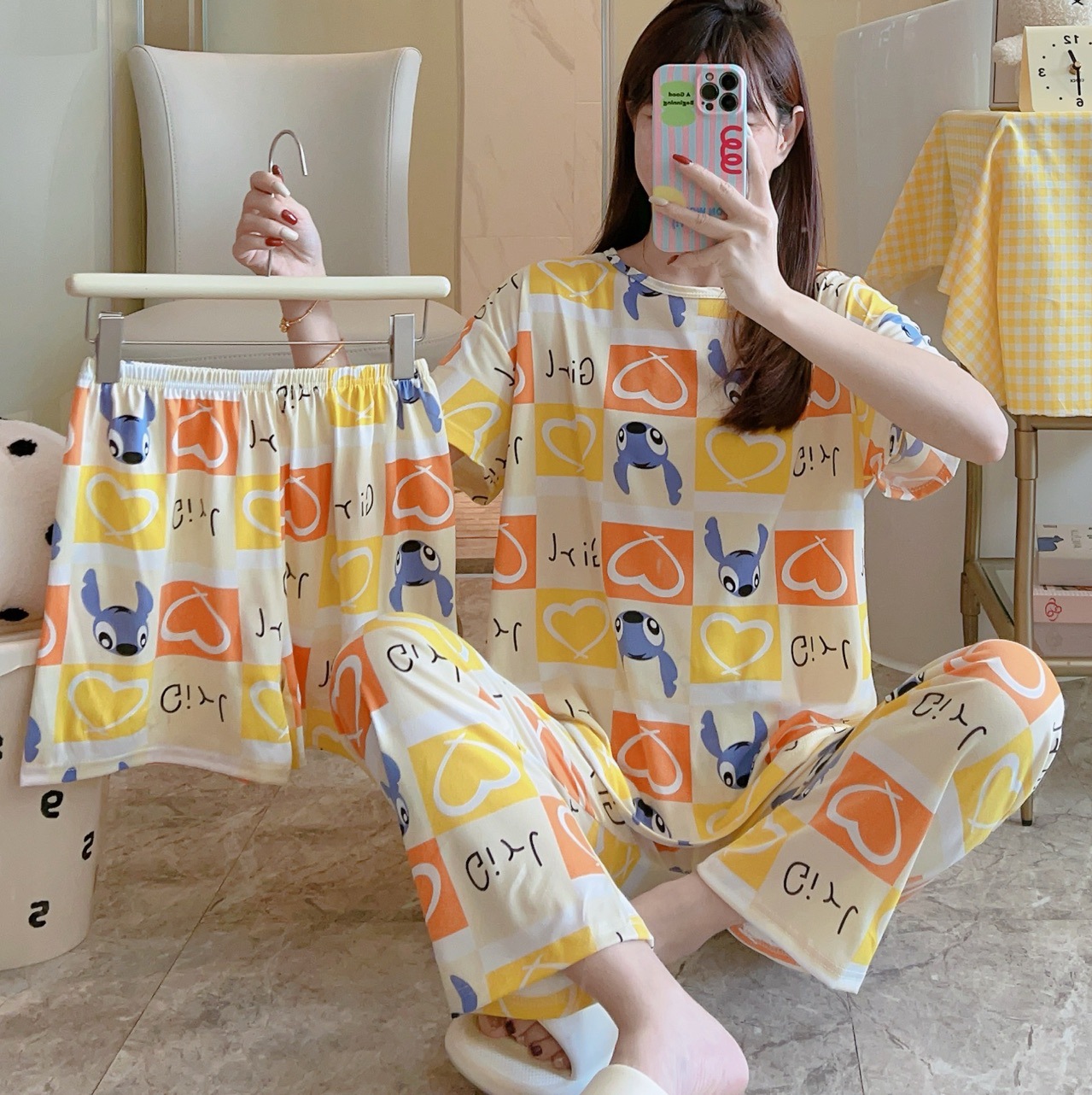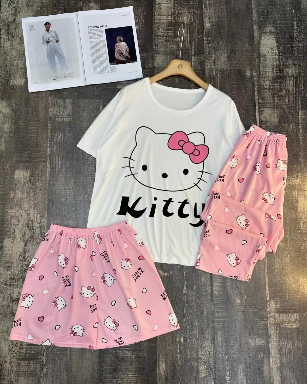 대외 무역 국경 파자마 여성 여름 3 종 세트 여름 얇은 반팔 반바지 바지 달콤한 귀여운 여성용 홈 옷