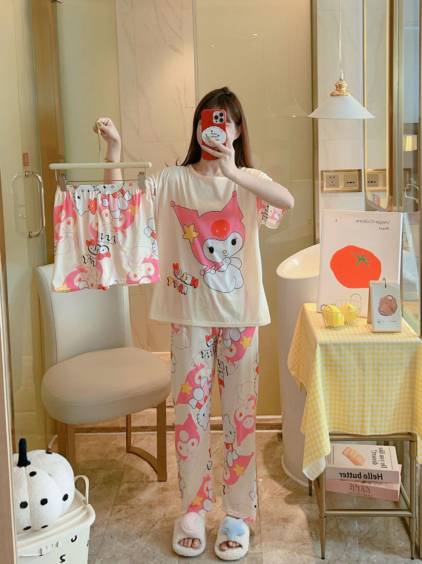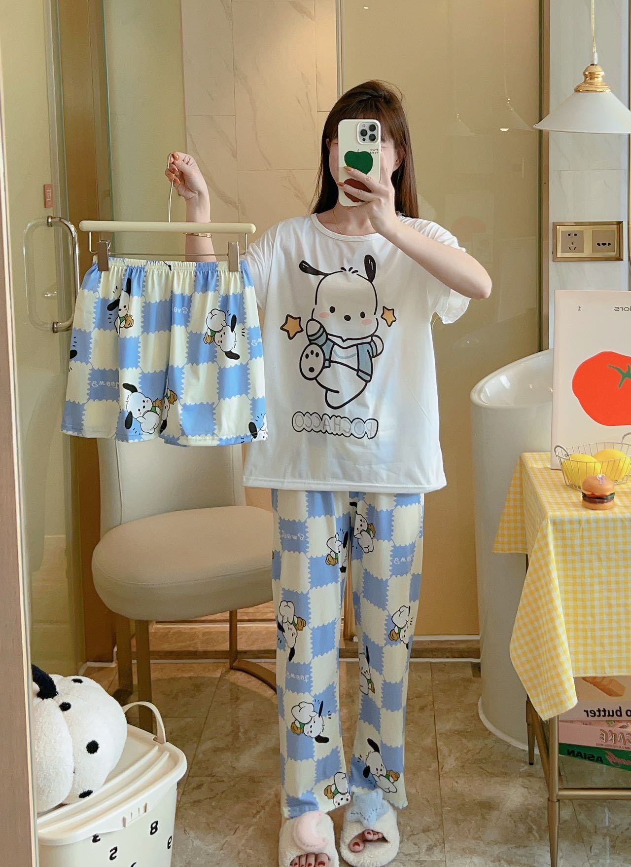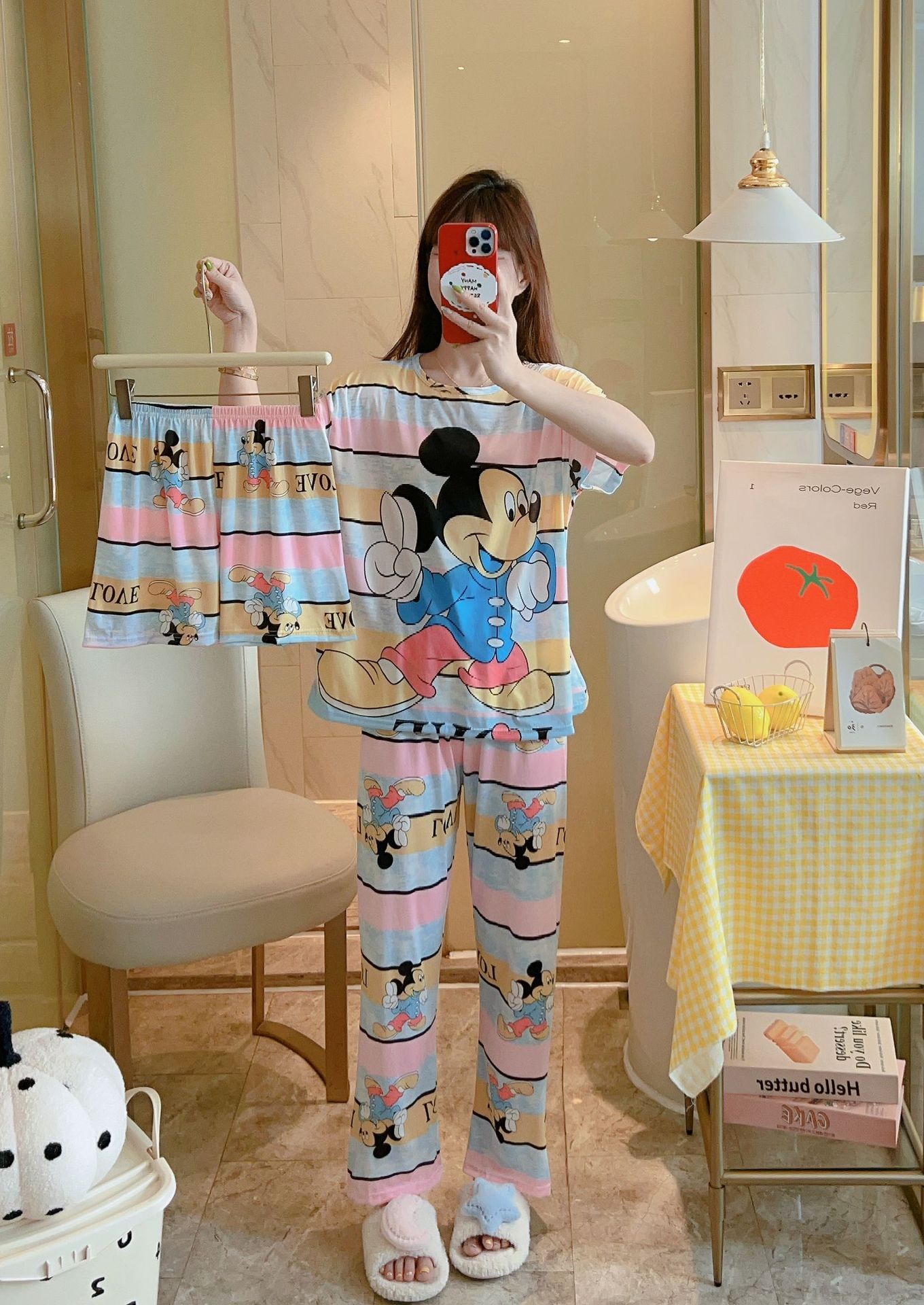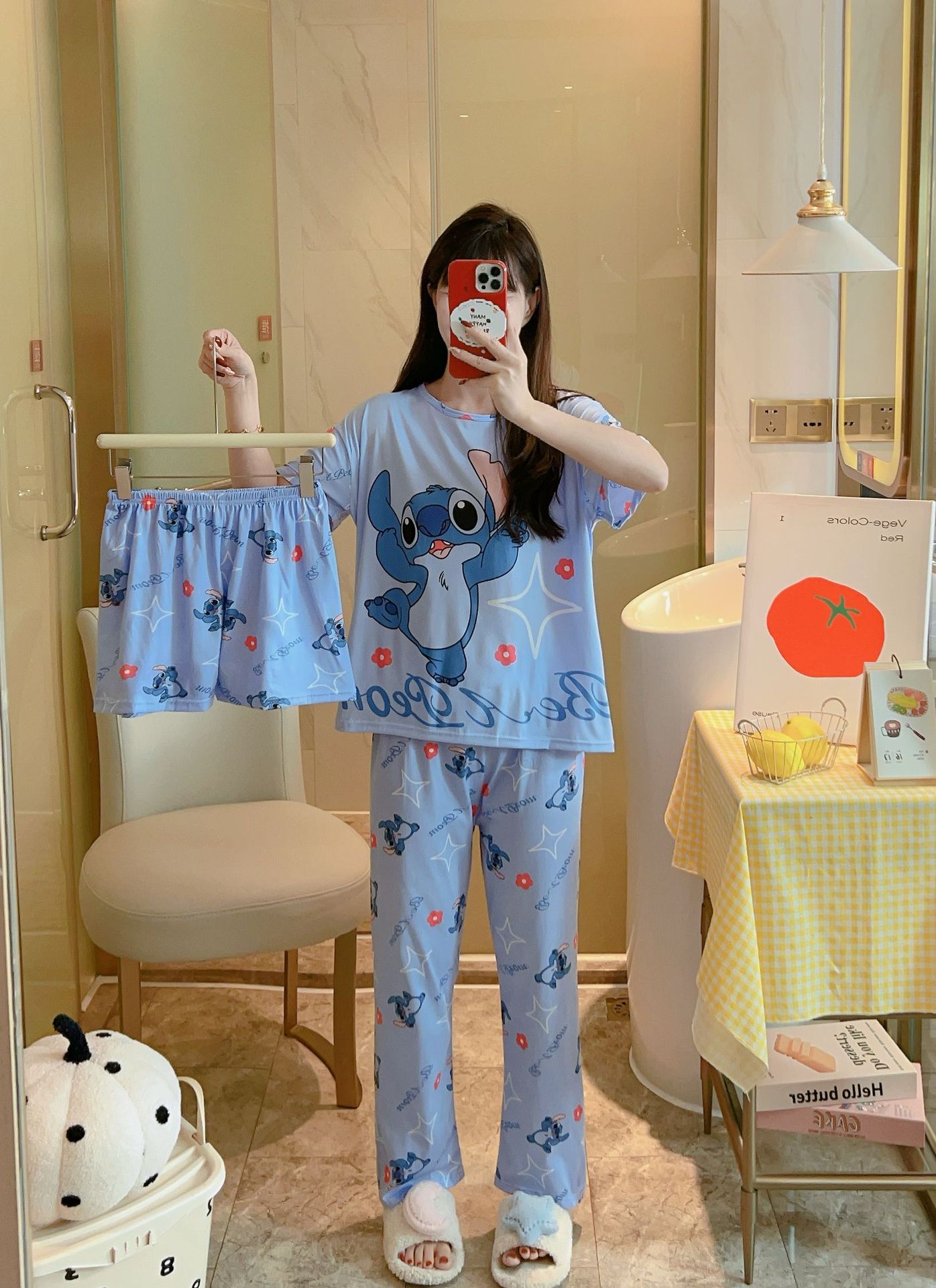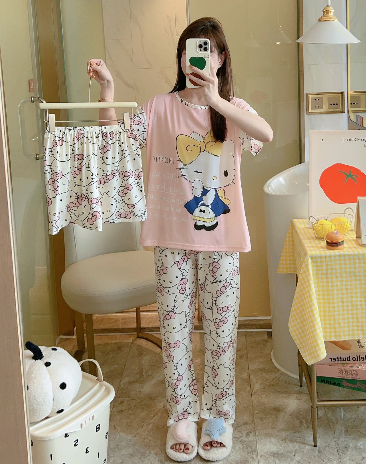 대외 무역 국경 파자마 여성 여름 3 종 세트 여름 얇은 반팔 반바지 바지 달콤한 귀여운 여성용 홈 옷