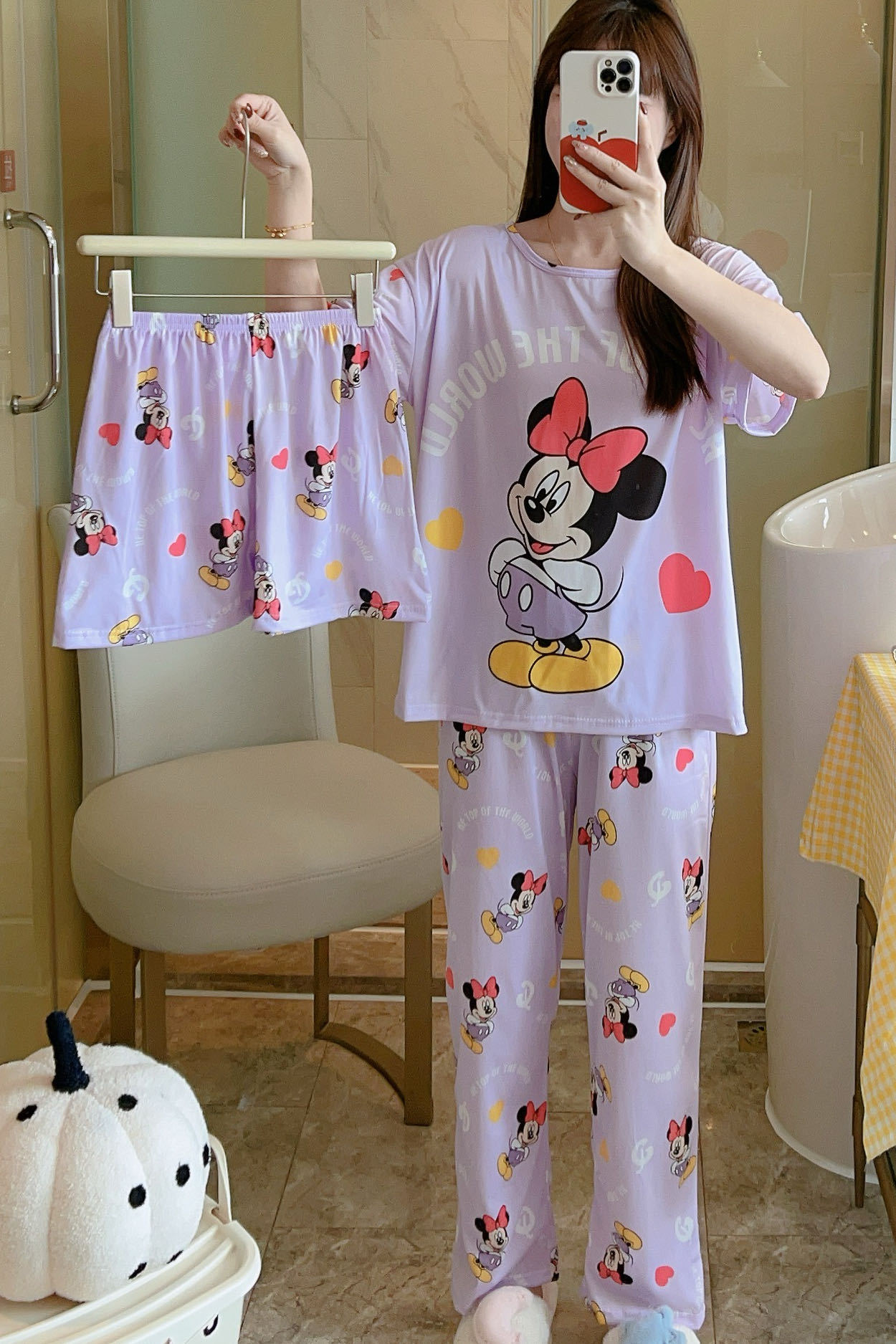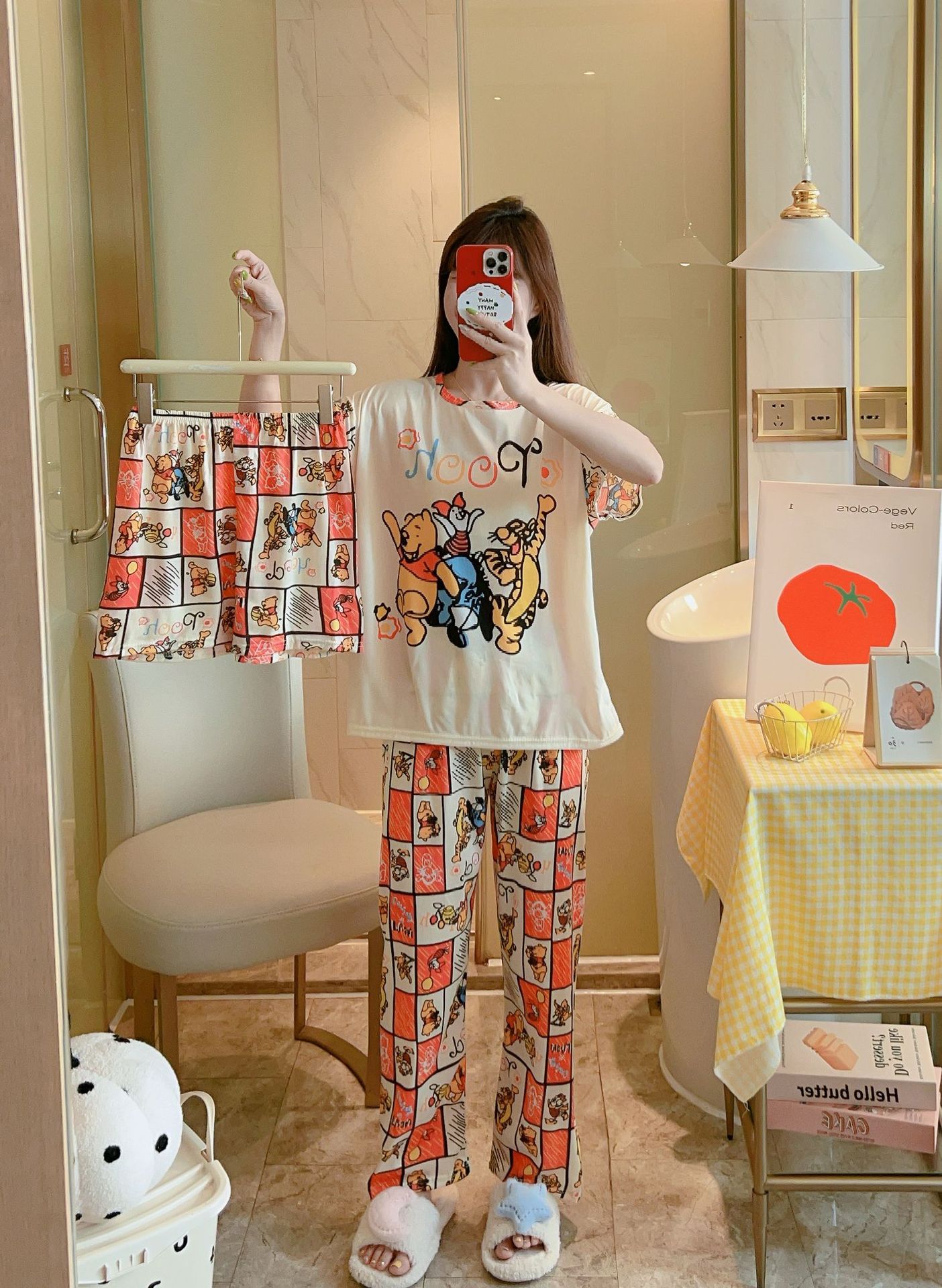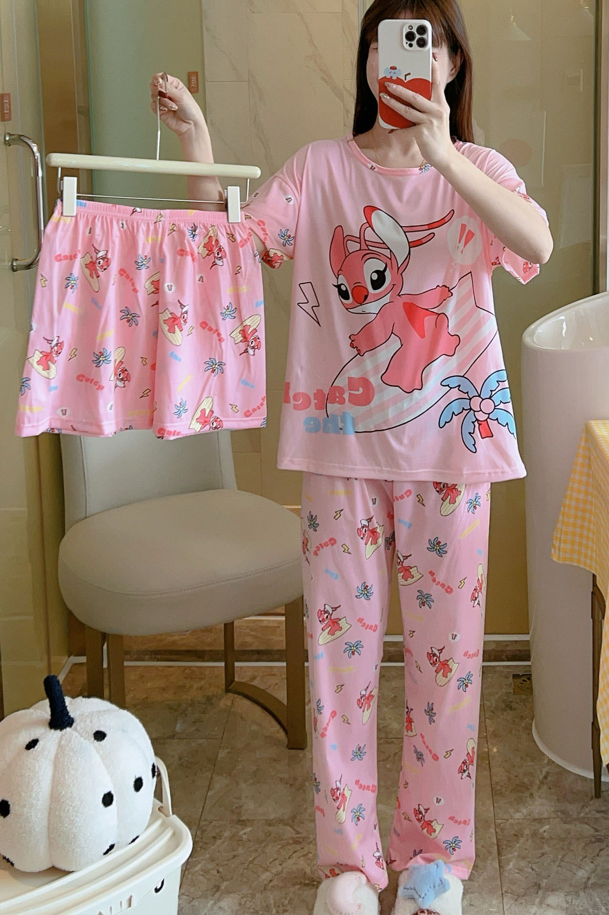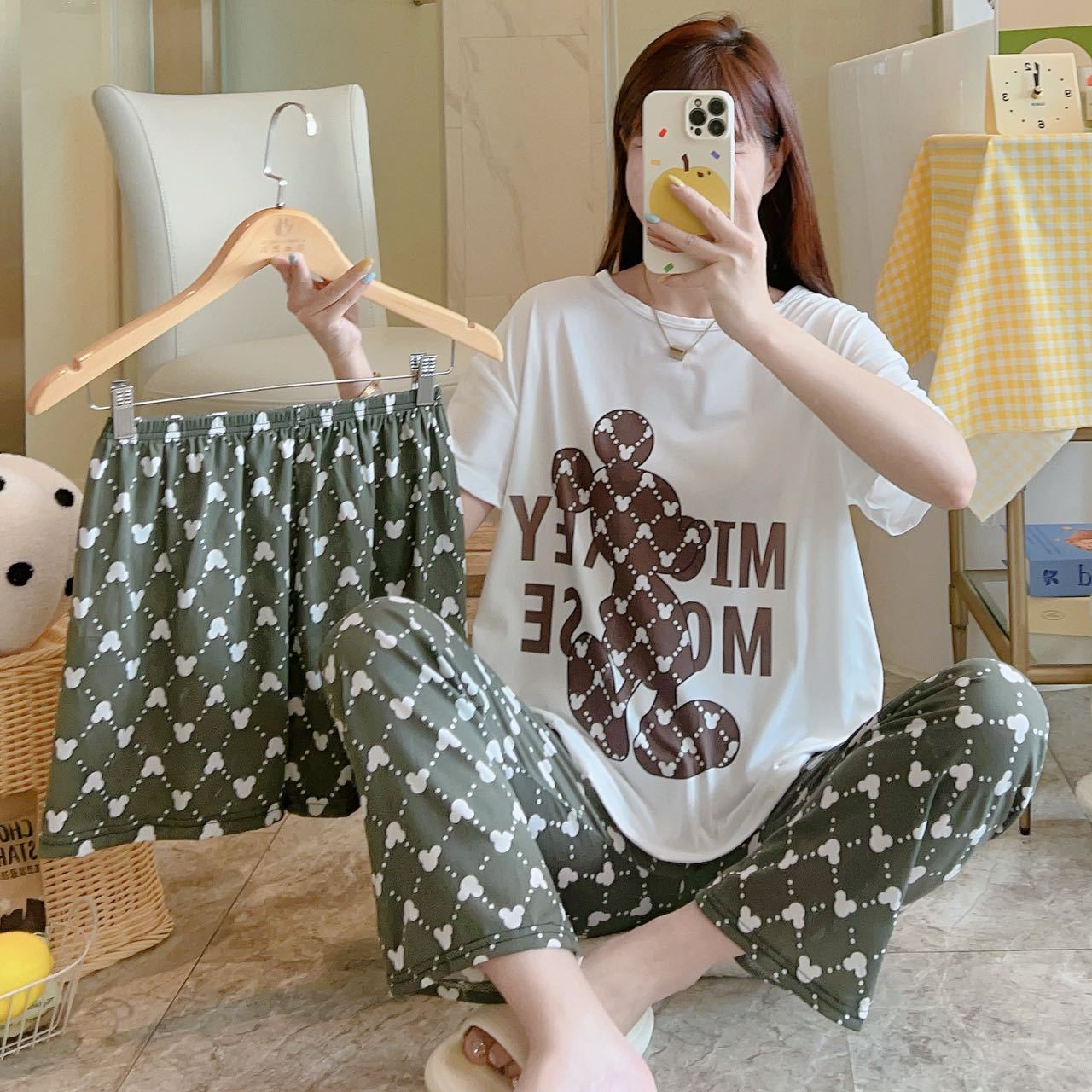 대외 무역 국경 파자마 여성 여름 3 종 세트 여름 얇은 반팔 반바지 바지 달콤한 귀여운 여성용 홈 옷