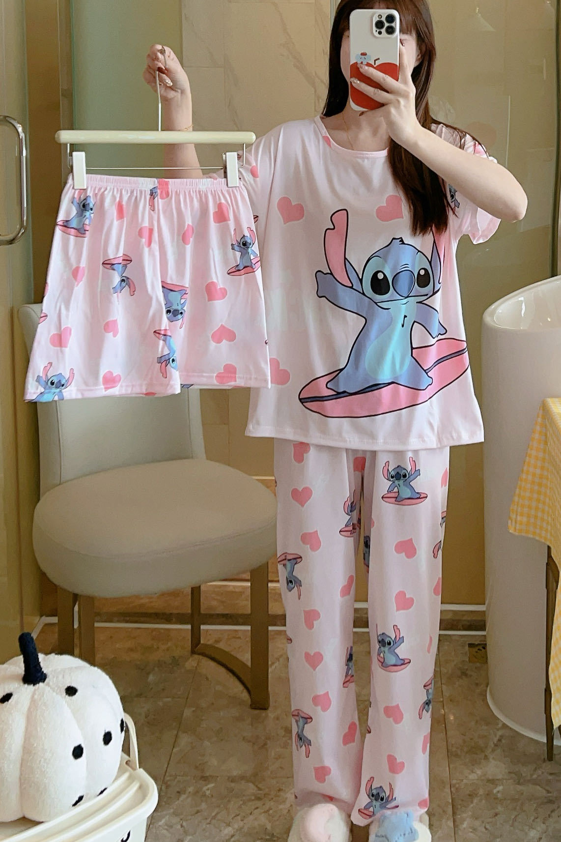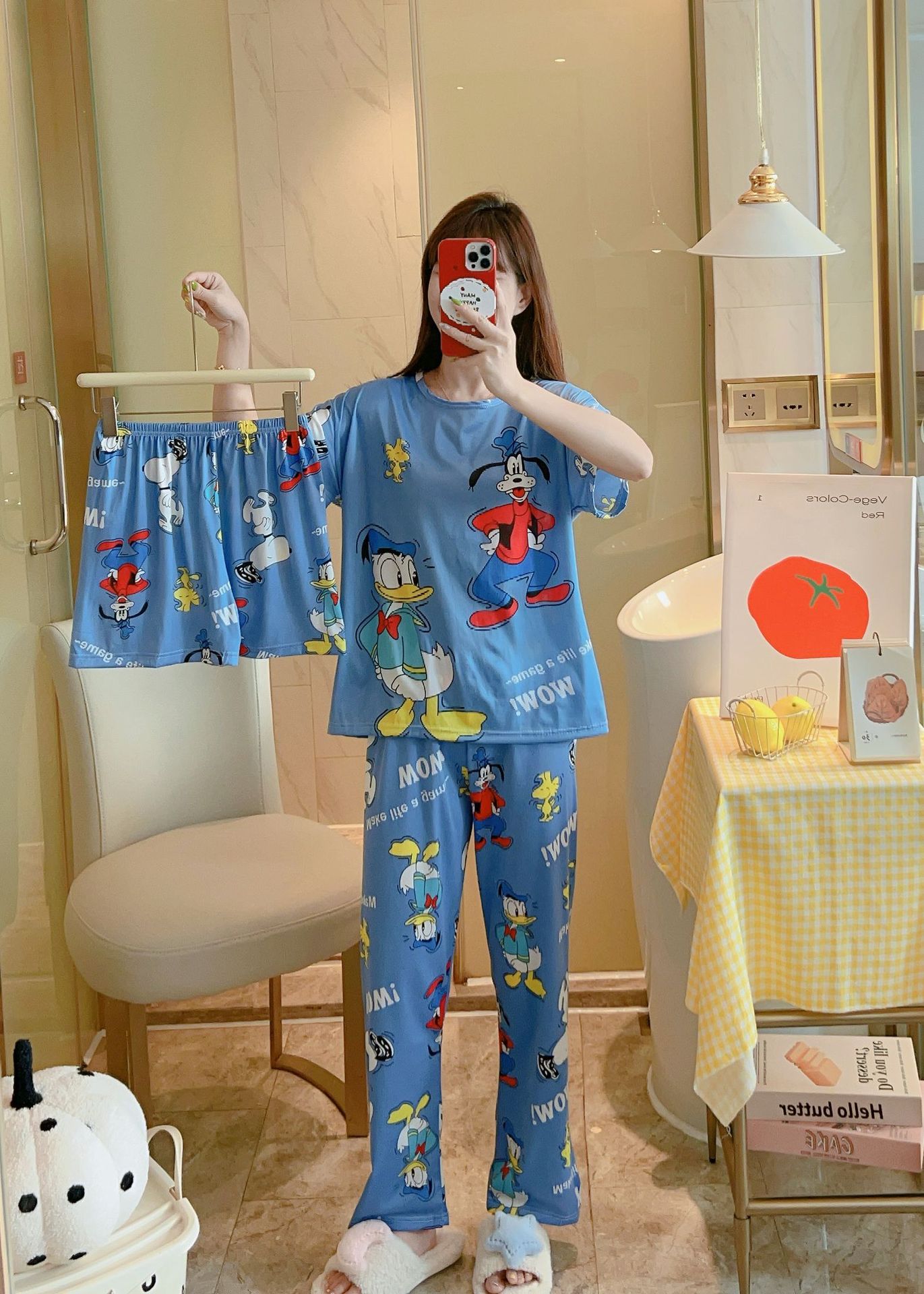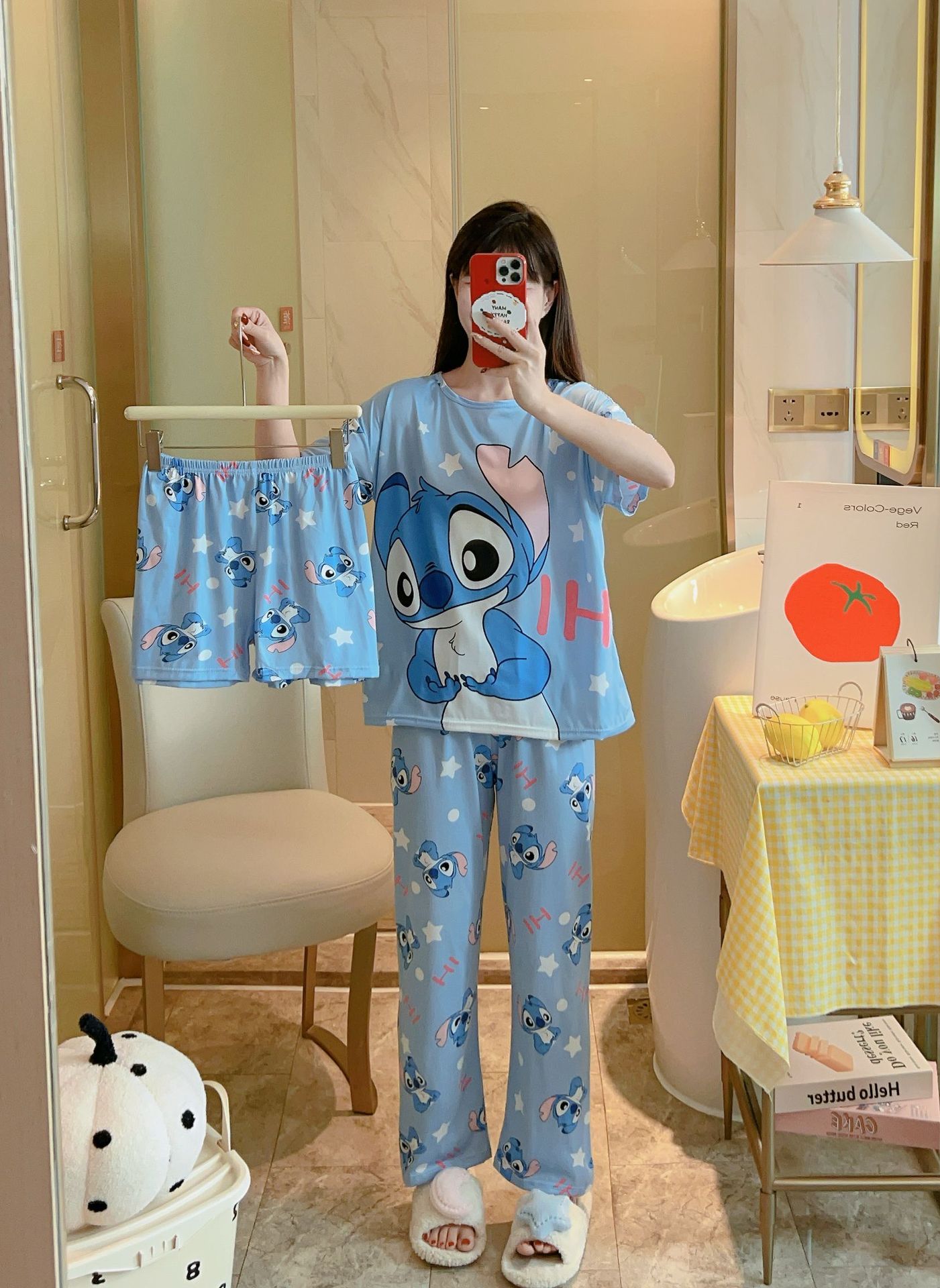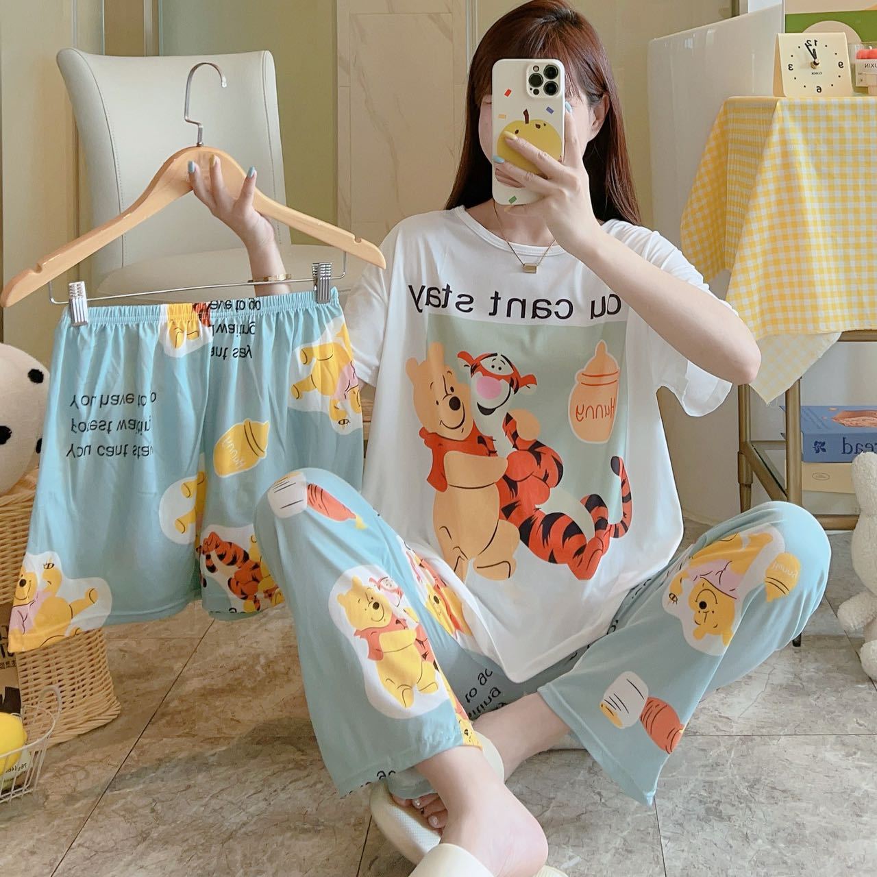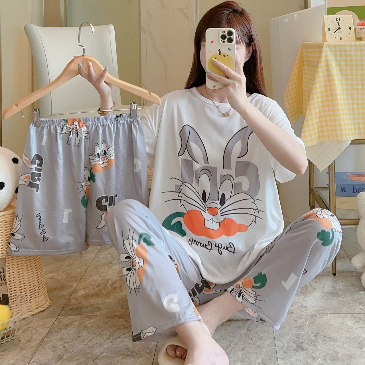 대외 무역 국경 파자마 여성 여름 3 종 세트 여름 얇은 반팔 반바지 바지 달콤한 귀여운 여성용 홈 옷