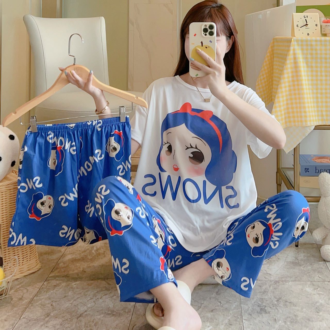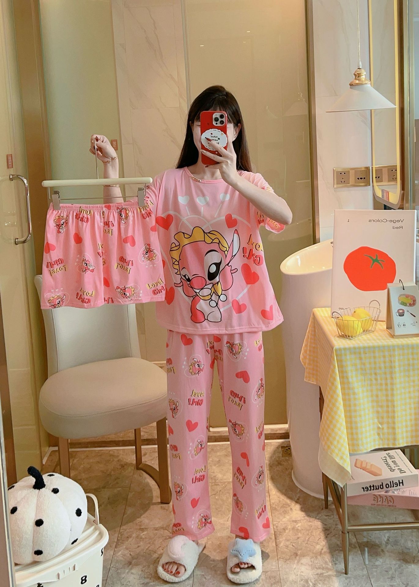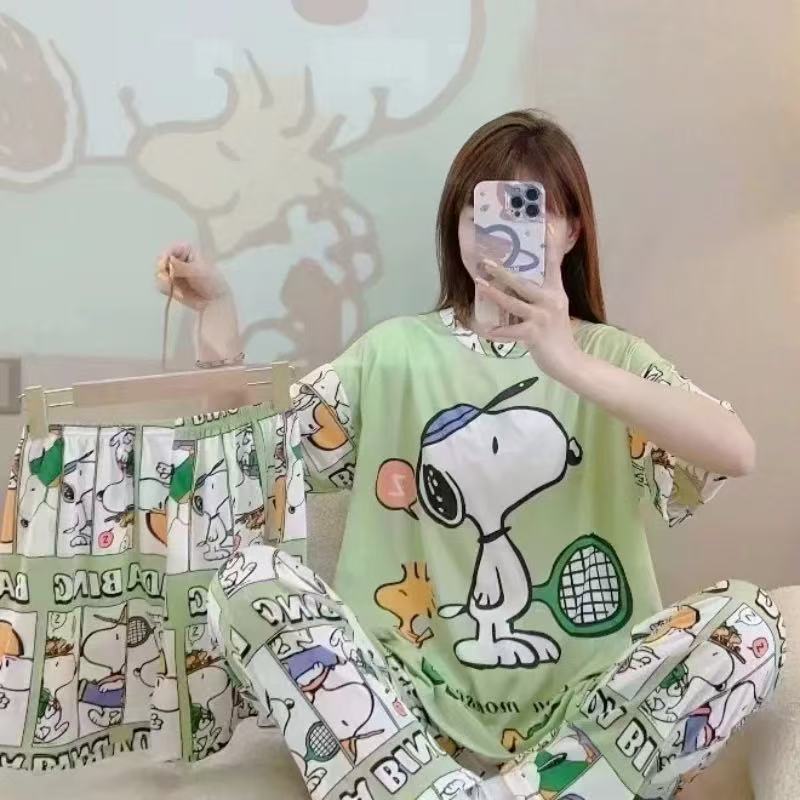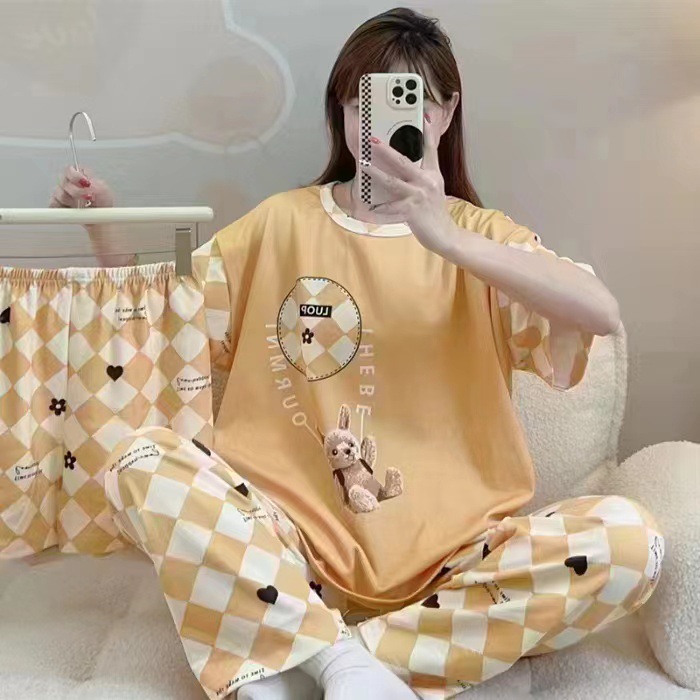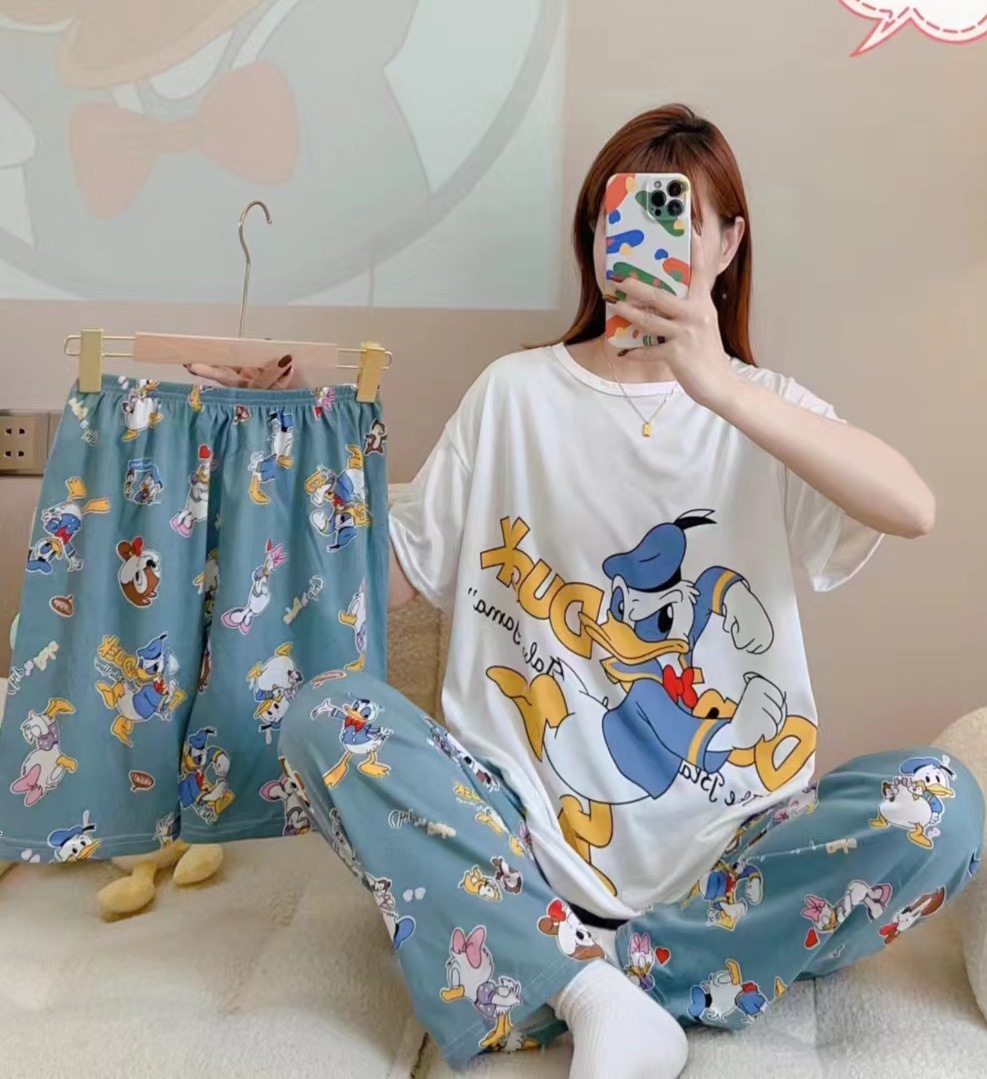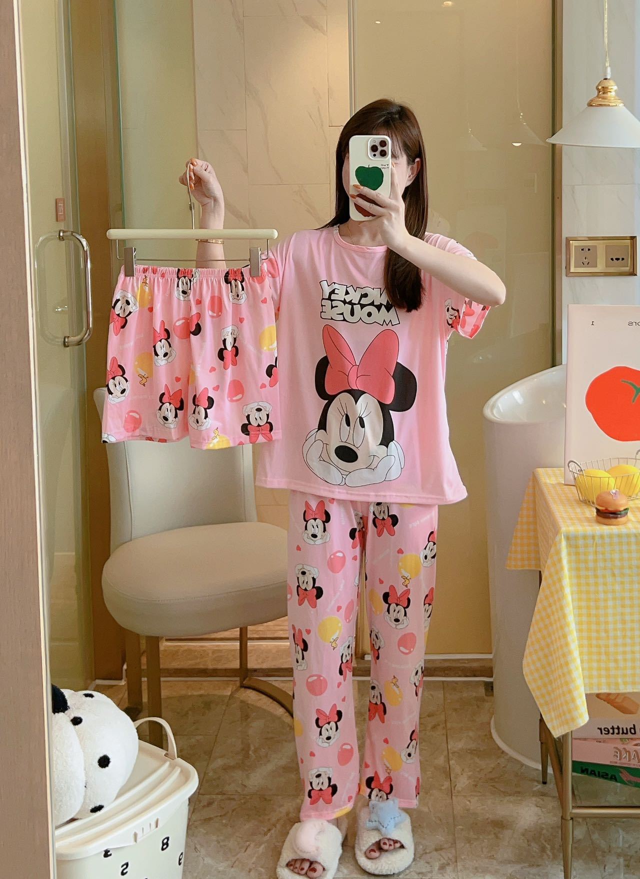 대외 무역 국경 파자마 여성 여름 3 종 세트 여름 얇은 반팔 반바지 바지 달콤한 귀여운 여성용 홈 옷