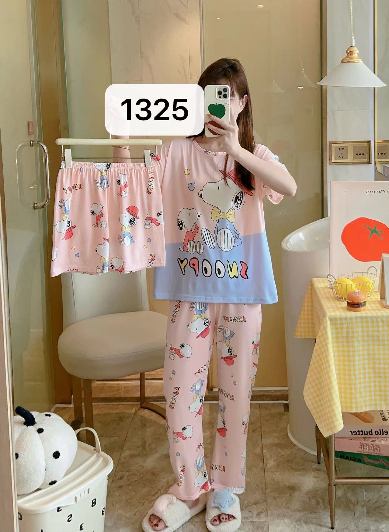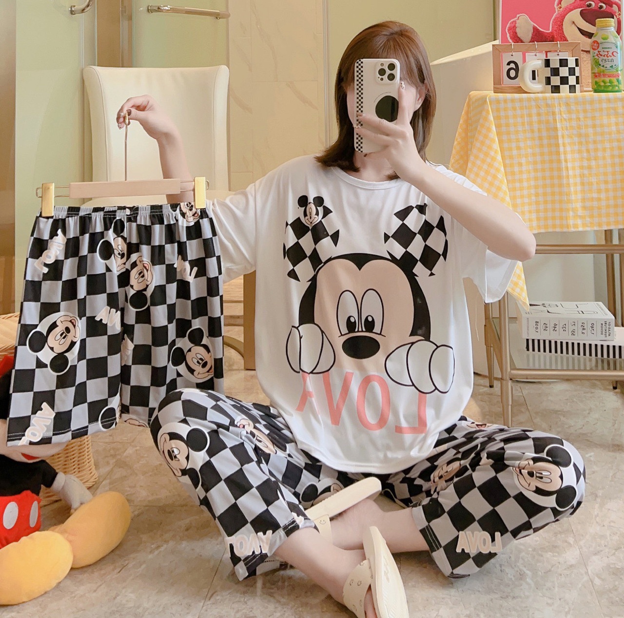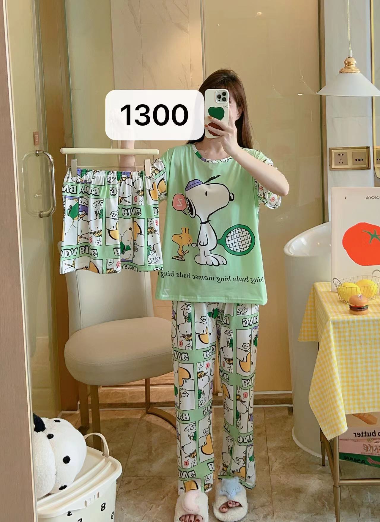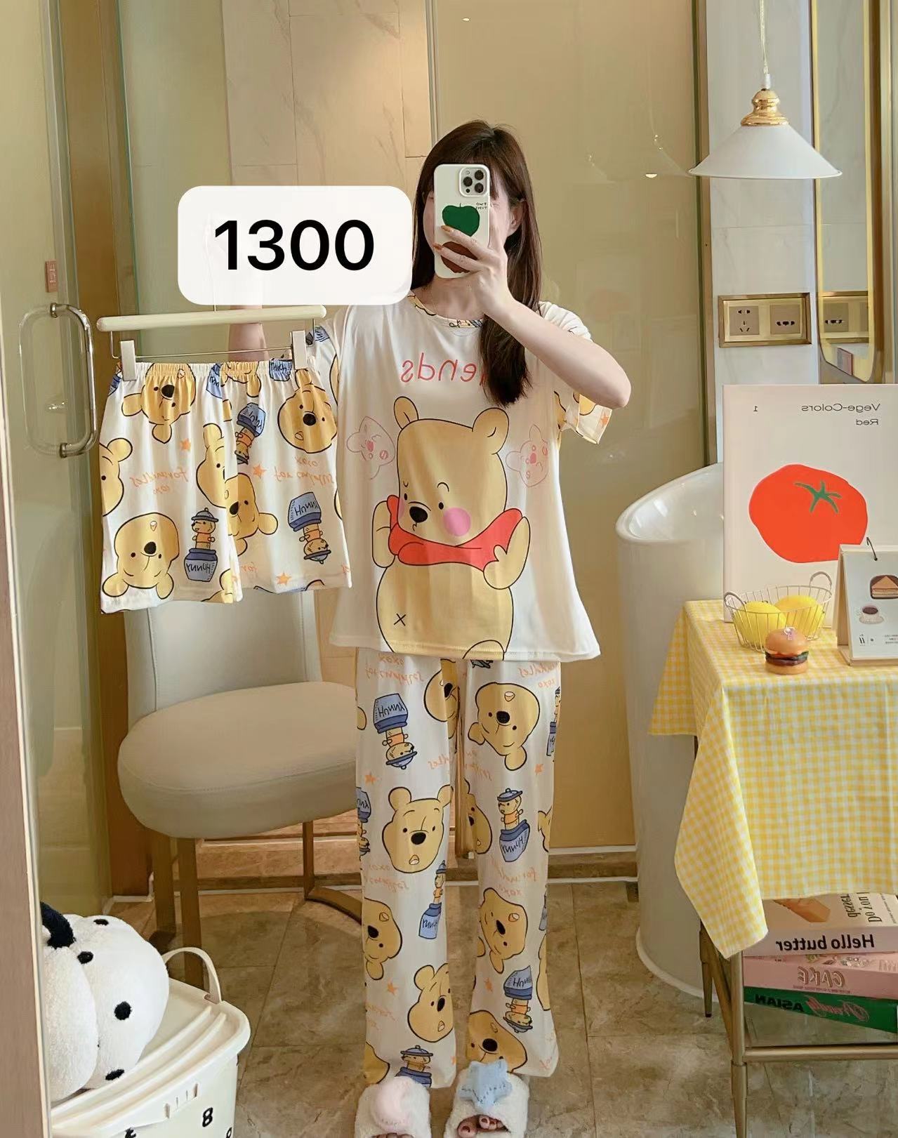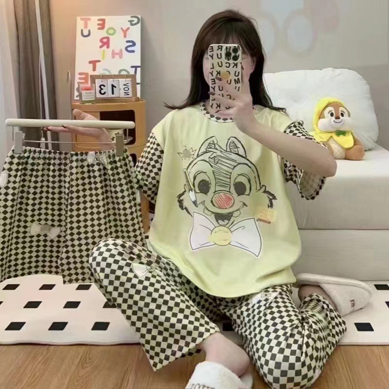 대외 무역 국경 파자마 여성 여름 3 종 세트 여름 얇은 반팔 반바지 바지 달콤한 귀여운 여성용 홈 옷