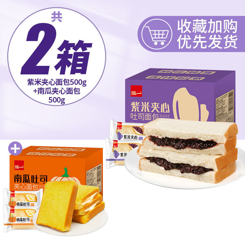 • [1개 구매시 1개 증정] 보라색 쌀 샌드위치 빵 500g + 호박 샌드위치 빵 500g.