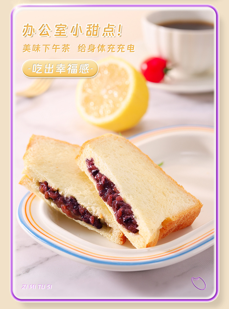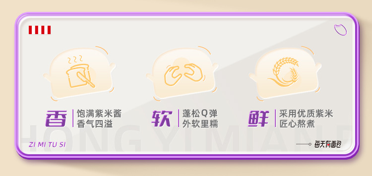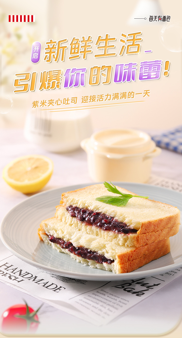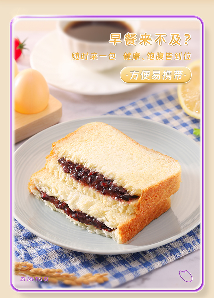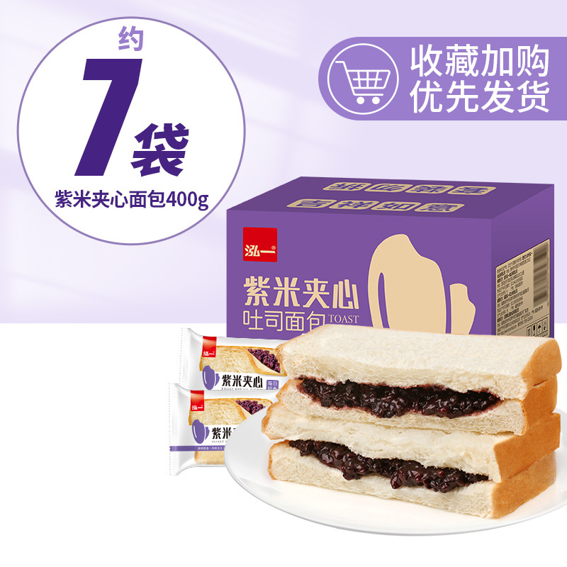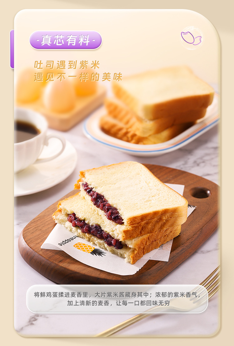 홍이 보라색 쌀 빵 샌드위치 토스트 기아 아침 식사 간식을위한 건강하고 영양가있는 음식의 전체 상자스토어 가기
