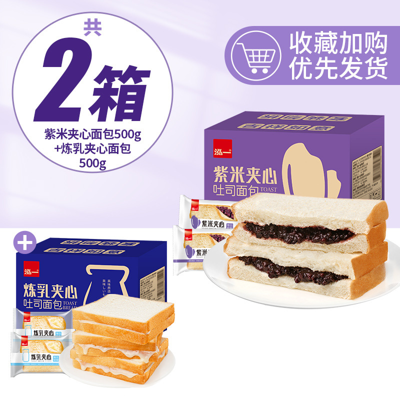 • [1개 구매시 1개 무료] 자색쌀샌드위치빵 500g + 연유샌드위치빵 500g.