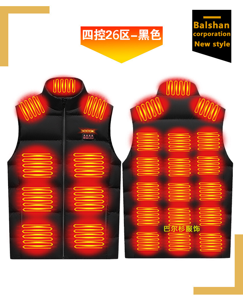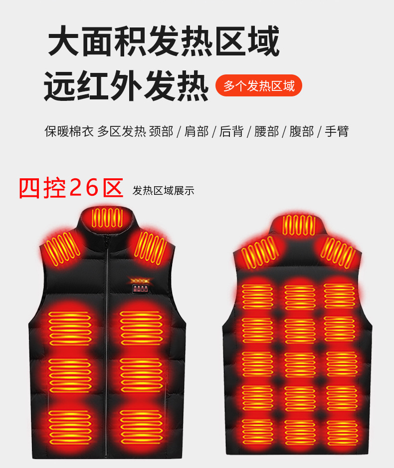 국경 간 난방 조끼 구역 26 난방 세트 남자의 수직 칼라 전기 난방 면 조끼 지능형 전기 난방 따뜻한 면화 재킷