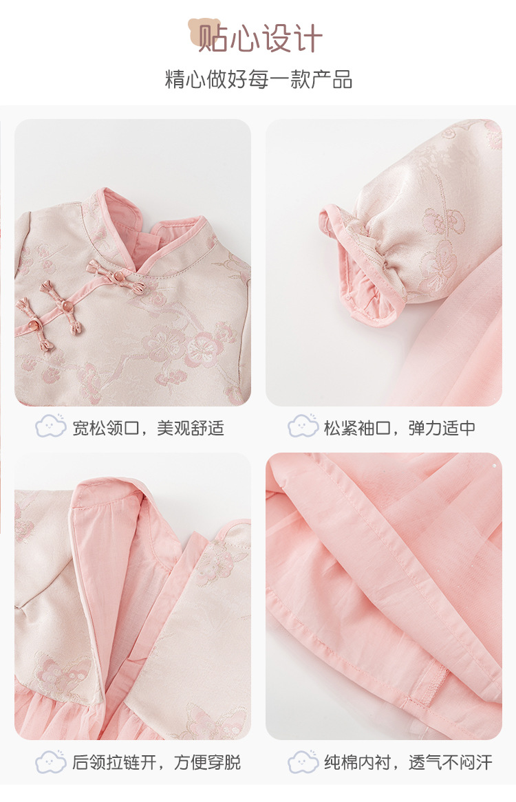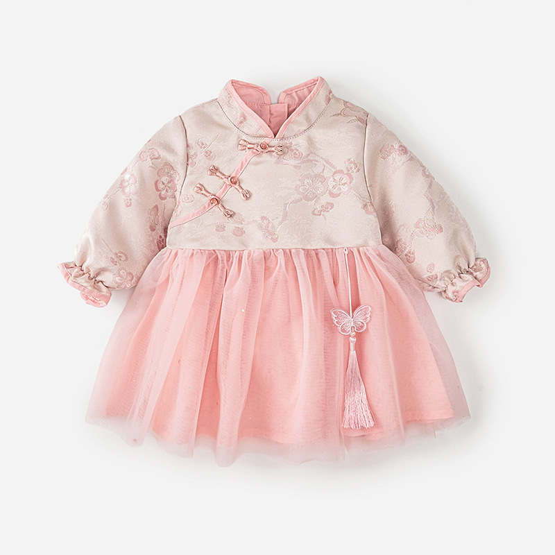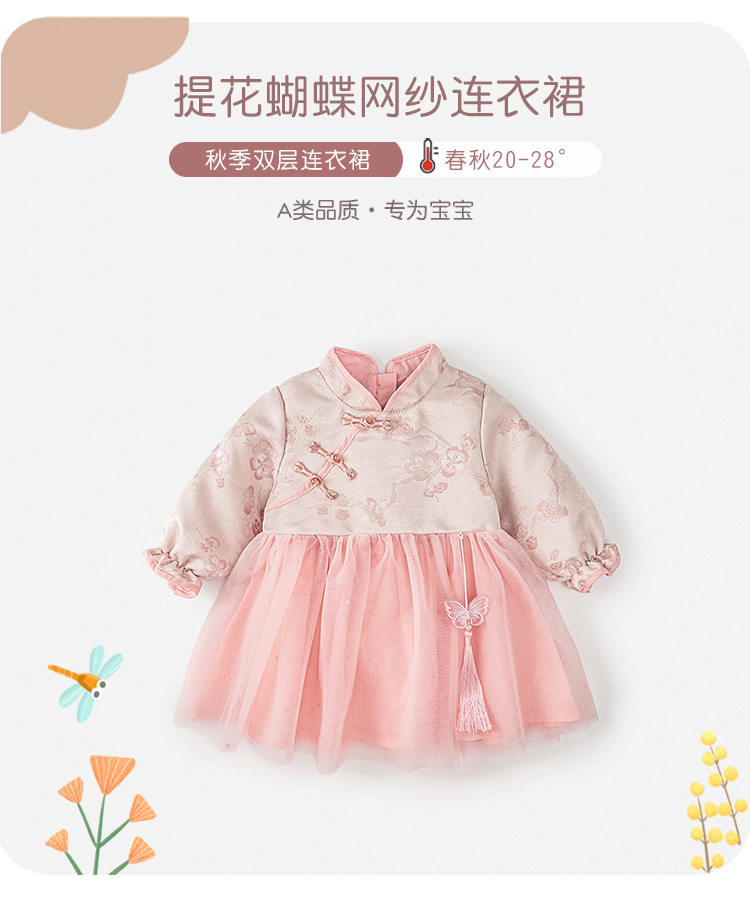 Chenwo 아동복 가을 2024 새로운 소녀 원피스 중국 스타일 아기 년 원피스 공주 치마스토어 가기