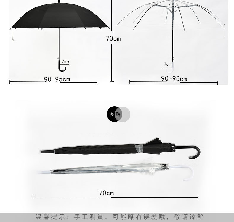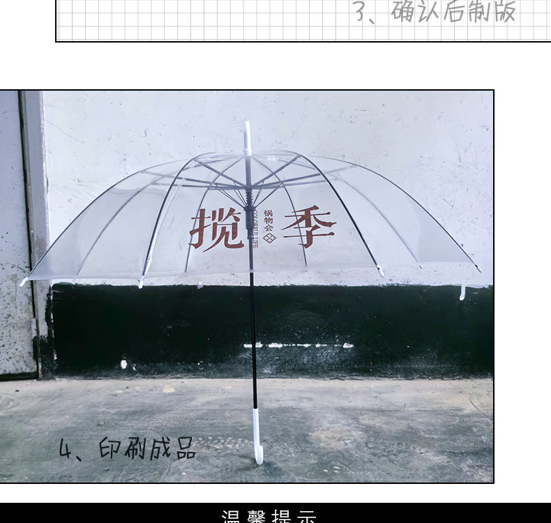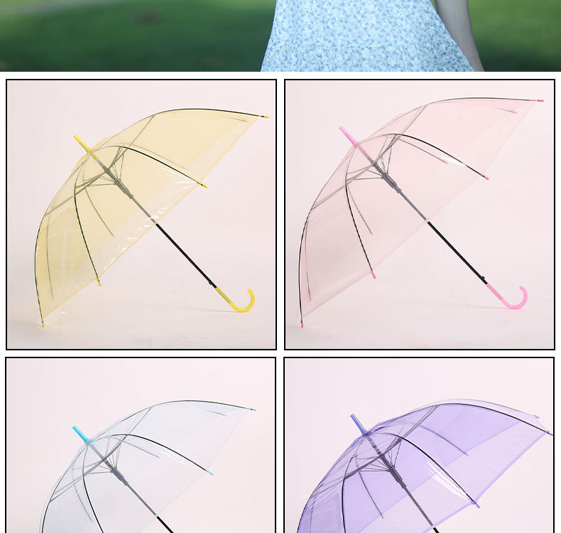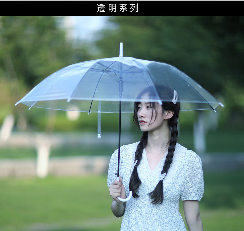 맑은 하늘과 비 오는 날을 위한 흰색 투명 우산, 여성용 인기 판매 우산, 긴 손잡이 우산, 일회용 일괄 투명 우산 도매