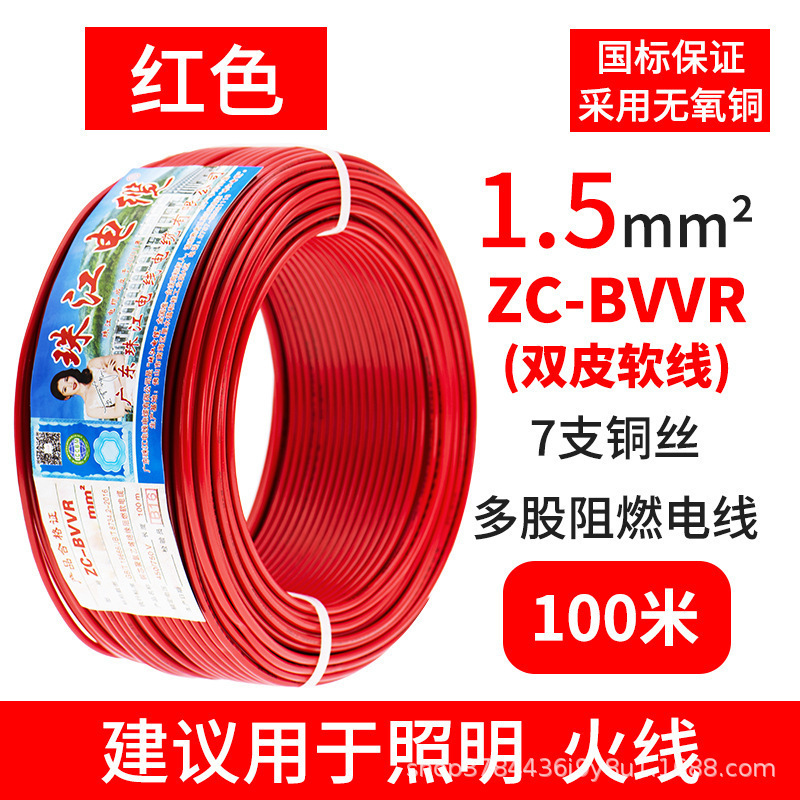 국가 표준 진주 강 케이블 홈 BVVR 와이어 1.5 2.5 4 6 스퀘어 더블 스킨 멀티 코어 순수 구리 홈 장식 코드스토어 가기