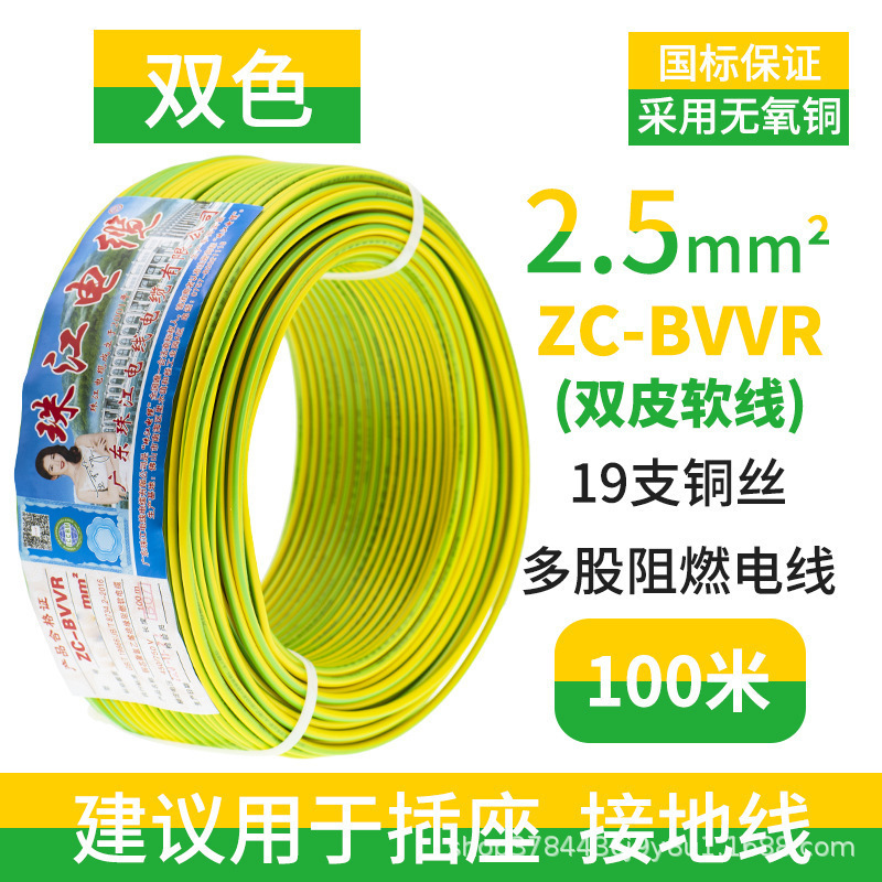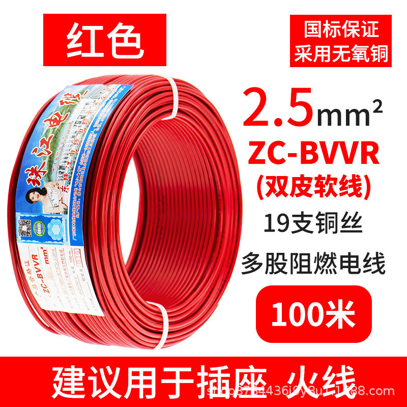 국가 표준 진주 강 케이블 홈 BVVR 와이어 1.5 2.5 4 6 스퀘어 더블 스킨 멀티 코어 순수 구리 홈 장식 코드