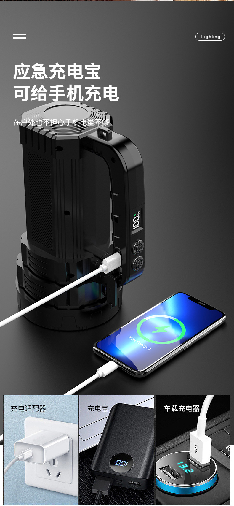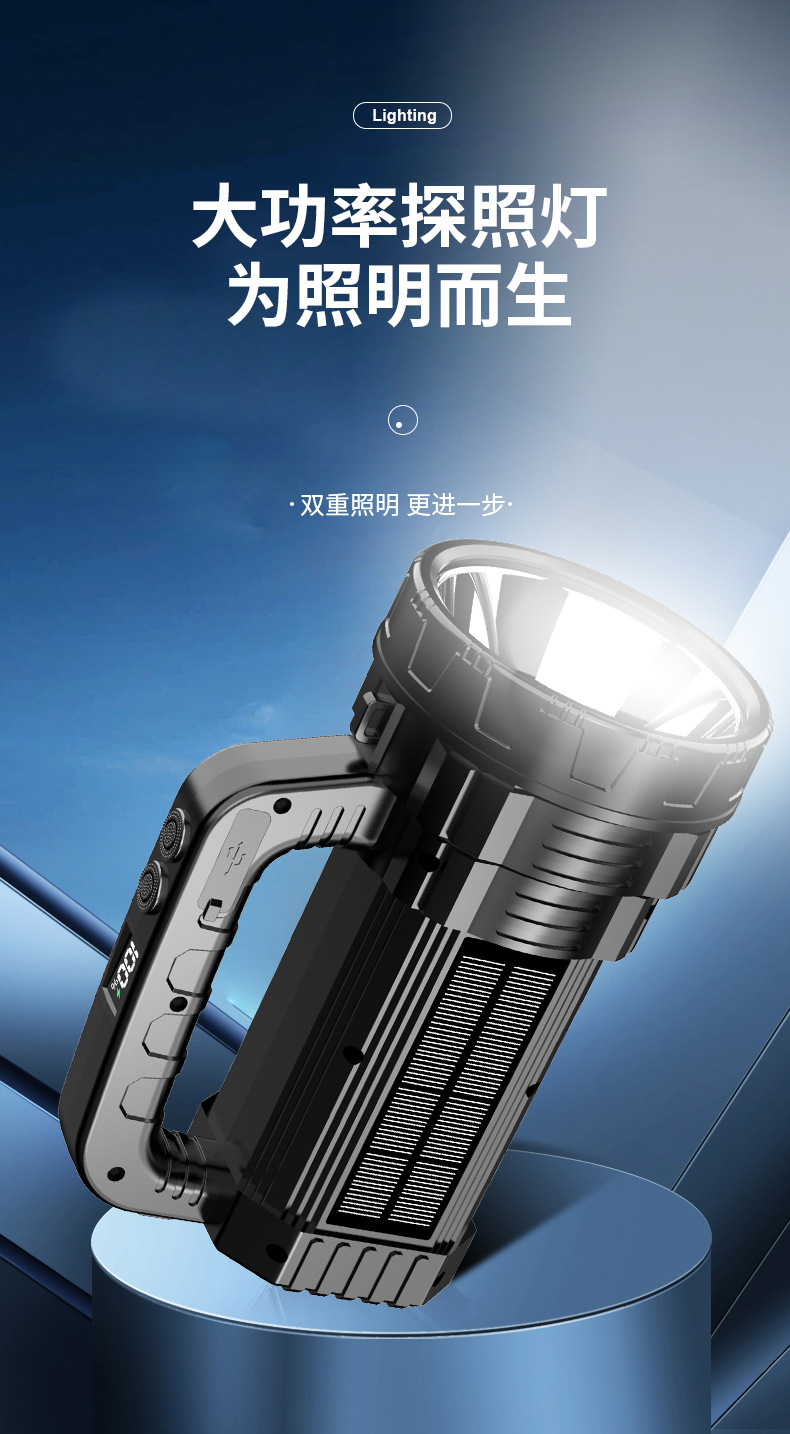강한 빛 휴대용 빛 태양 야외 비상 알루미늄 합금 탐조등 LCD 디지털 전기 디스플레이 대형 투광 등