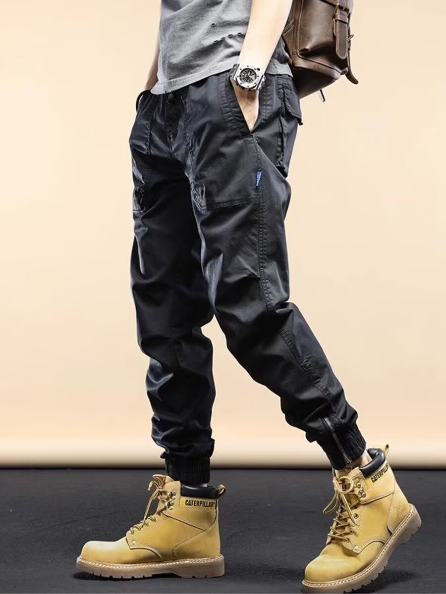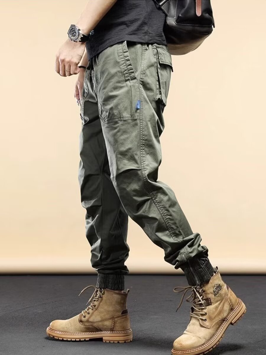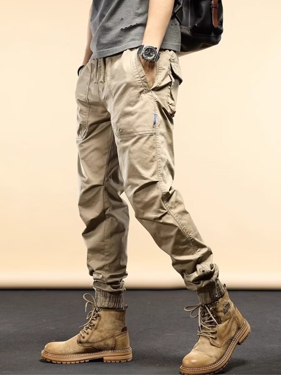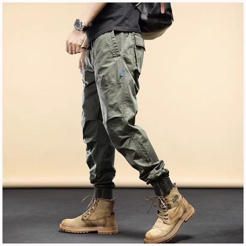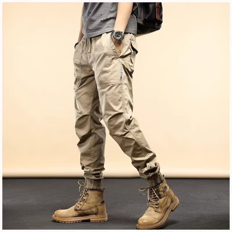 아메리칸 스타일 레트로 무거운 무게 발 바인딩 스웨트 바지 남자 봄 새로운 느슨한 스트레이트 캐주얼 오버홀 남성용 트렌디 브랜드 바지스토어 가기