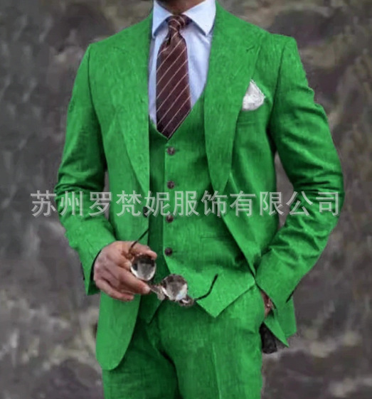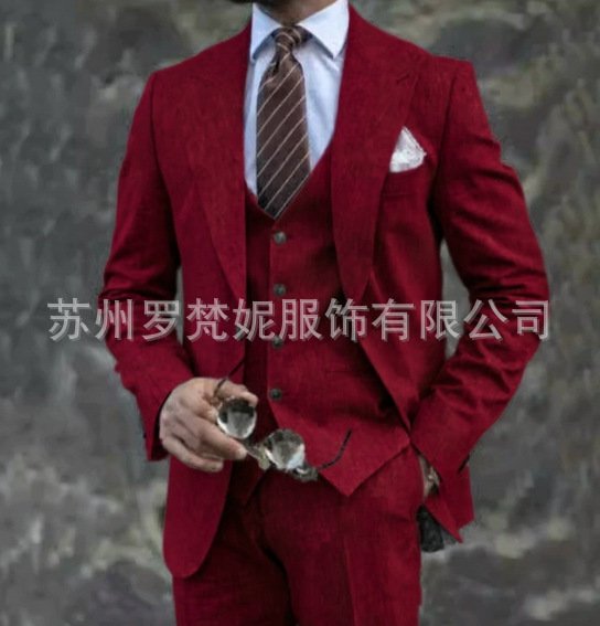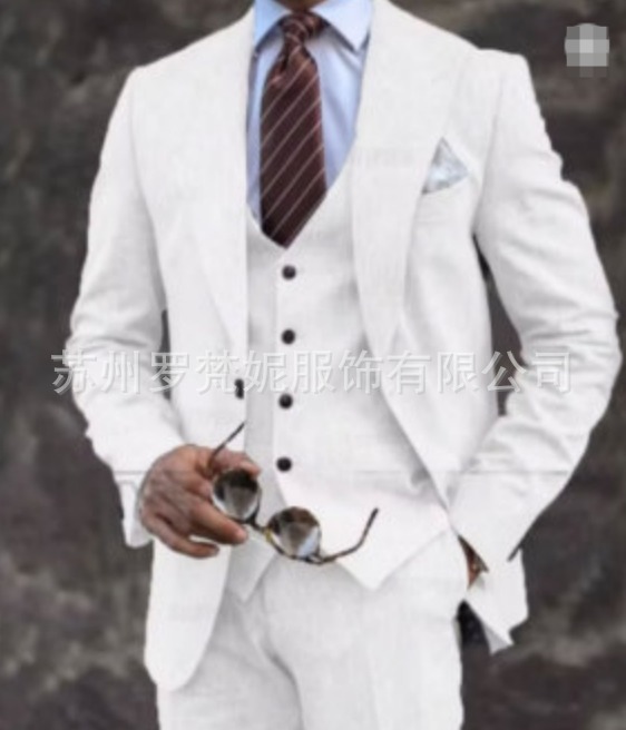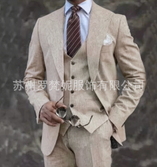 아마존 남성 정장 린넨 쓰리피스 웨딩 파티 연회 비치 드레스 남성 정장 이브닝 드레스