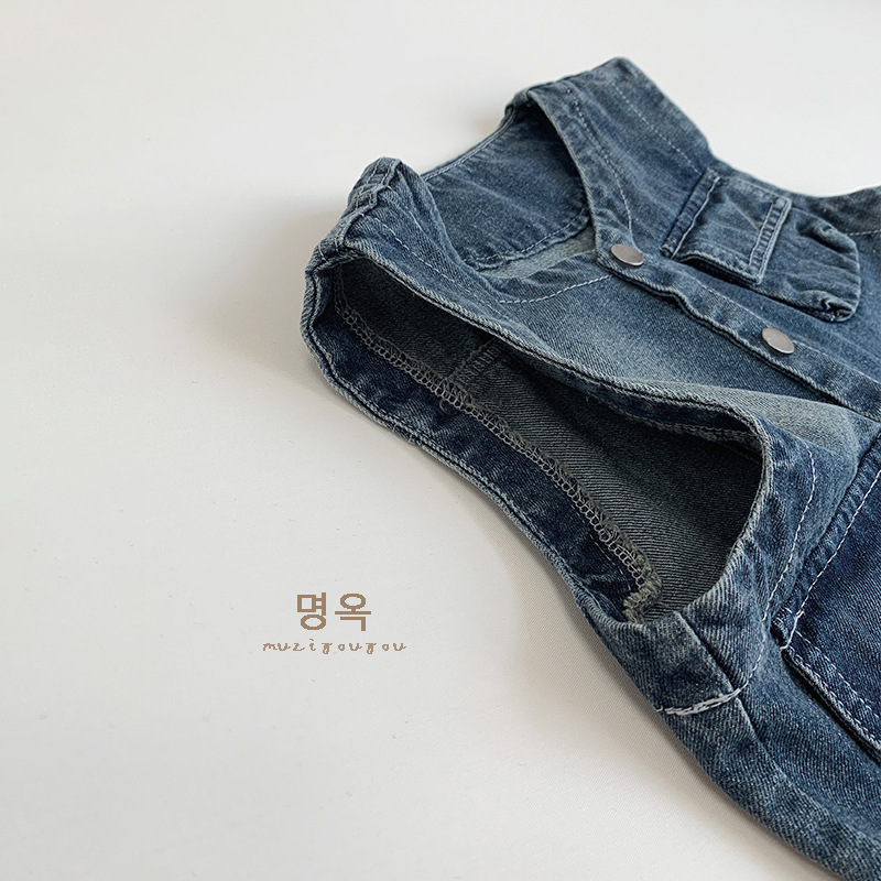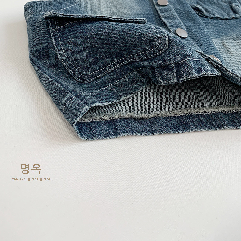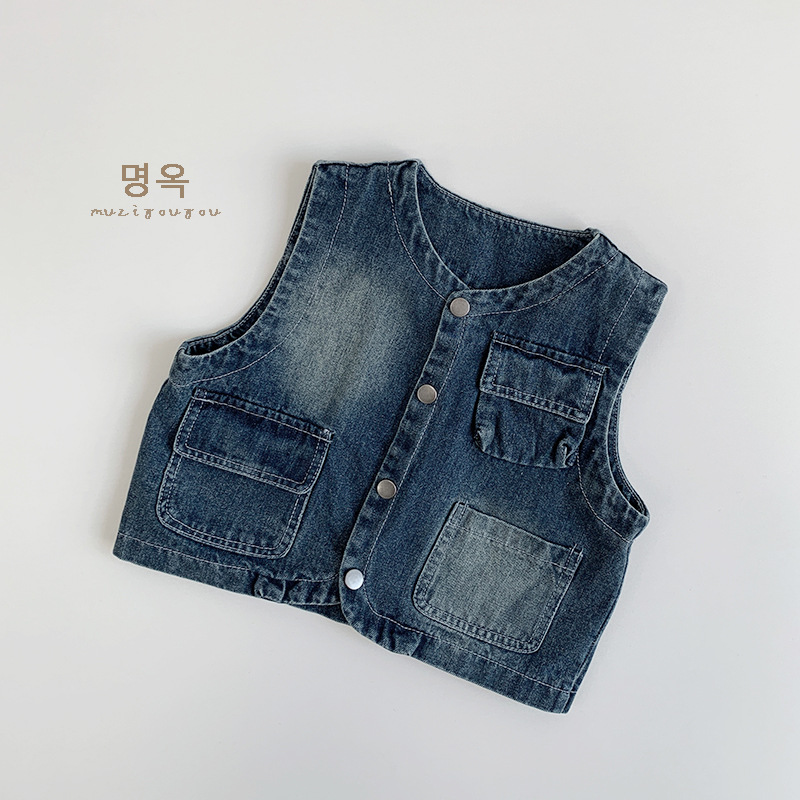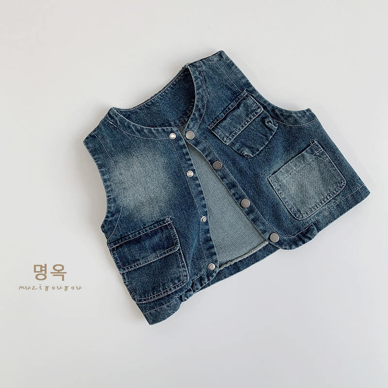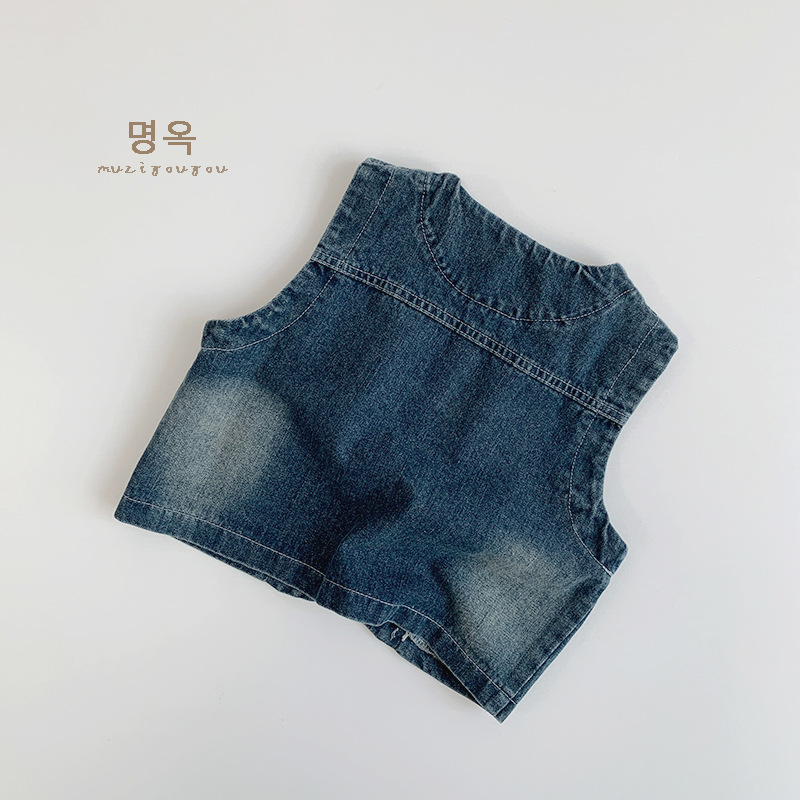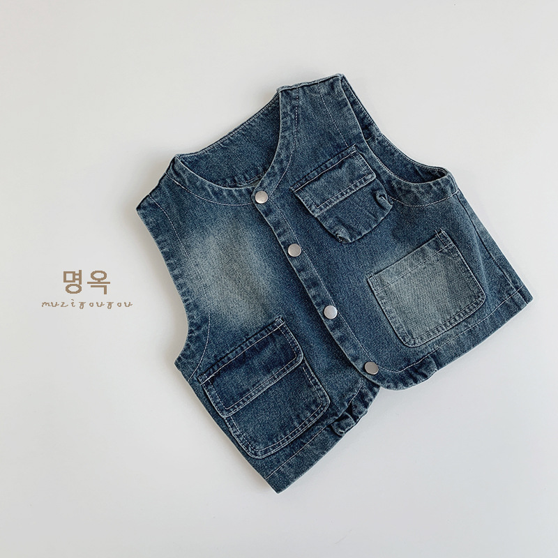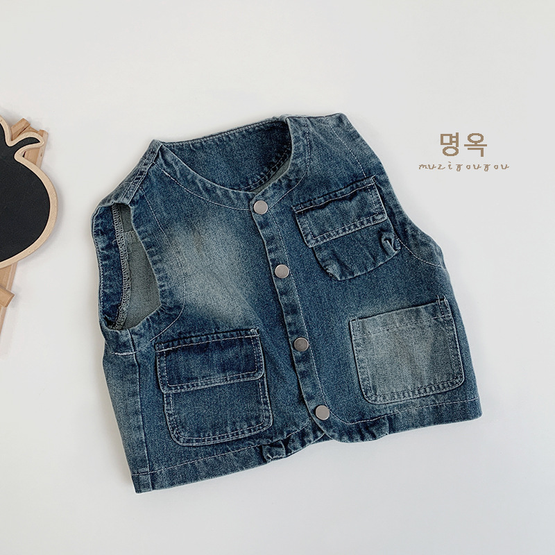 어린이 가을 새 한국 복고풍 데님 조끼 남녀 캐주얼 올매치 웨이스트코트 어린이 트렌디 올매치 조끼스토어 가기
