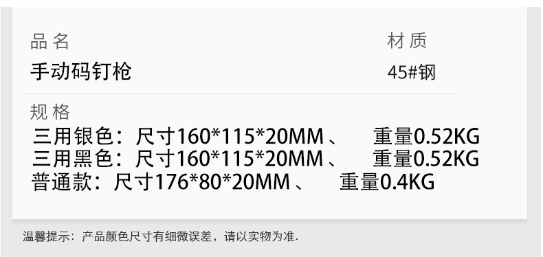 재고 도매 3 사용 수동 네일 건 목공 장식 광고 유화 네일 건 가정용 가스 네일 건