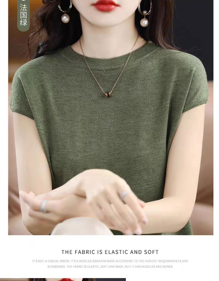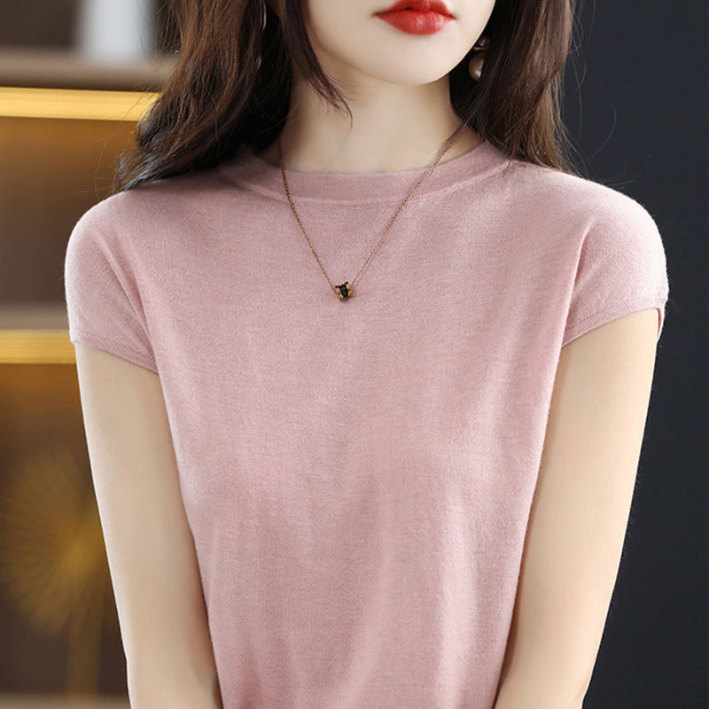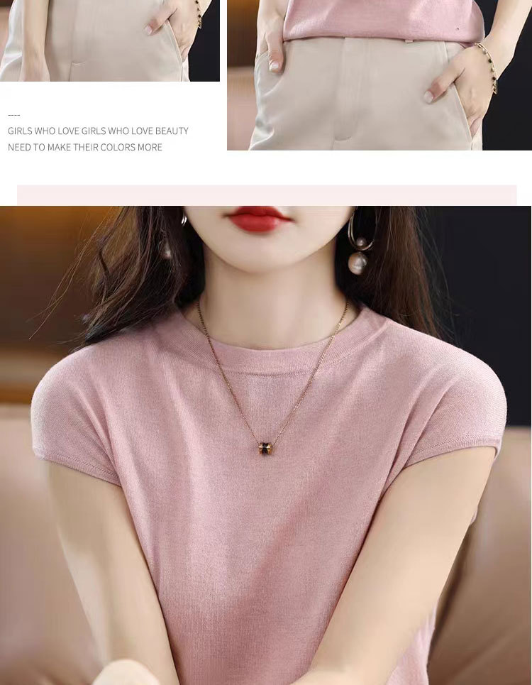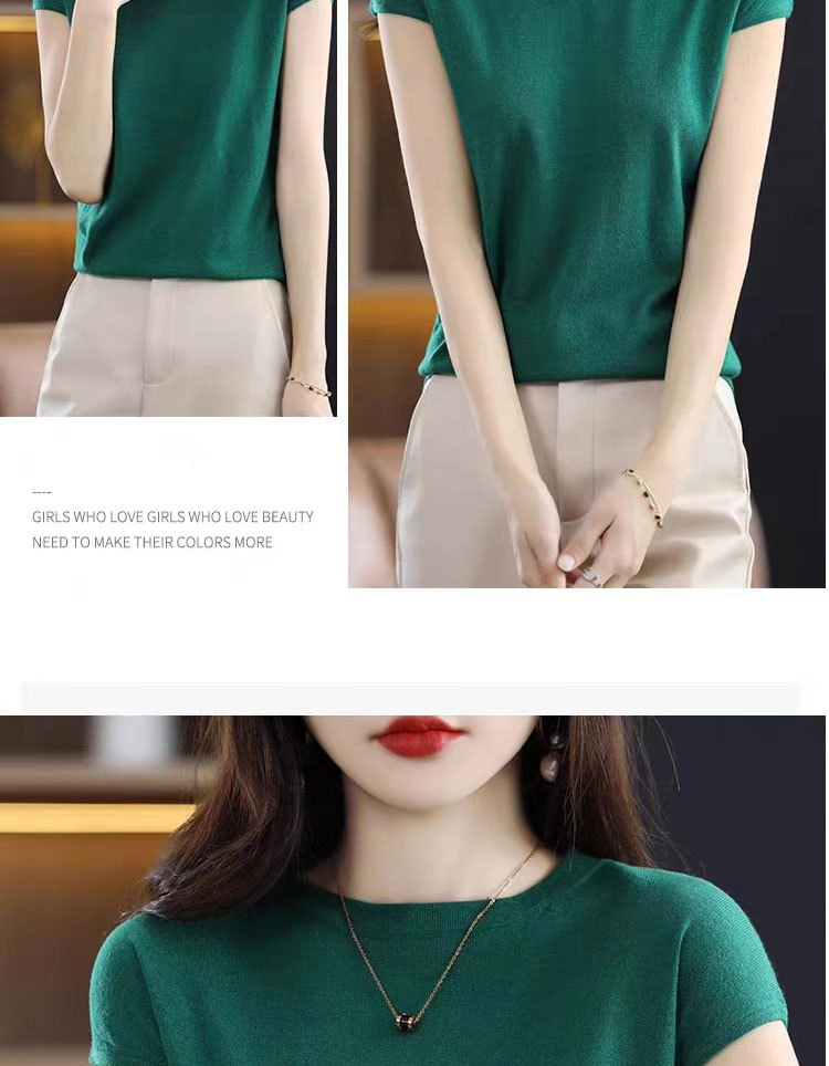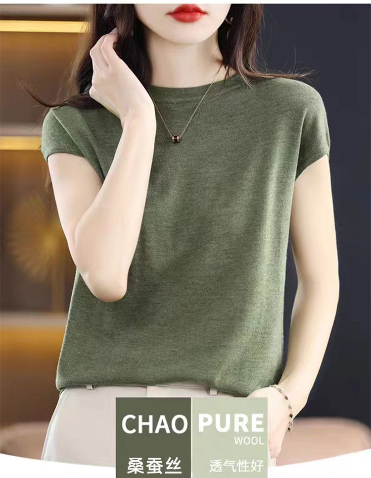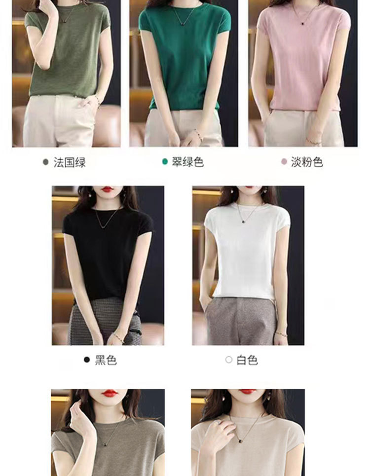 [시원한 여름] 여름 새 라운드 넥 텐셀 반팔 티셔츠 여자 얇은 패셔너블 올매치 아이스실크 탑스토어 가기