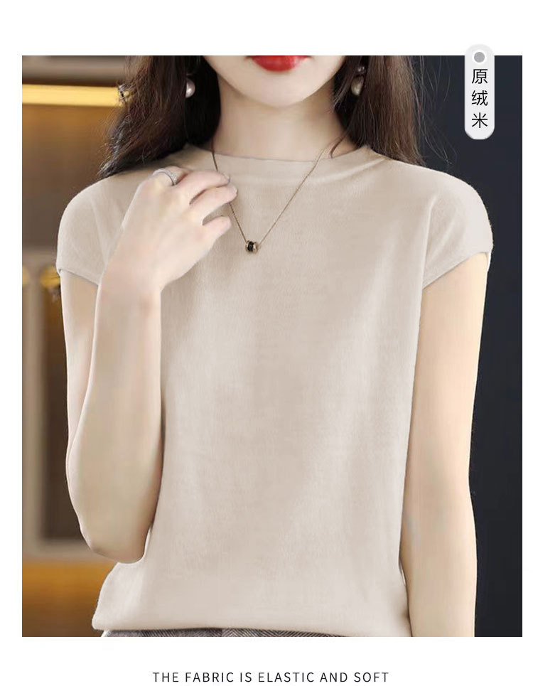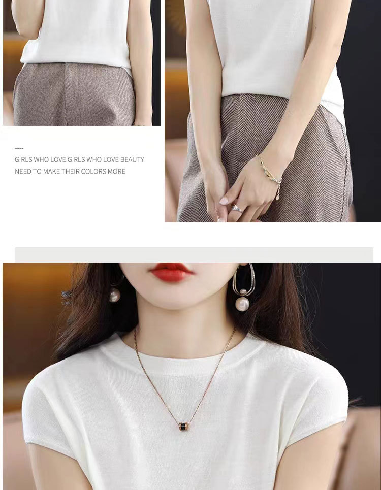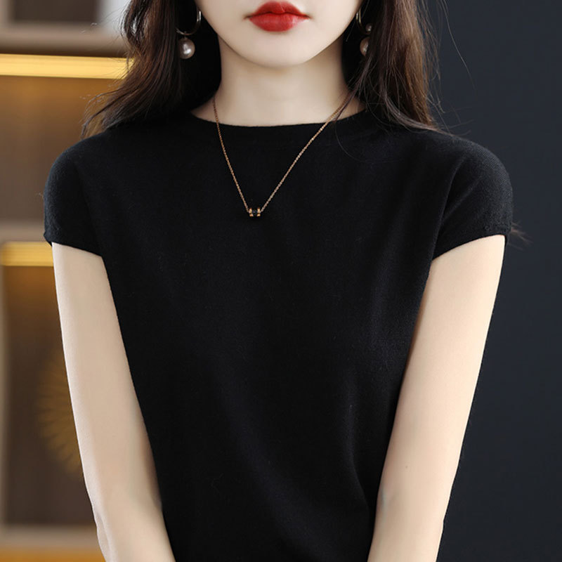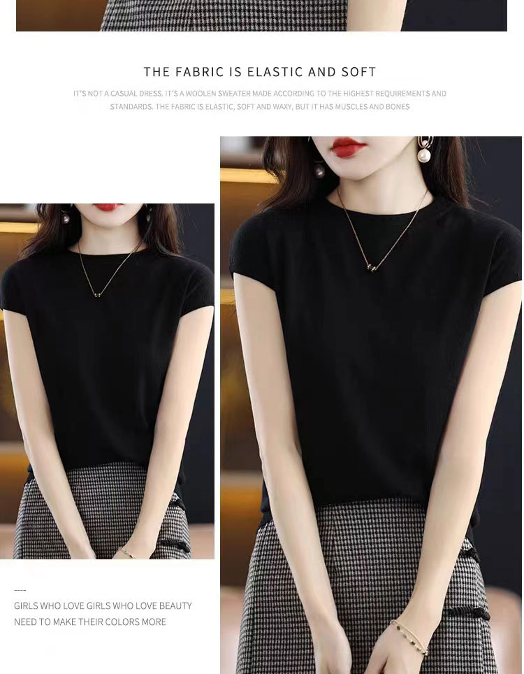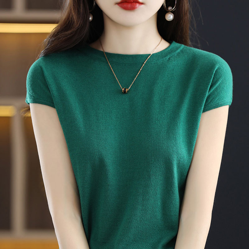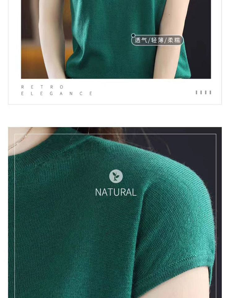 [시원한 여름] 여름 새 라운드 넥 텐셀 반팔 티셔츠 여자 얇은 패셔너블 올매치 아이스실크 탑스토어 가기