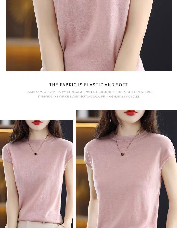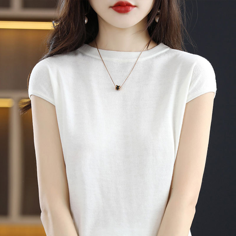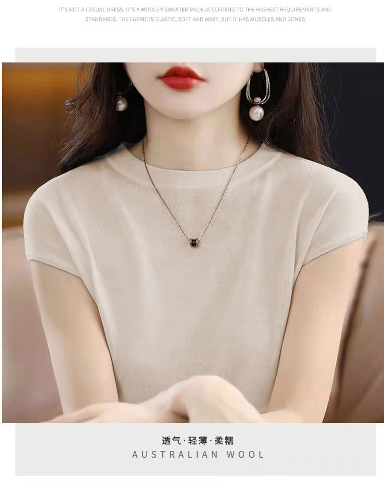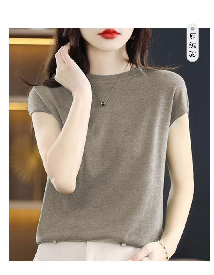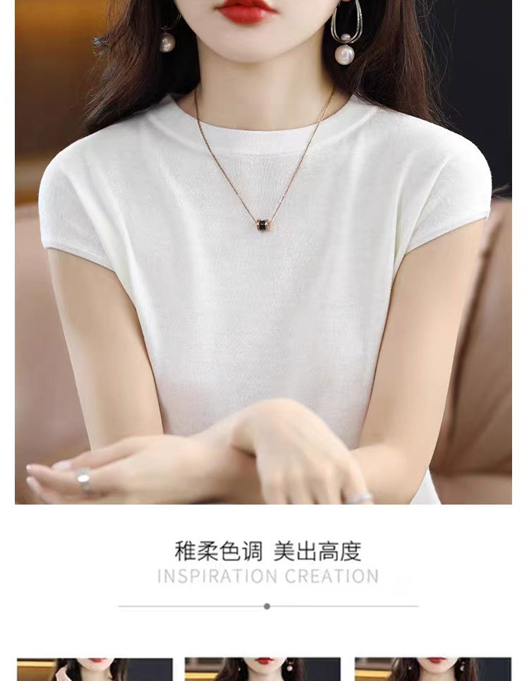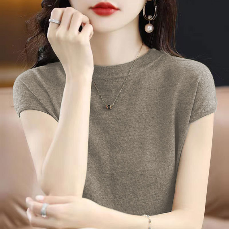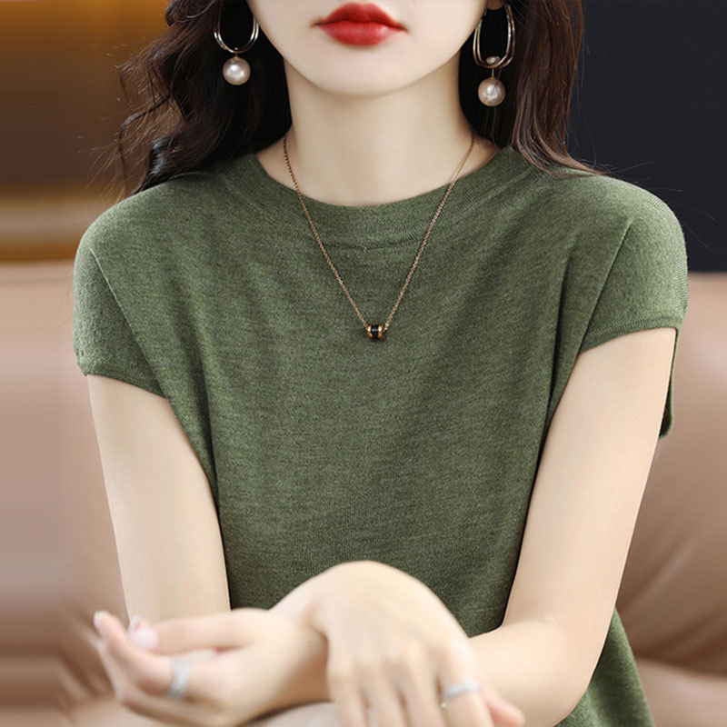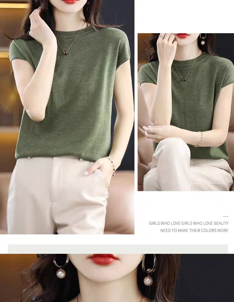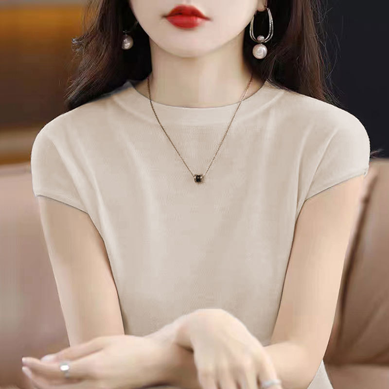 [시원한 여름] 여름 새 라운드 넥 텐셀 반팔 티셔츠 여자 얇은 패셔너블 올매치 아이스실크 탑