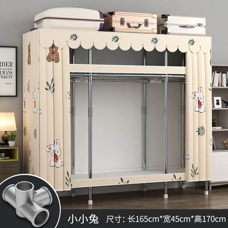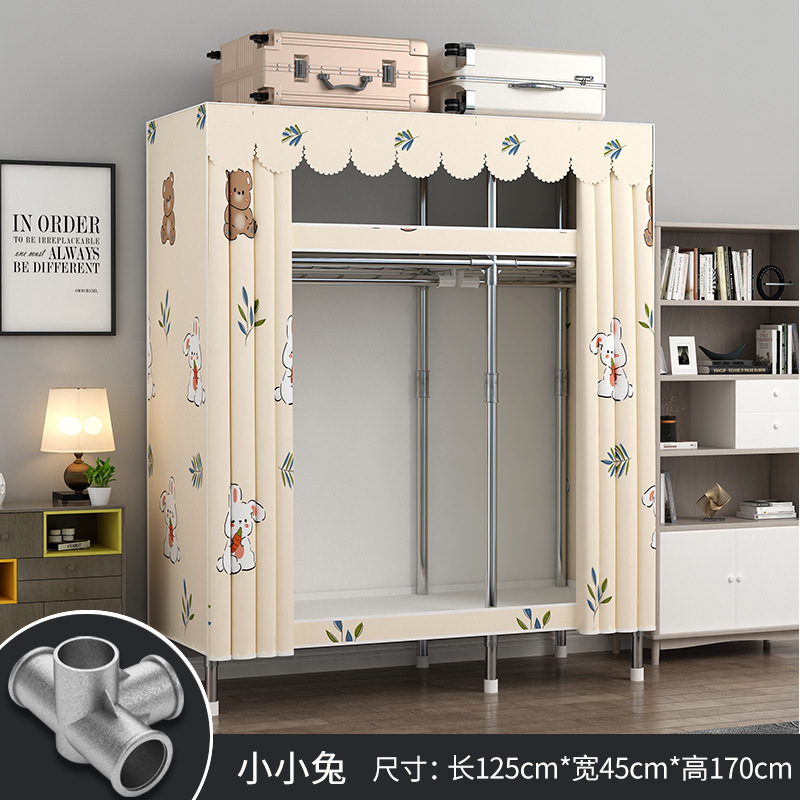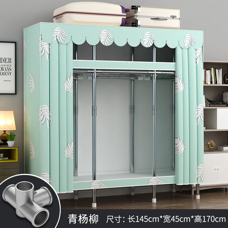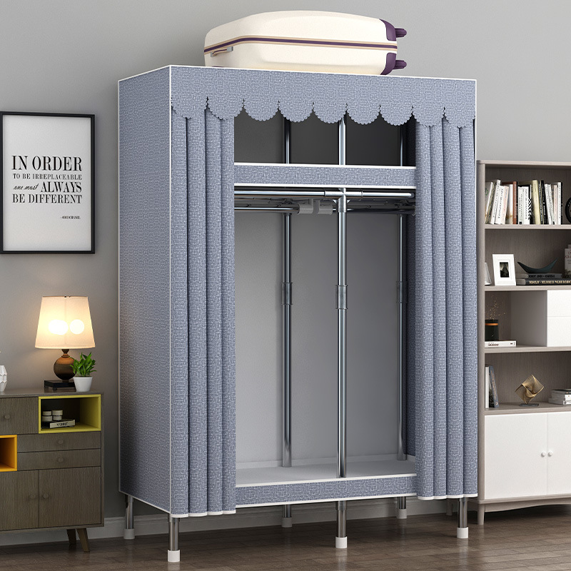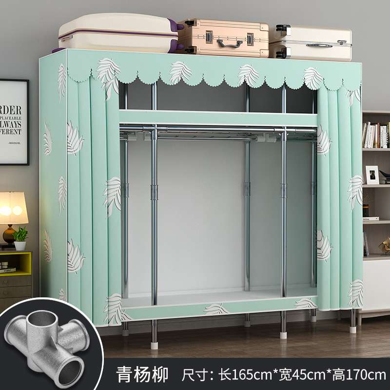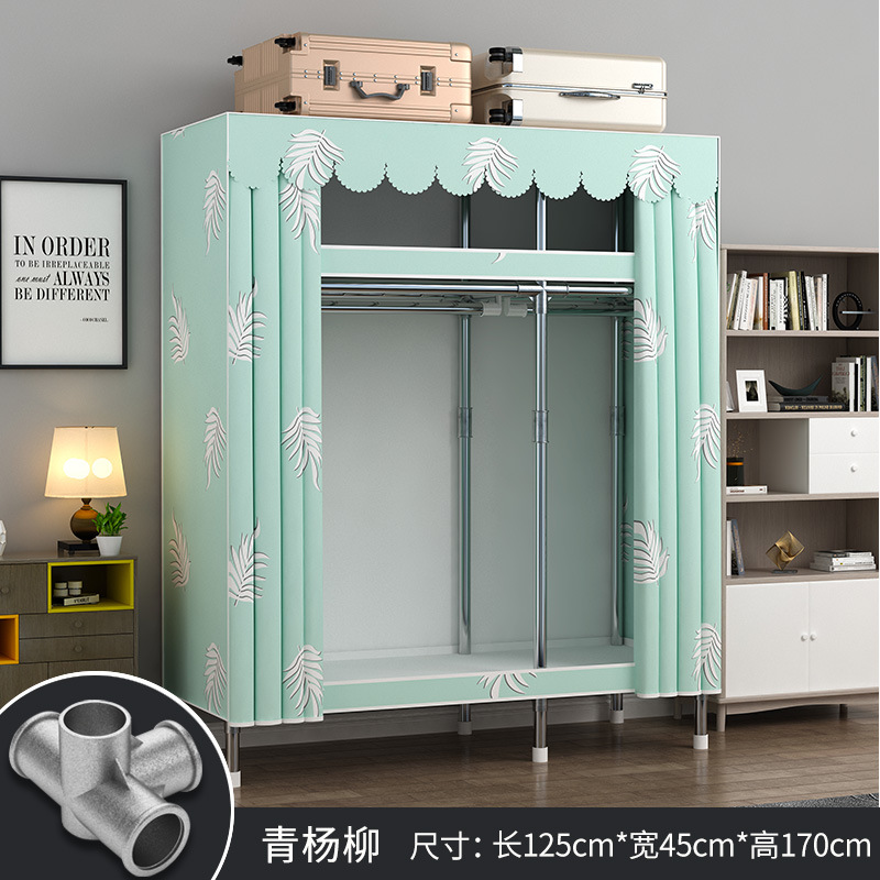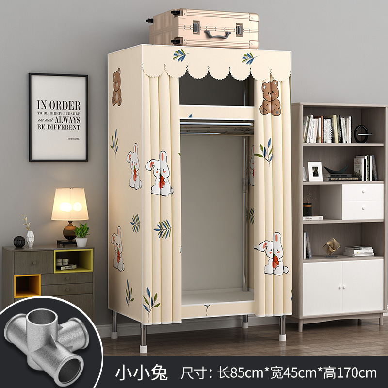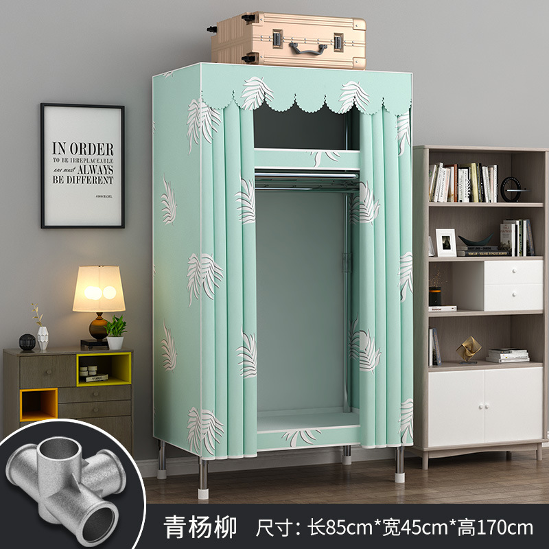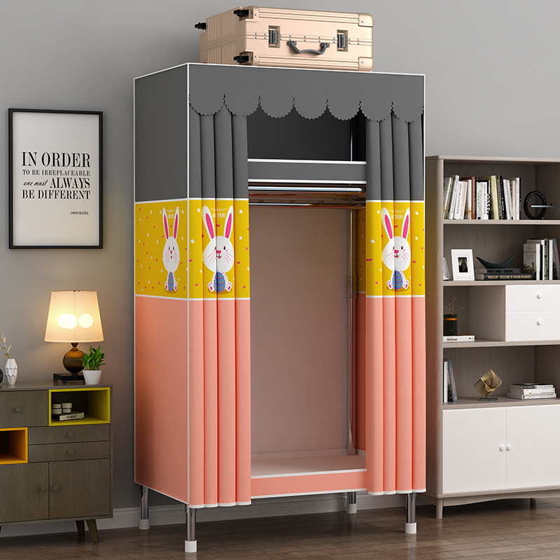단일 옷장 홈 침실 임대 방 간단한 천 옷장 강철 파이프 두껍게 및 두꺼운 경제적 인 저장 옷장
