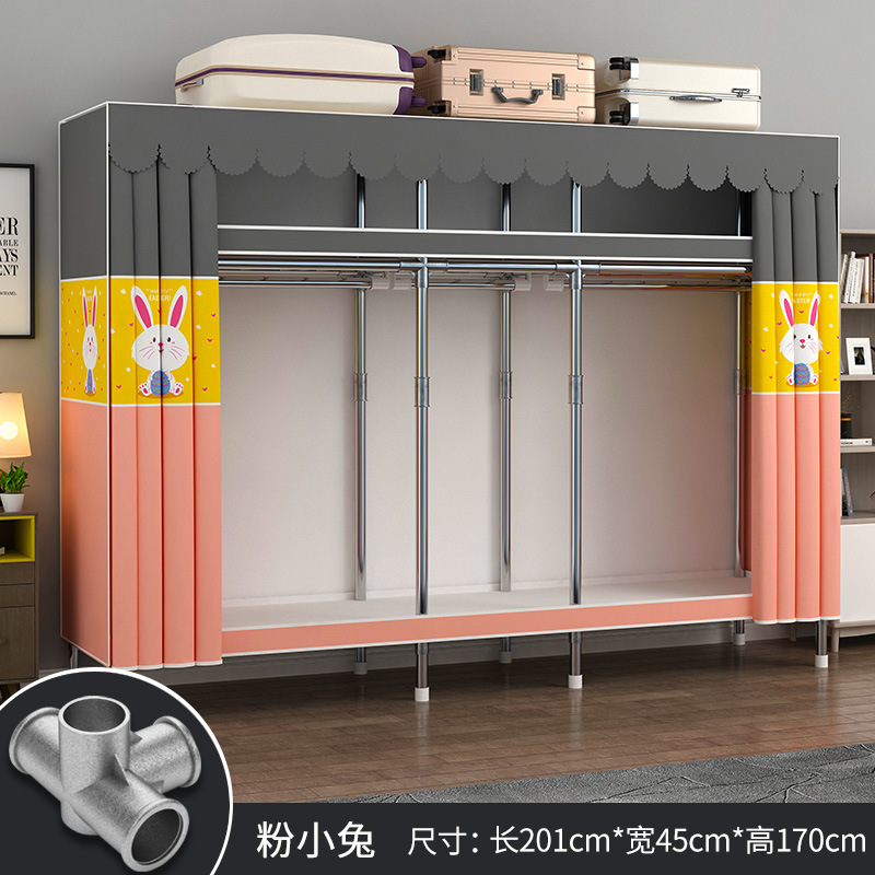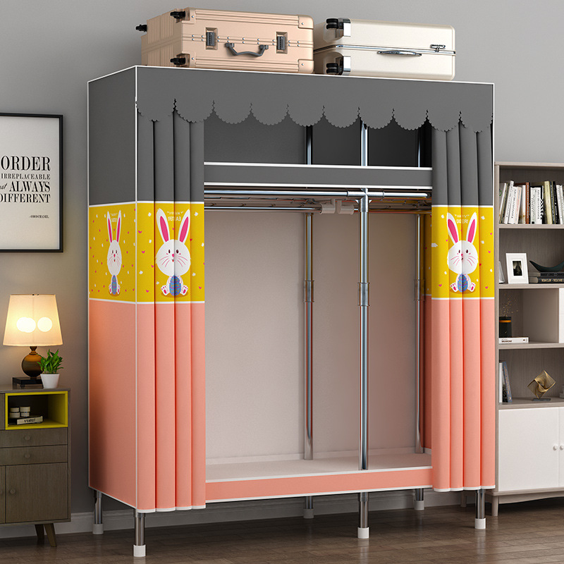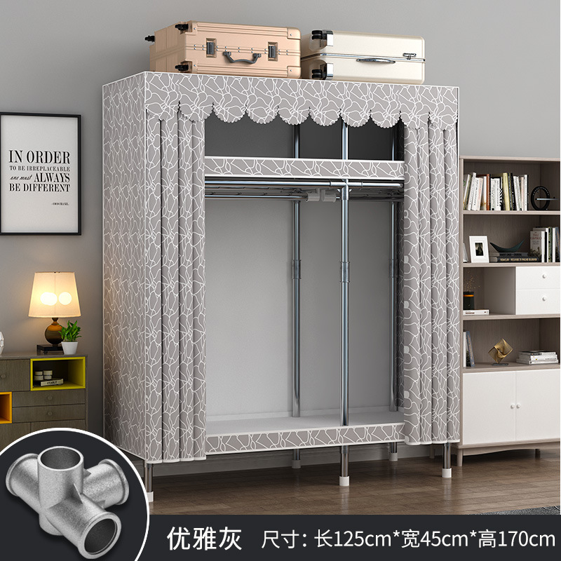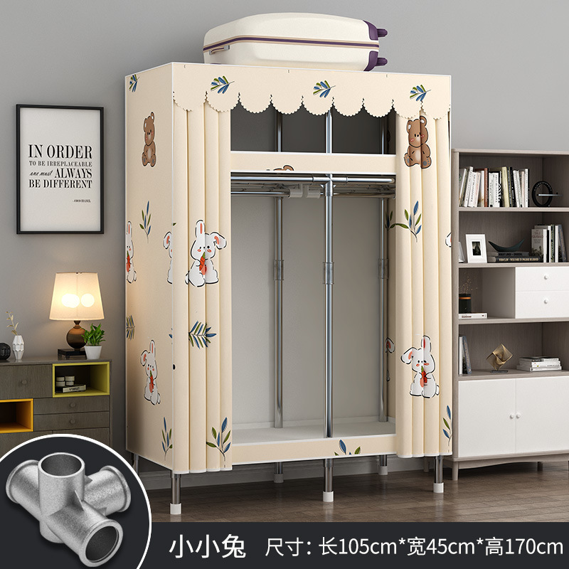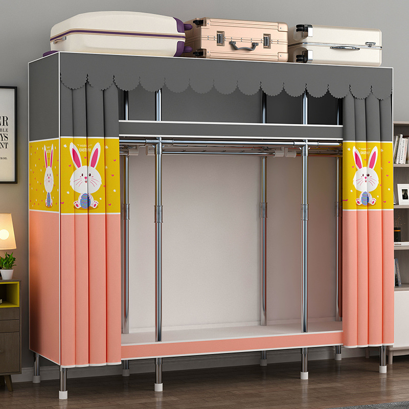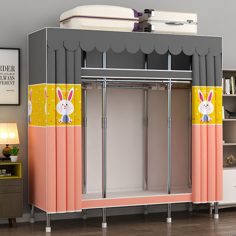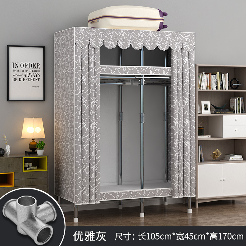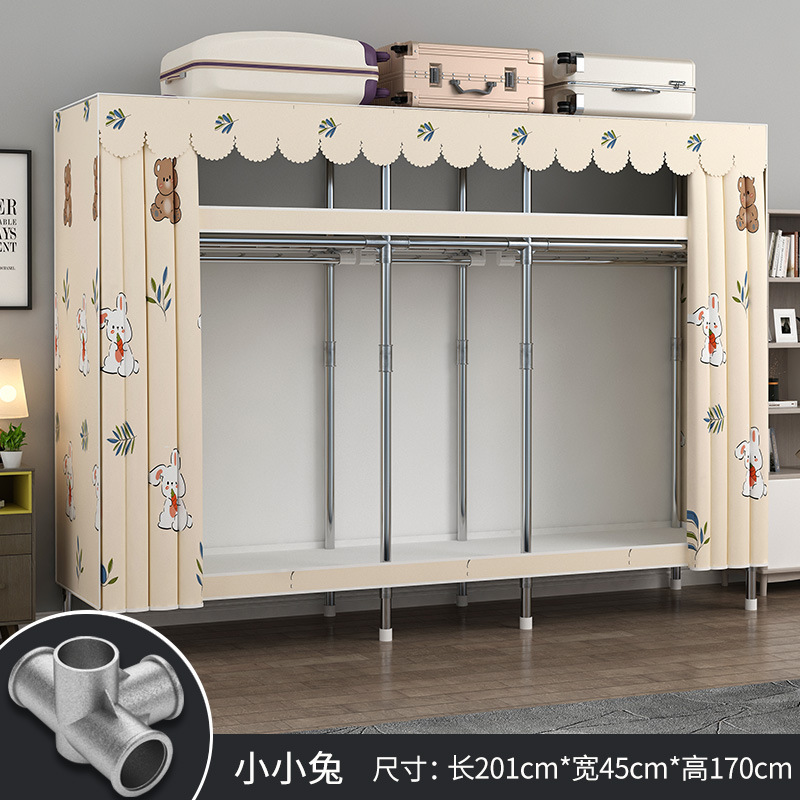 단일 옷장 홈 침실 임대 방 간단한 천 옷장 강철 파이프 두껍게 및 두꺼운 경제적 인 저장 옷장
