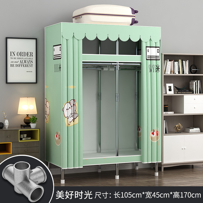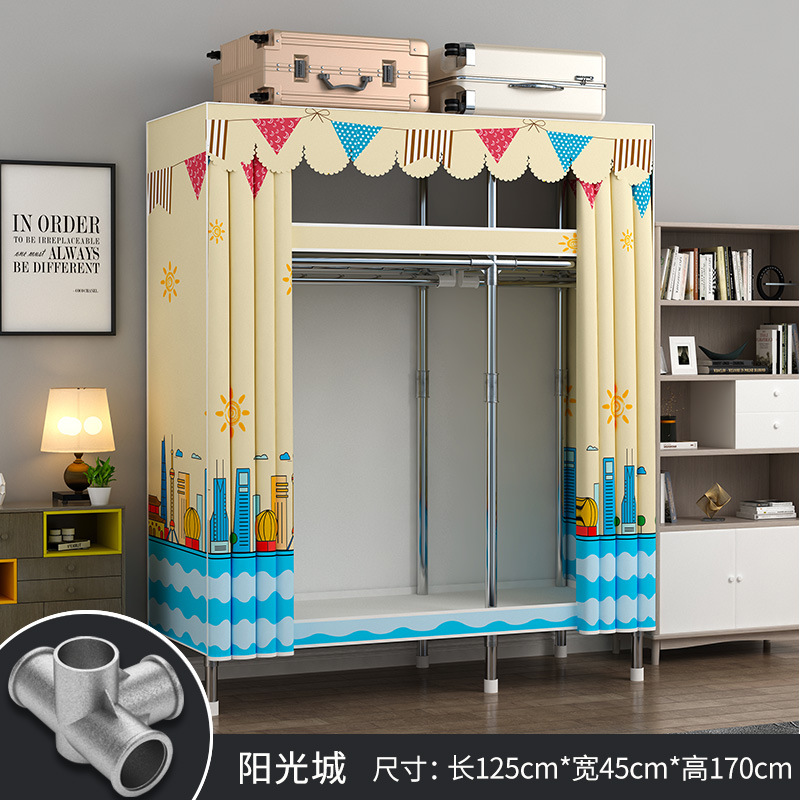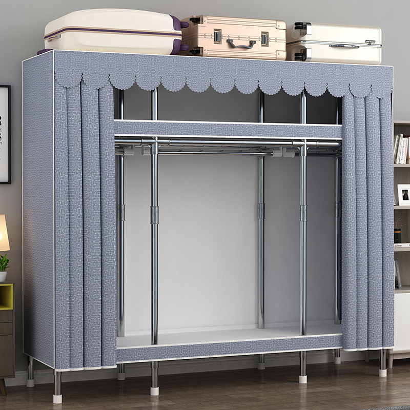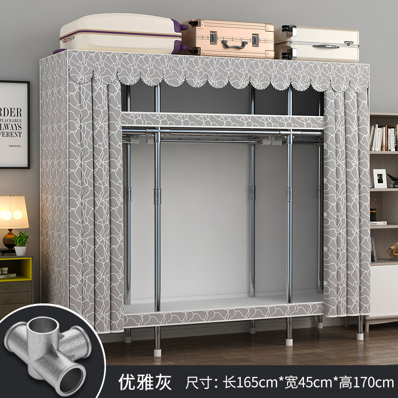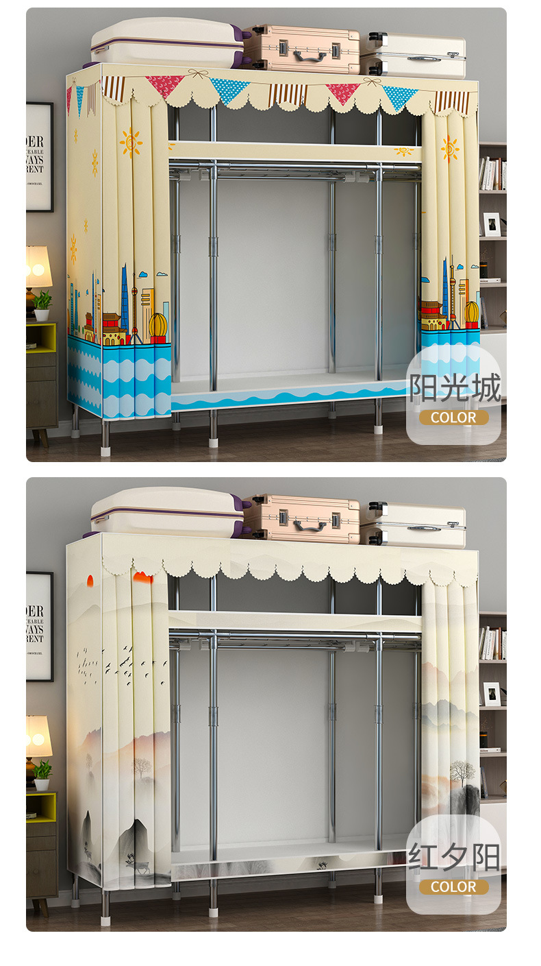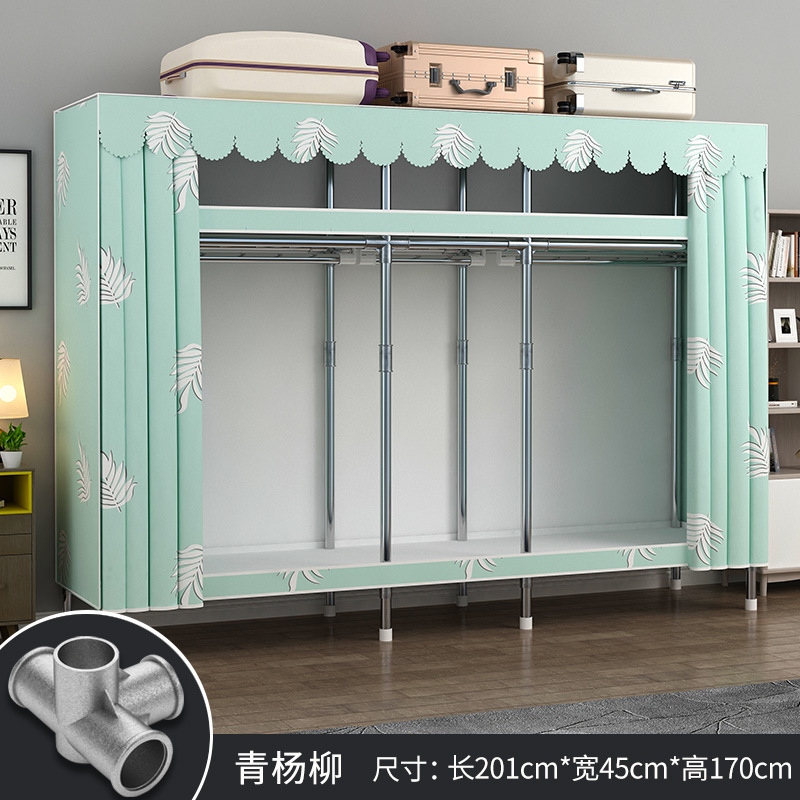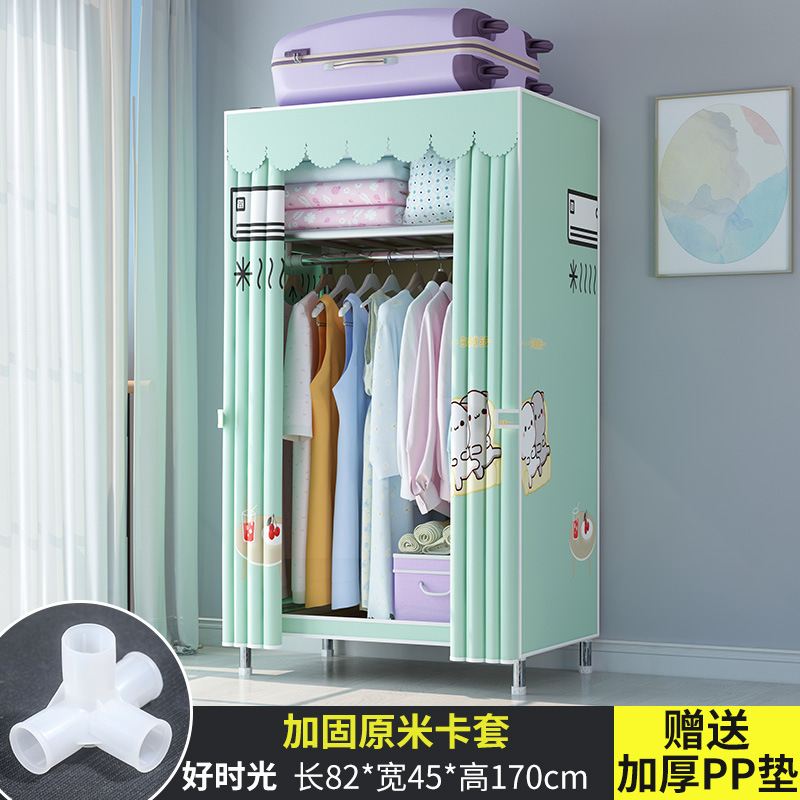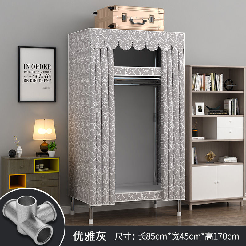 단일 옷장 홈 침실 임대 방 간단한 천 옷장 강철 파이프 두껍게 및 두꺼운 경제적 인 저장 옷장