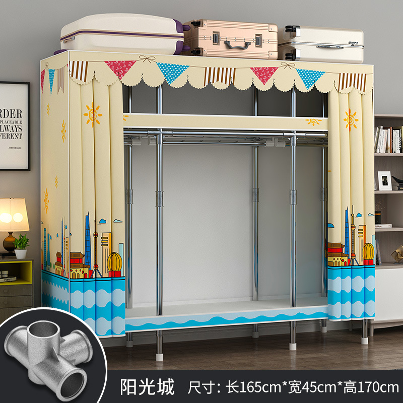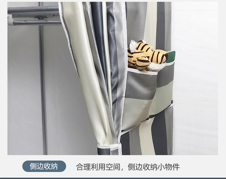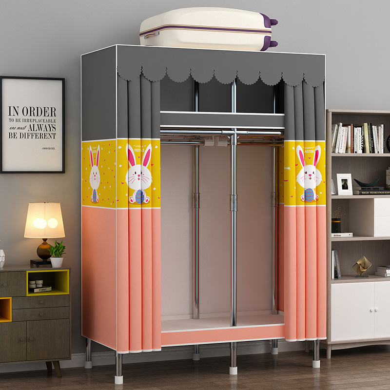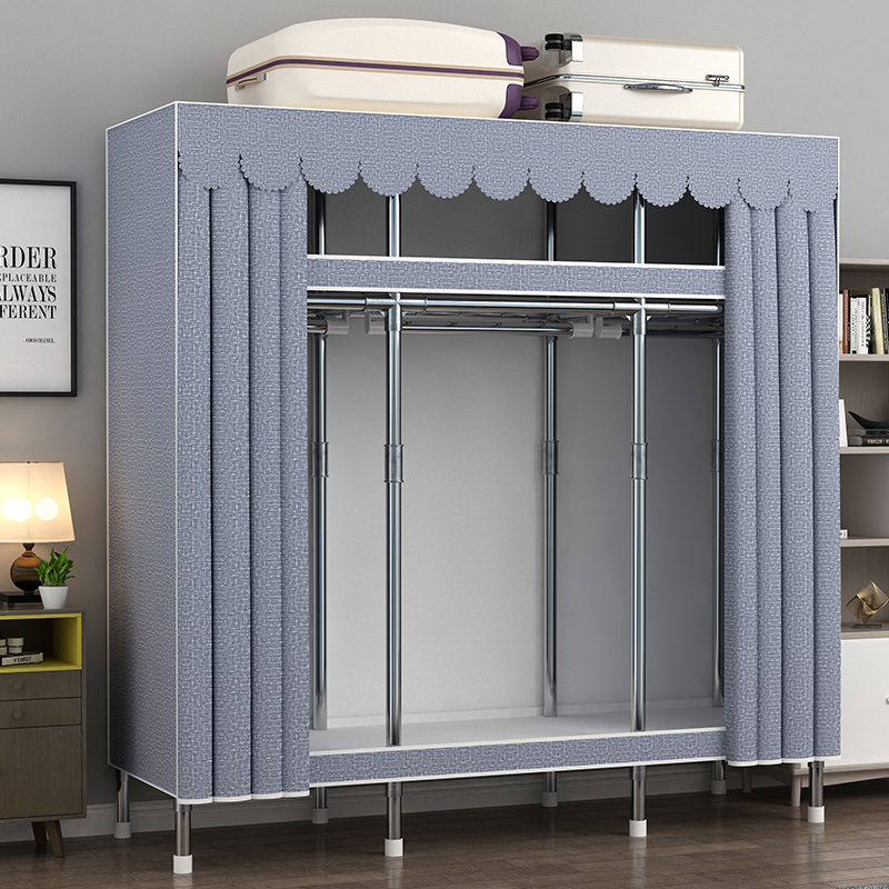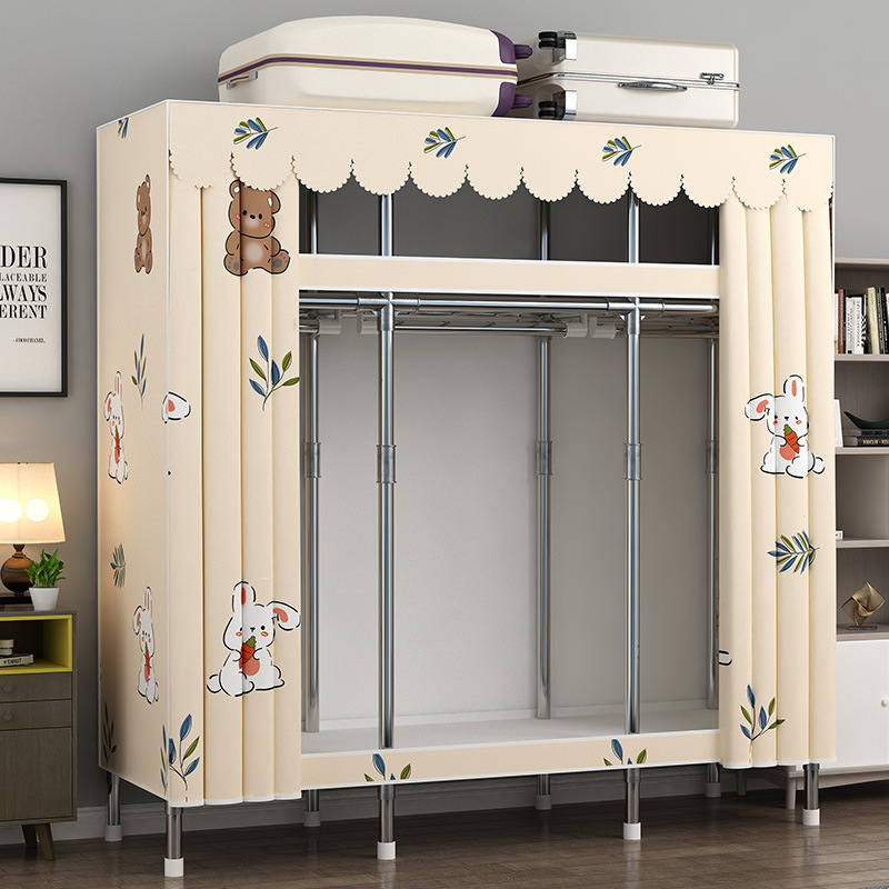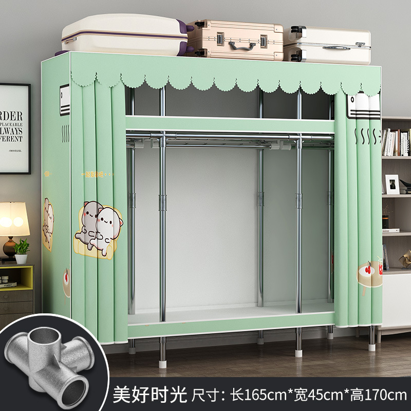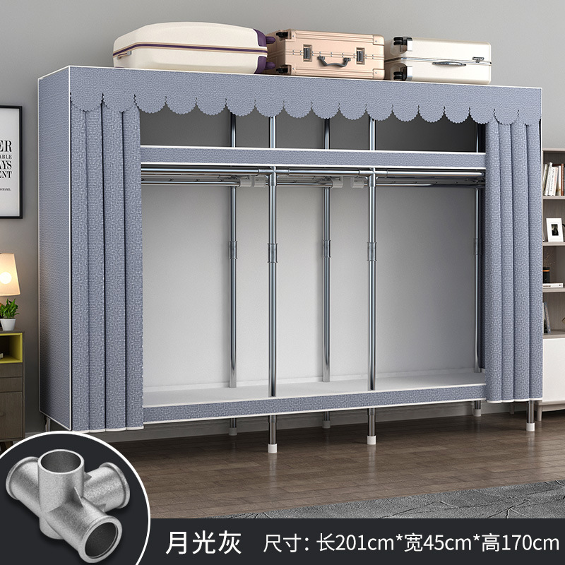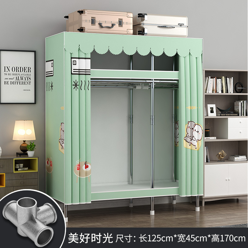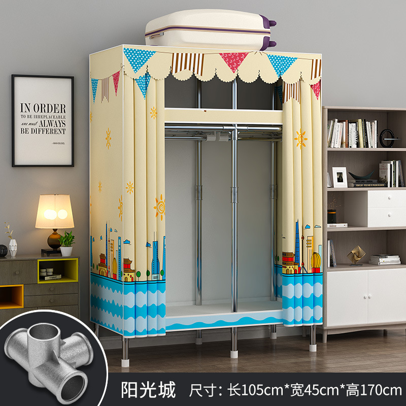 단일 옷장 홈 침실 임대 방 간단한 천 옷장 강철 파이프 두껍게 및 두꺼운 경제적 인 저장 옷장