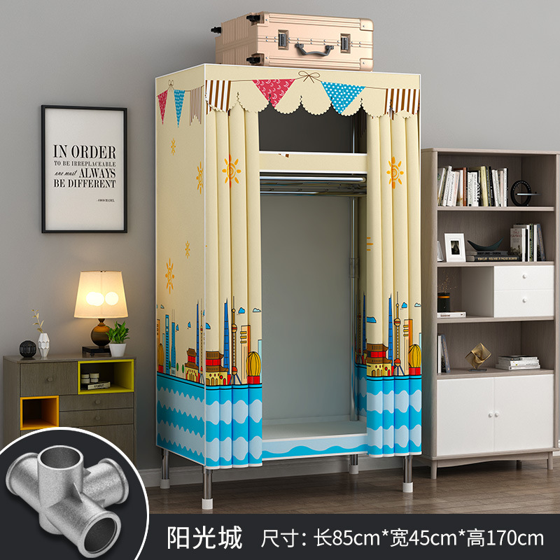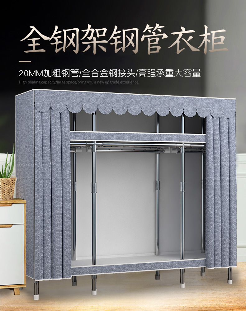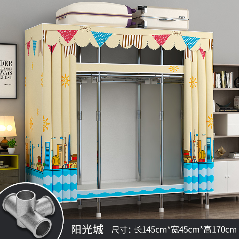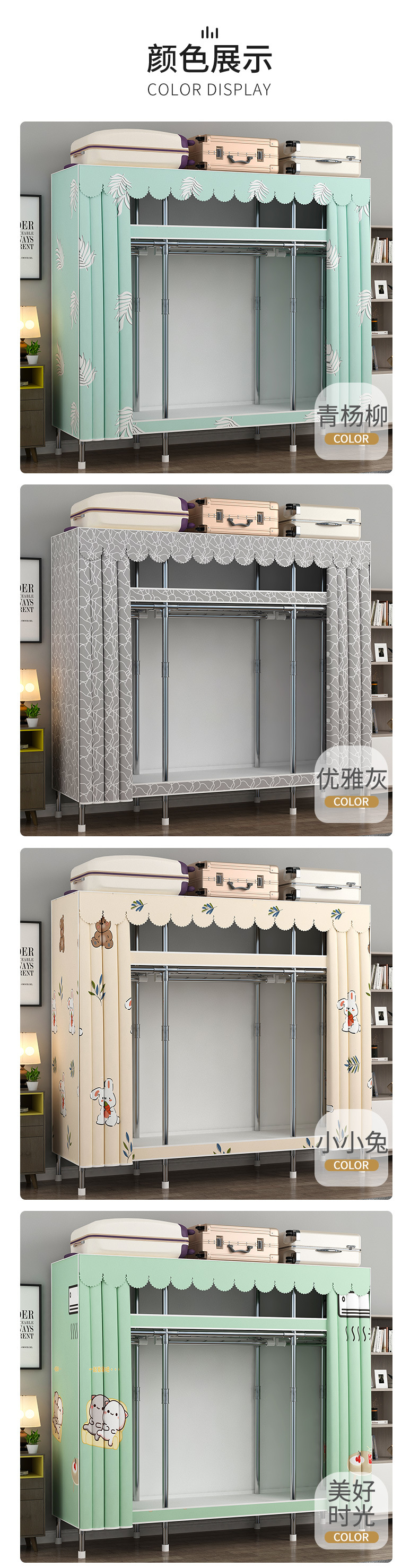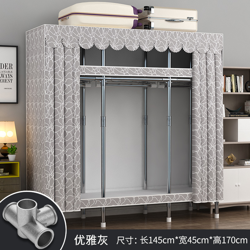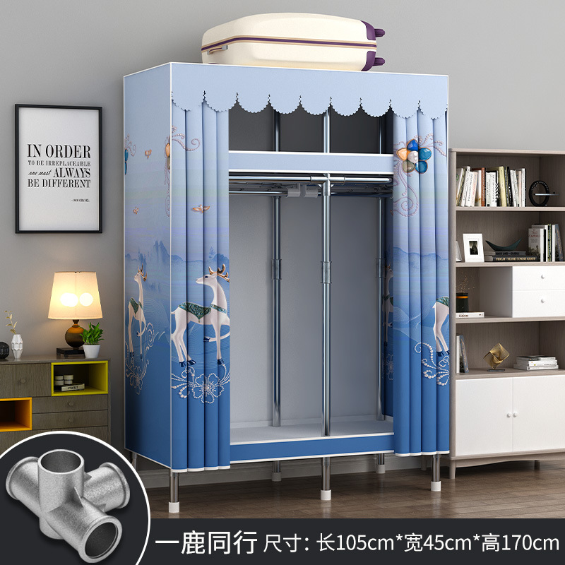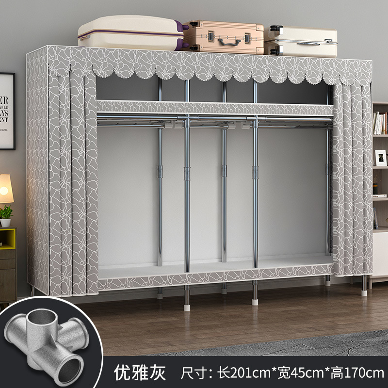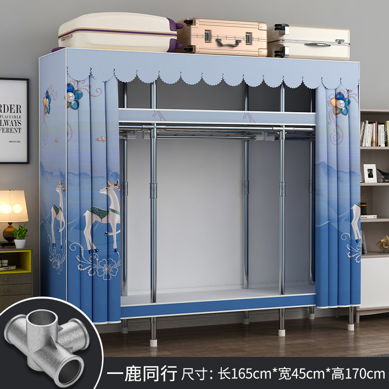 단일 옷장 홈 침실 임대 방 간단한 천 옷장 강철 파이프 두껍게 및 두꺼운 경제적 인 저장 옷장