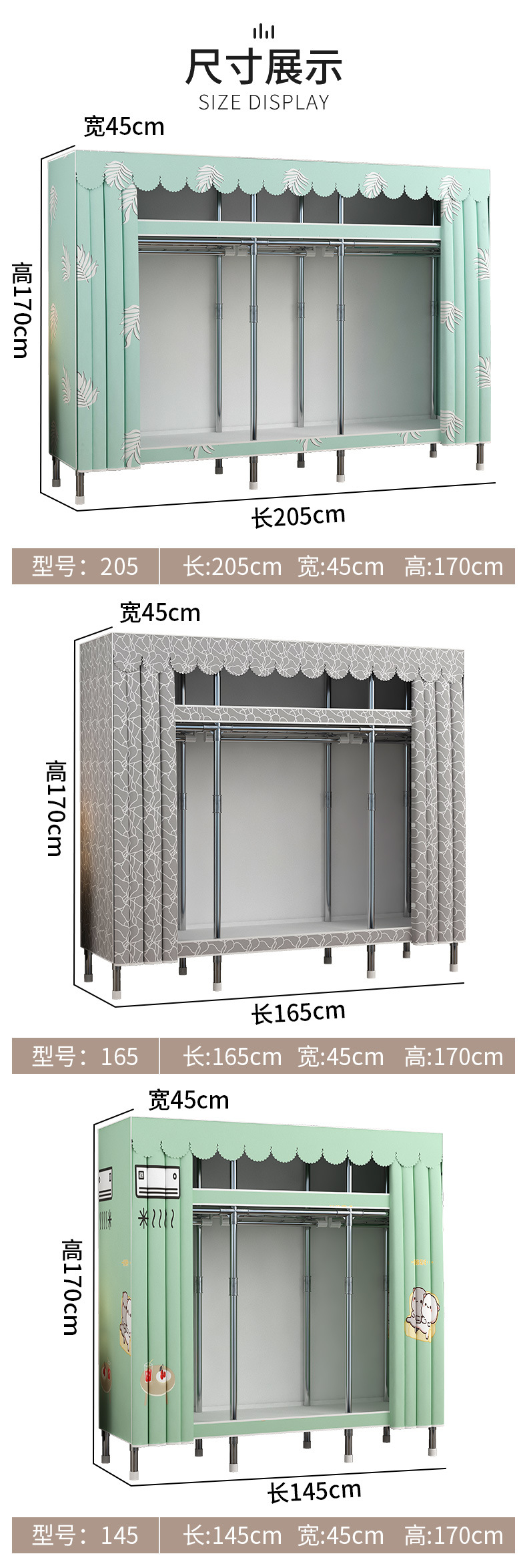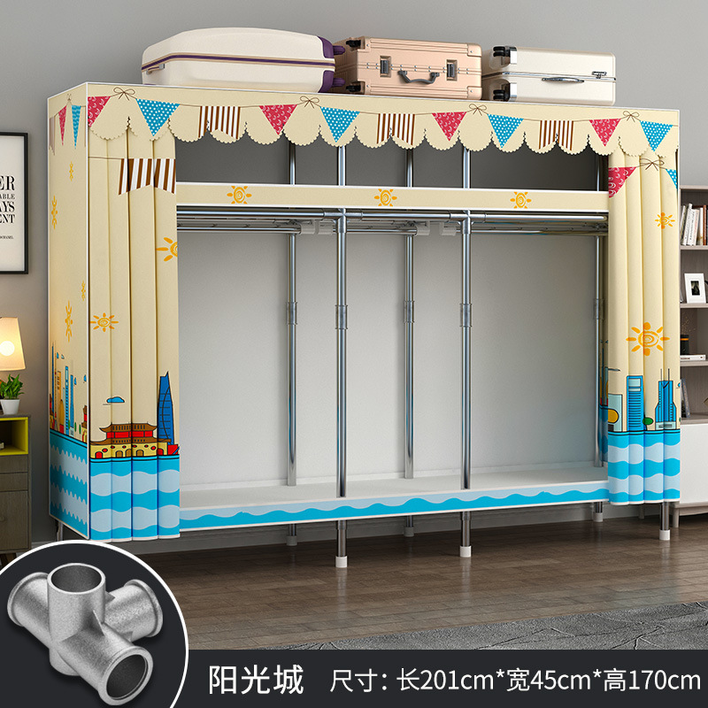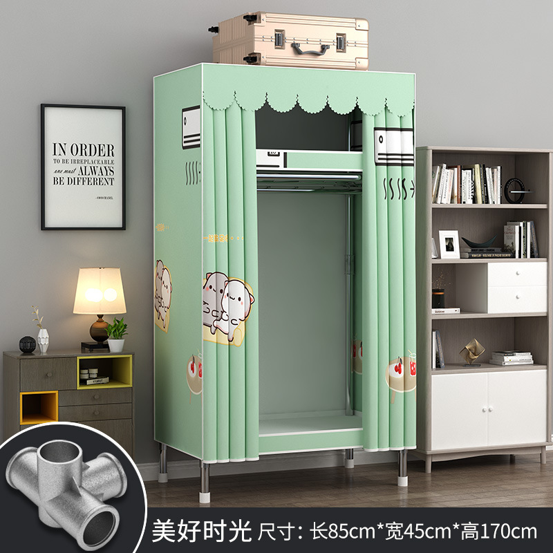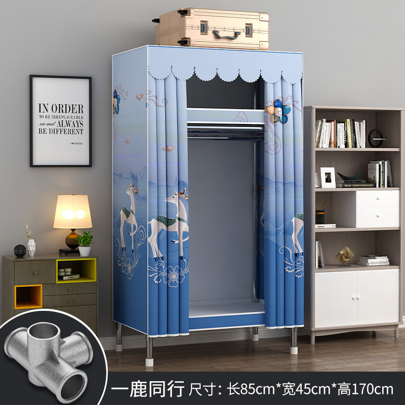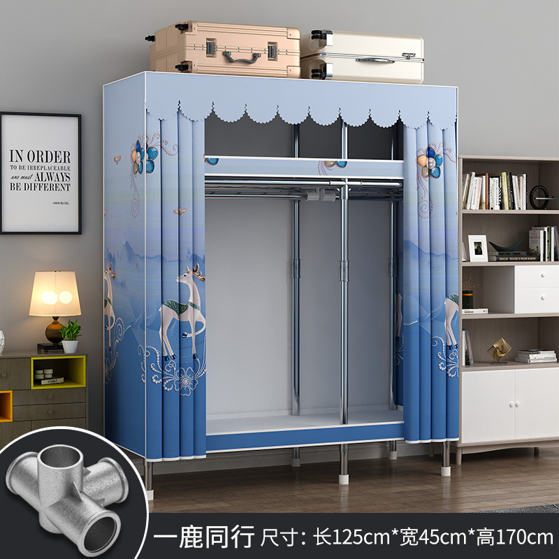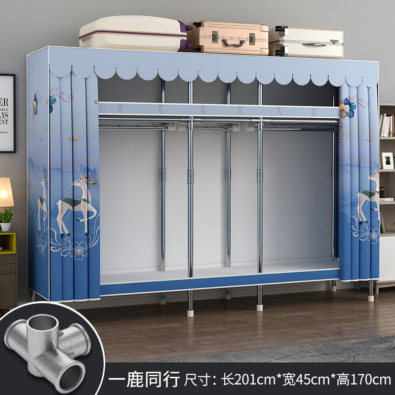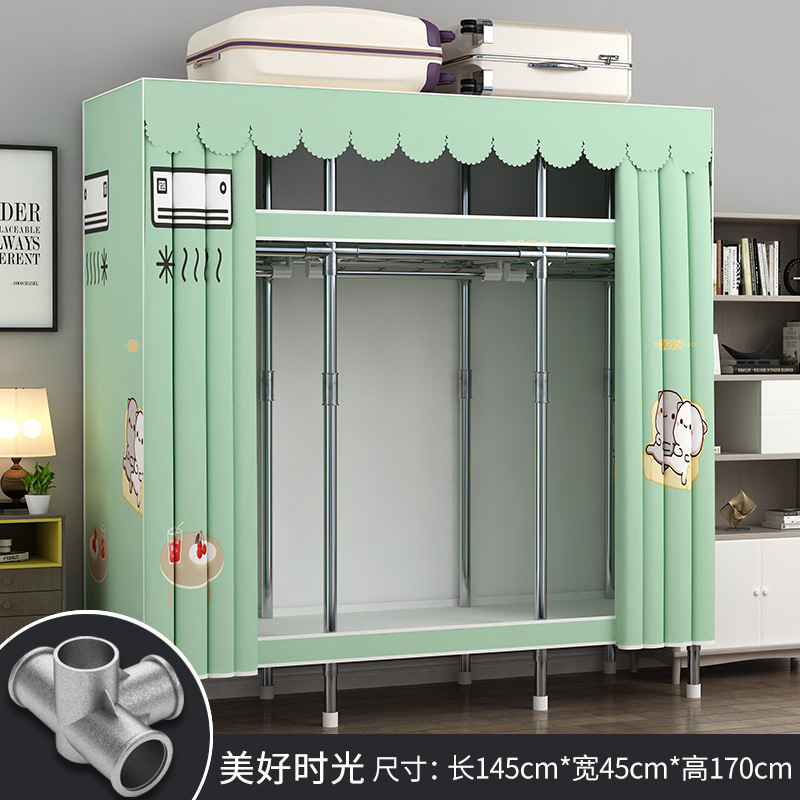 단일 옷장 홈 침실 임대 방 간단한 천 옷장 강철 파이프 두껍게 및 두꺼운 경제적 인 저장 옷장