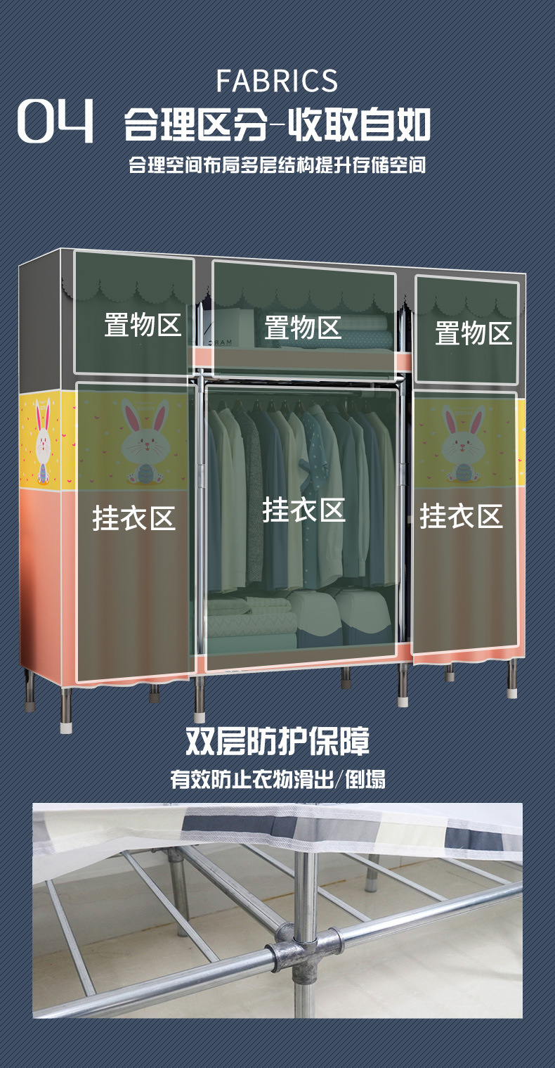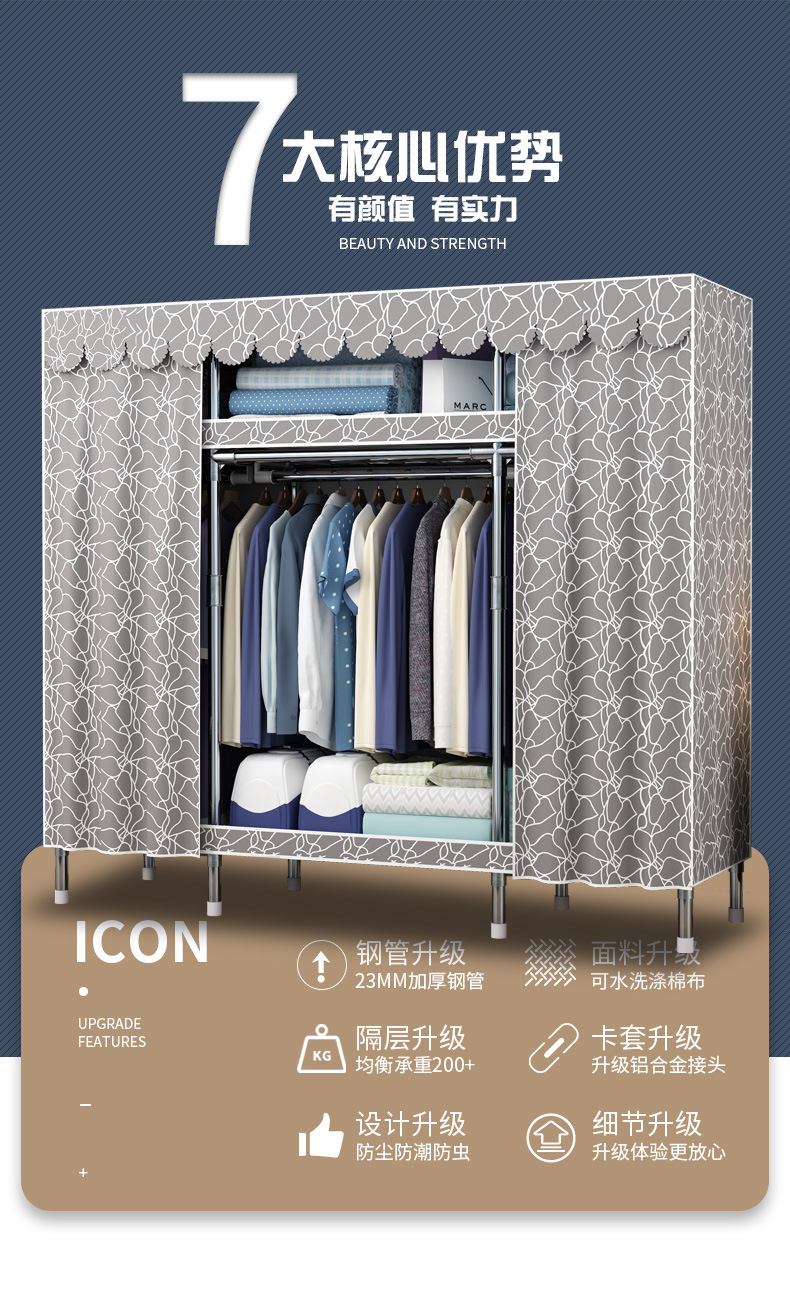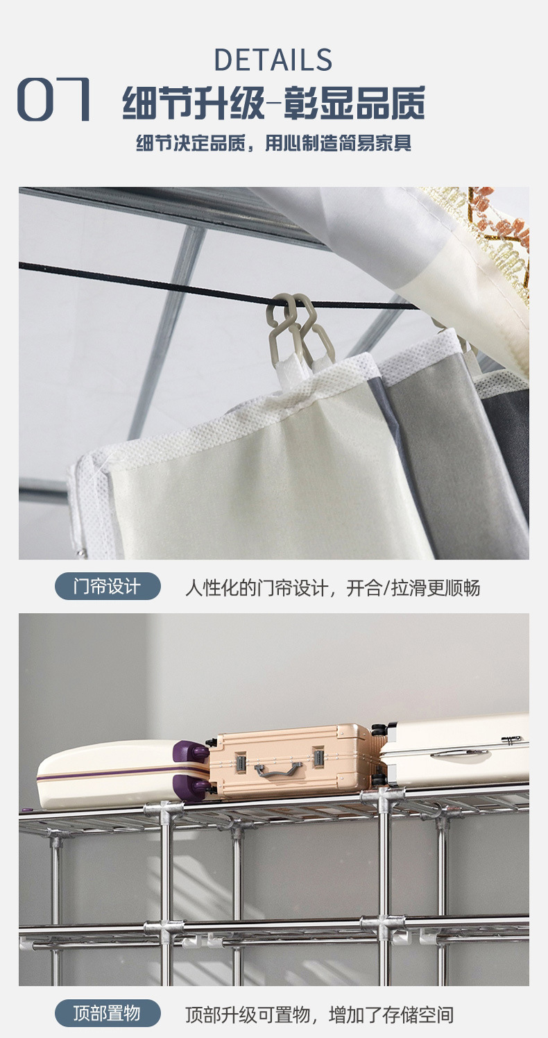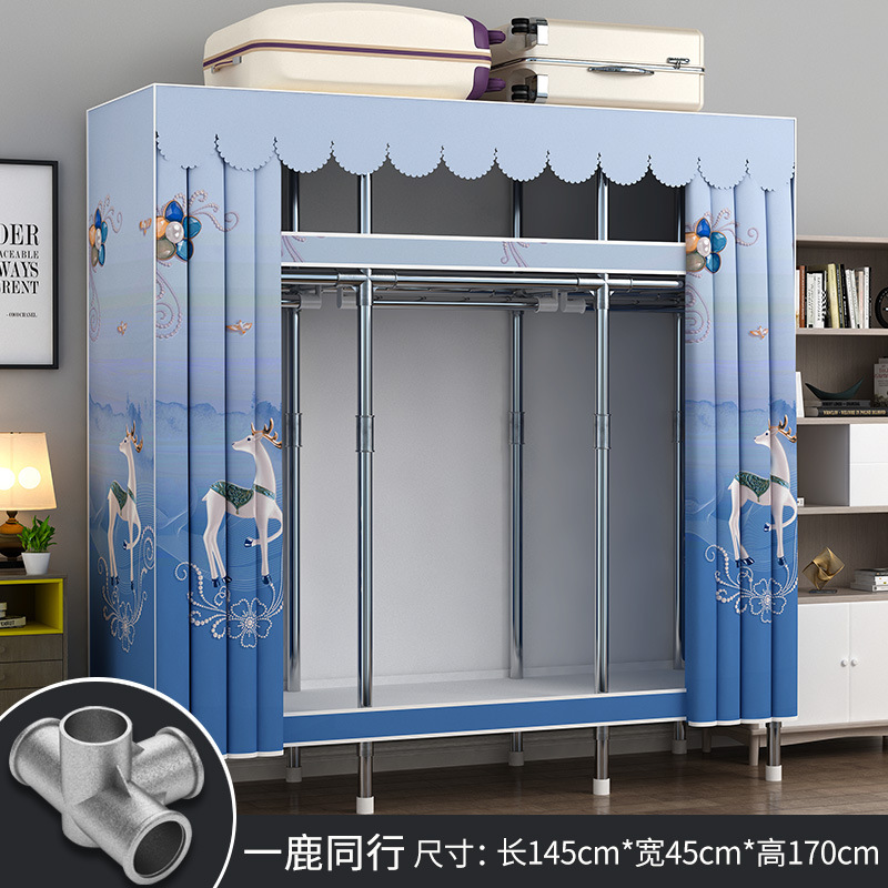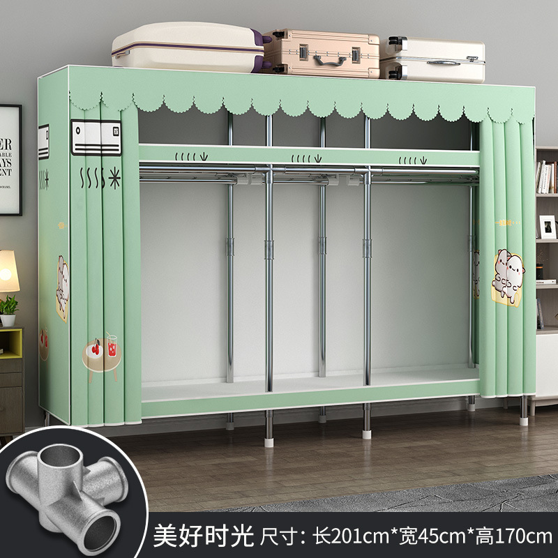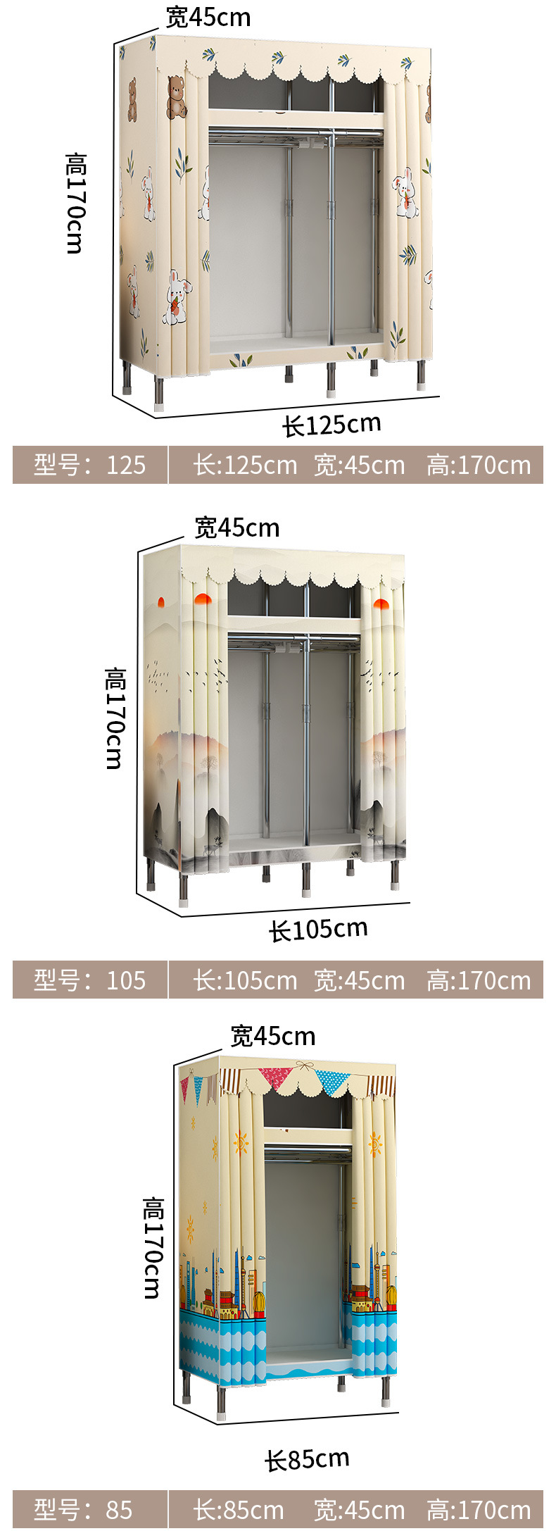 단일 옷장 홈 침실 임대 방 간단한 천 옷장 강철 파이프 두껍게 및 두꺼운 경제적 인 저장 옷장