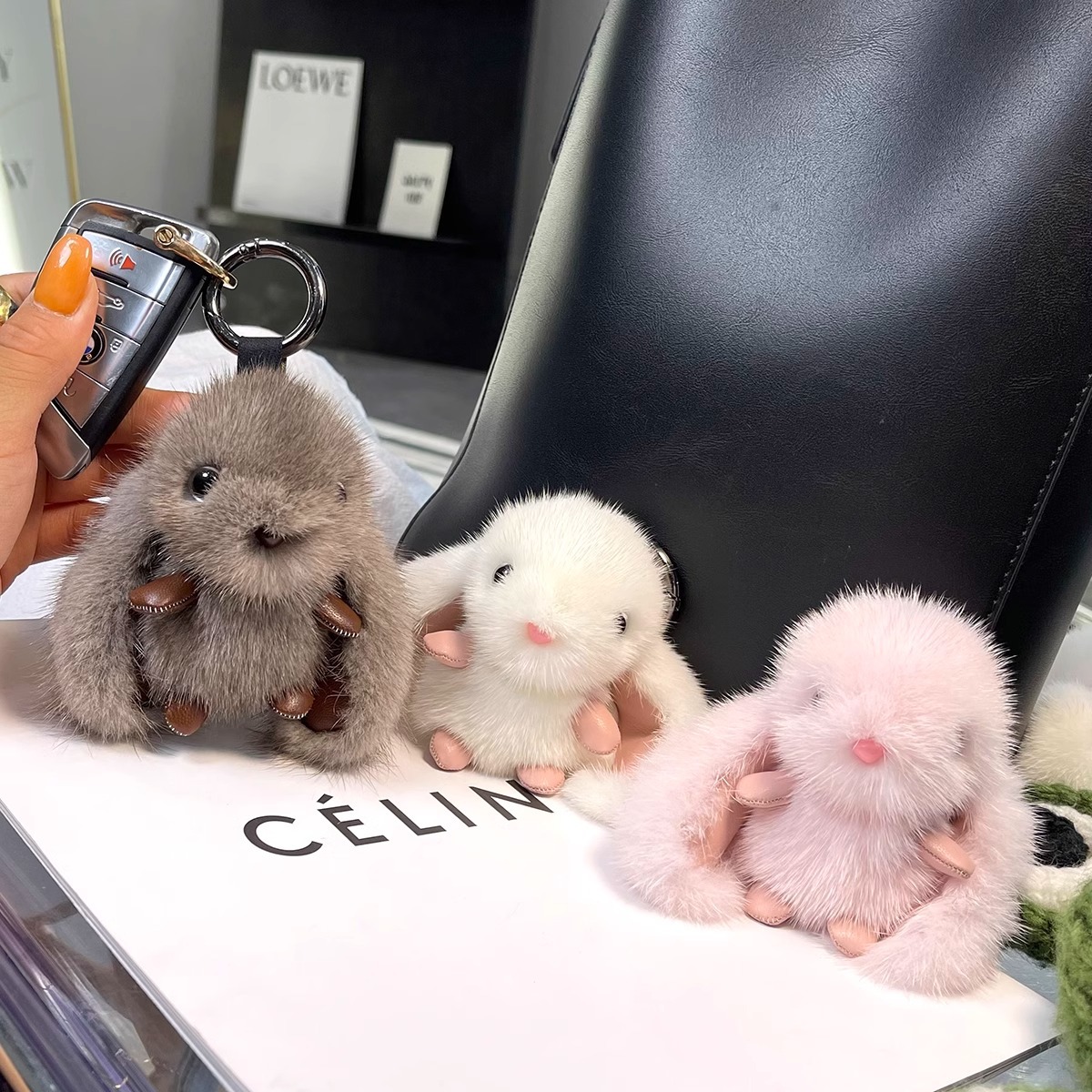 토끼 가방 매달려 보석 인터넷-유명한 Ou-밍크 토끼 귀여운 봉제 귀 매달려 토끼 인형 선물 자동차 키 체인 펜던트