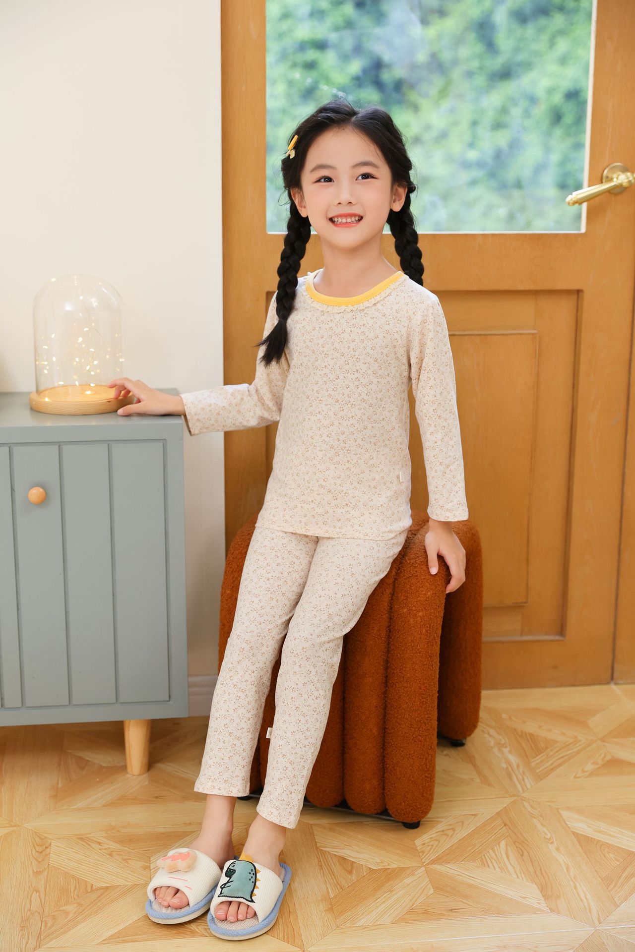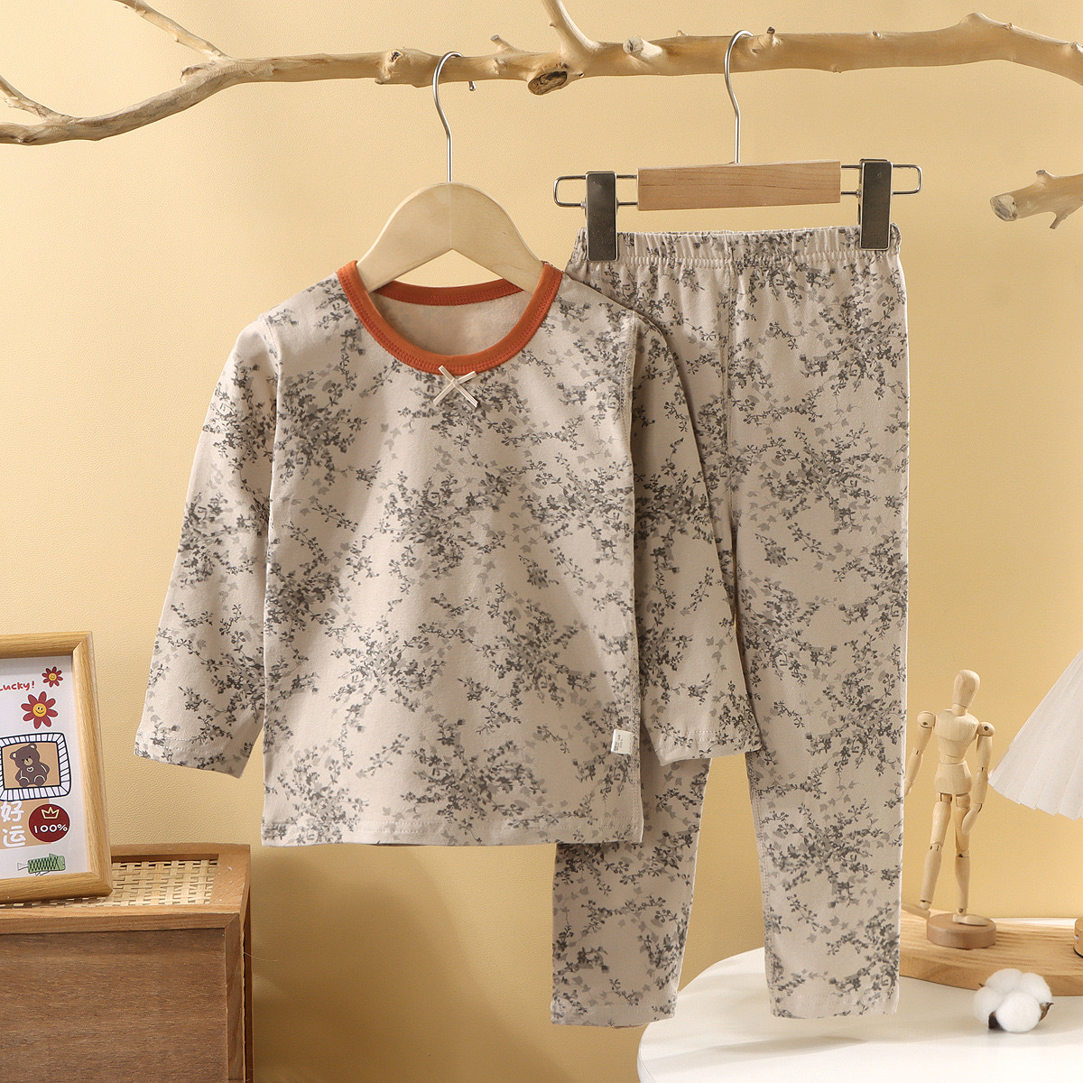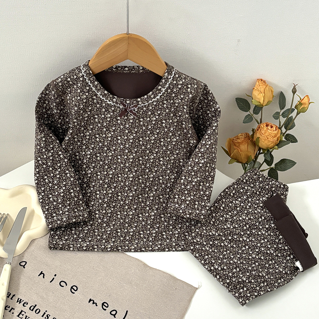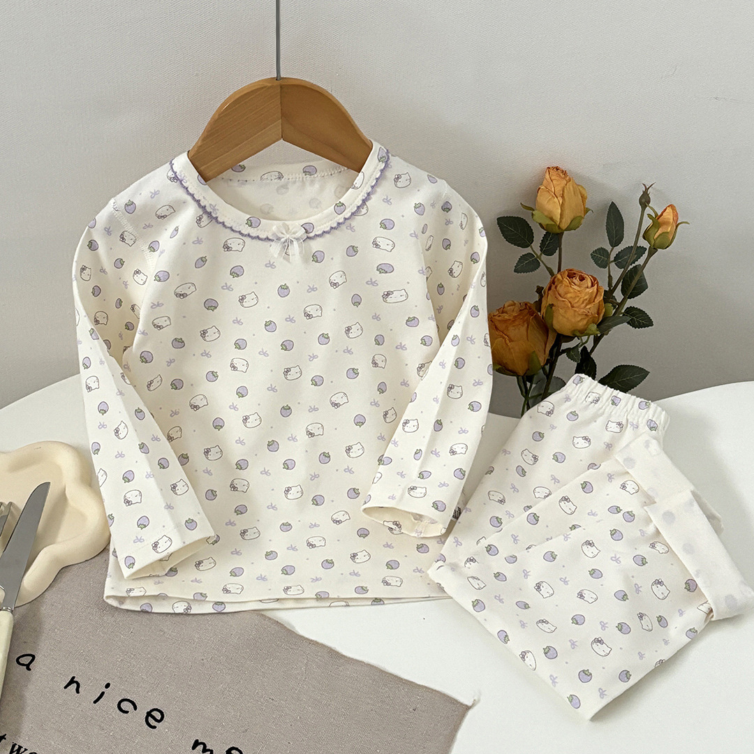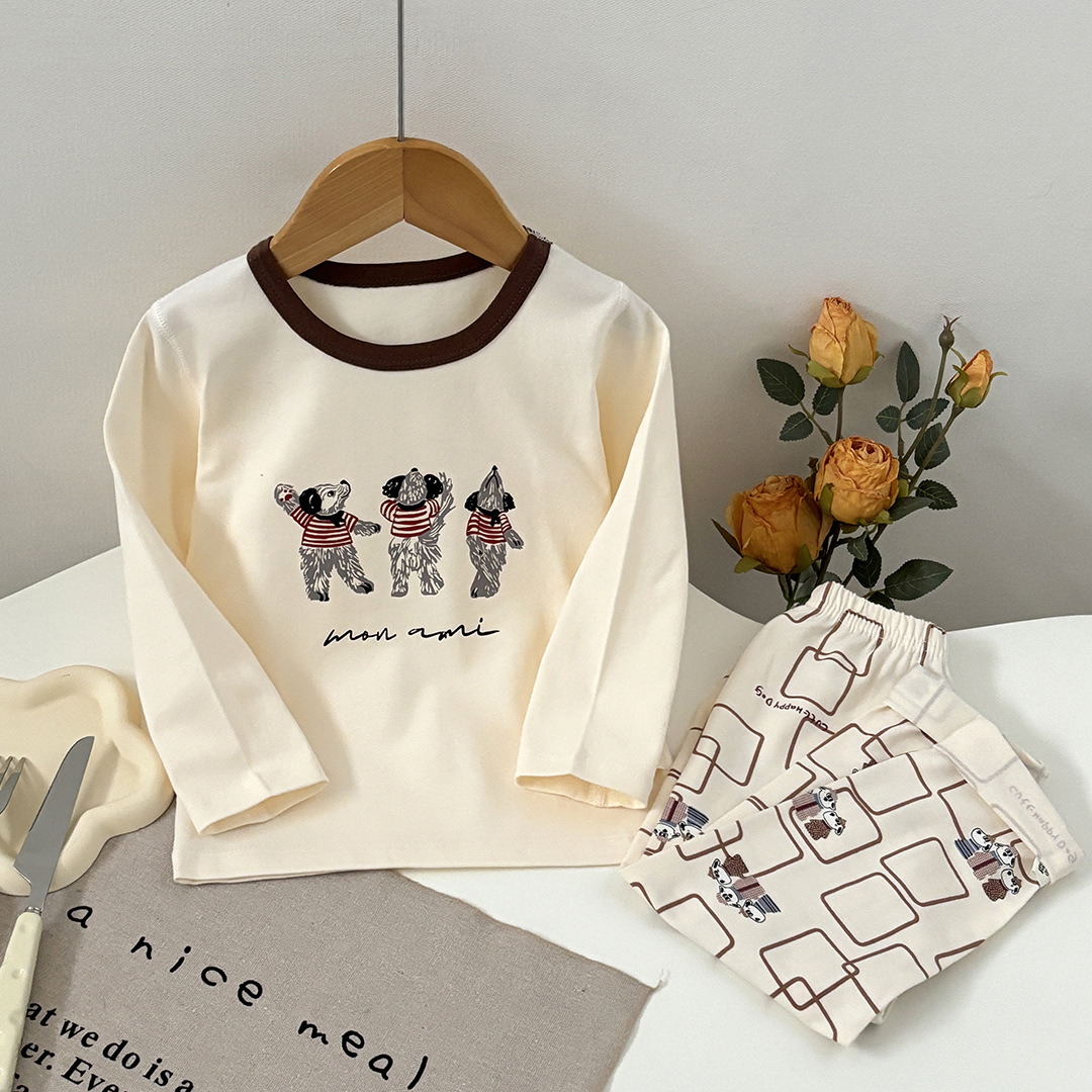 어린이 봄과 가을 라이크라 코튼 속옷 세트 소년 소녀 가을 옷과 바지 따뜻한 세트 베이스 파자마 홈 옷스토어 가기
