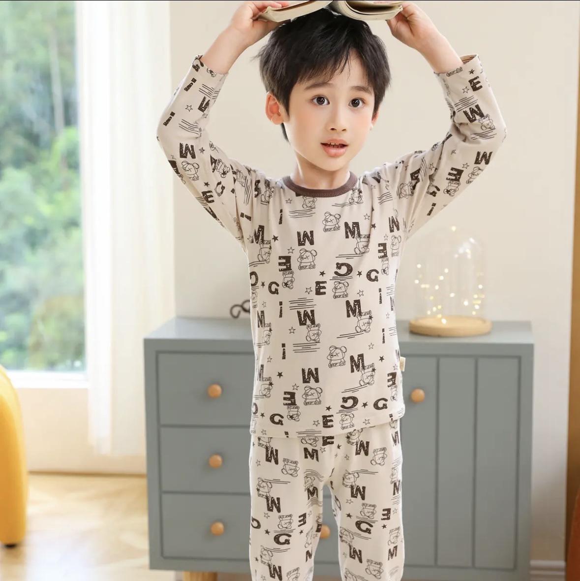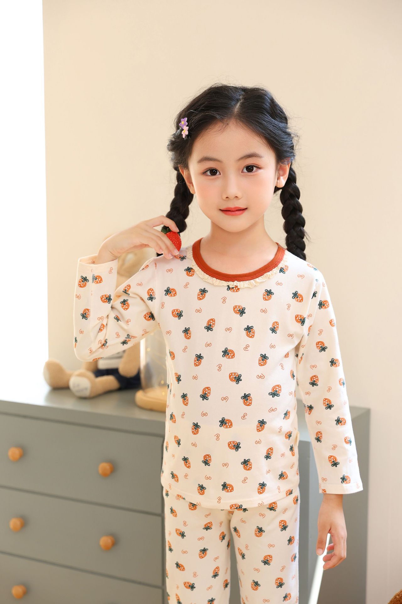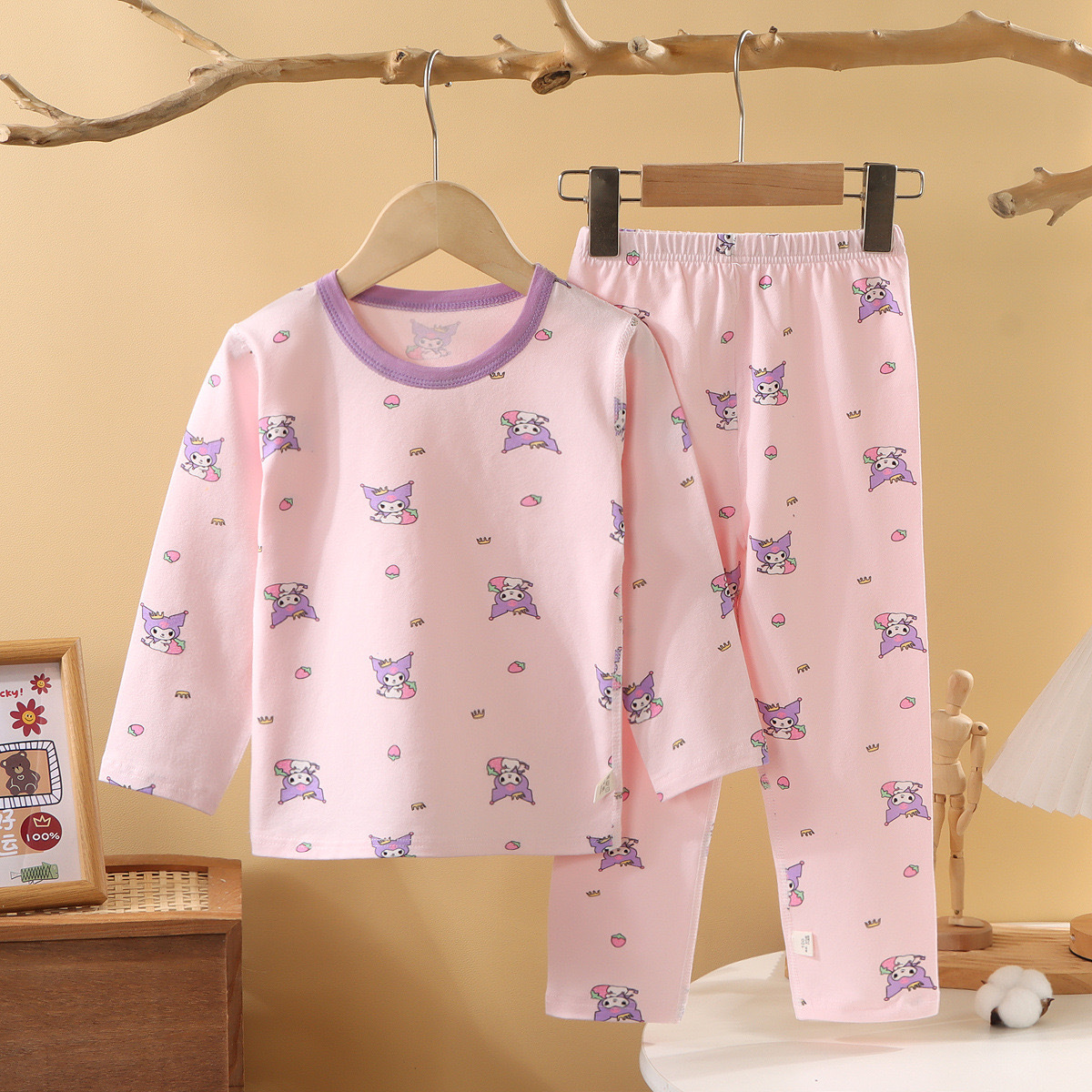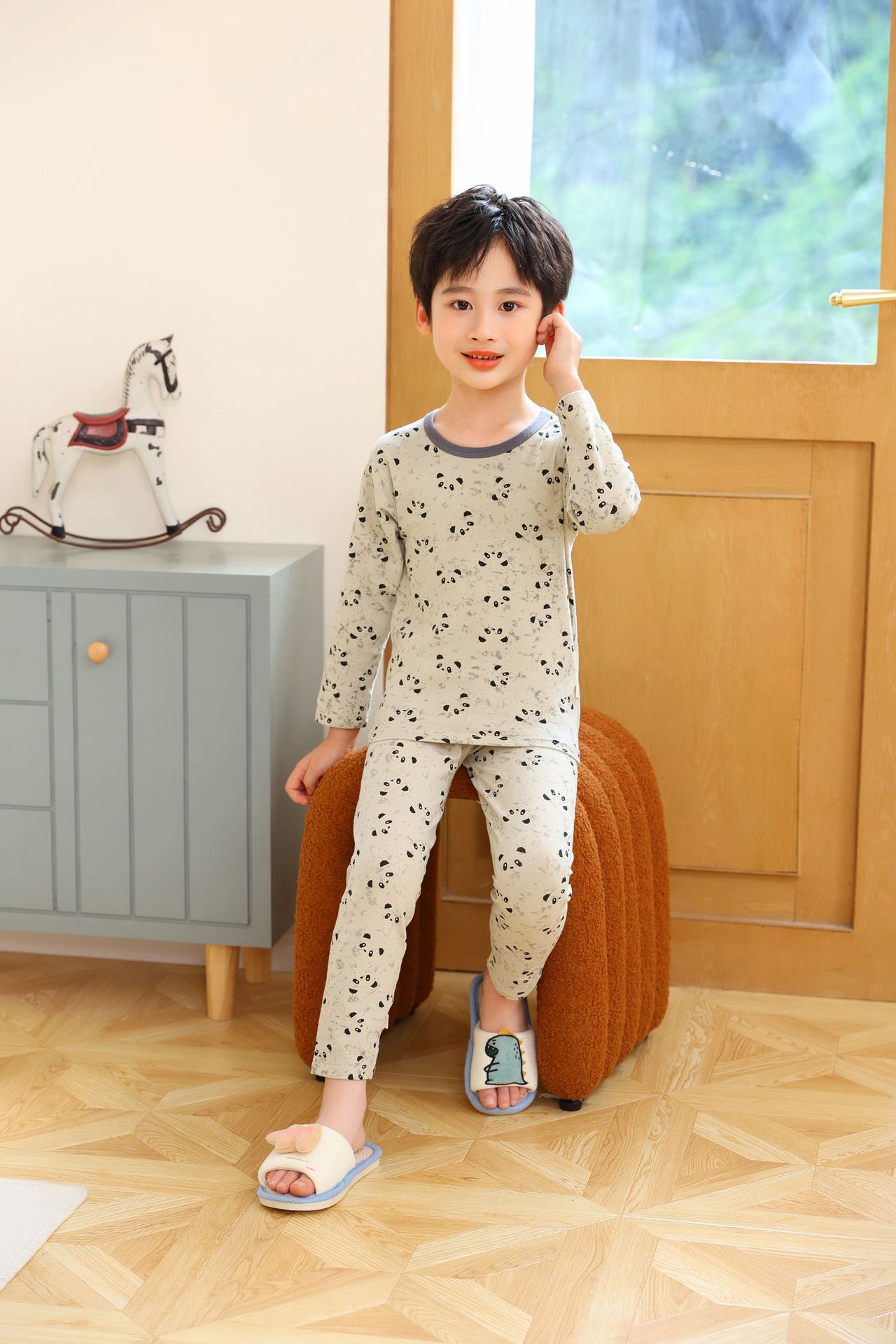 어린이 봄과 가을 라이크라 코튼 속옷 세트 소년 소녀 가을 옷과 바지 따뜻한 세트 베이스 파자마 홈 옷스토어 가기