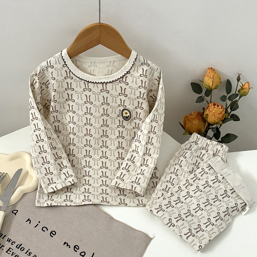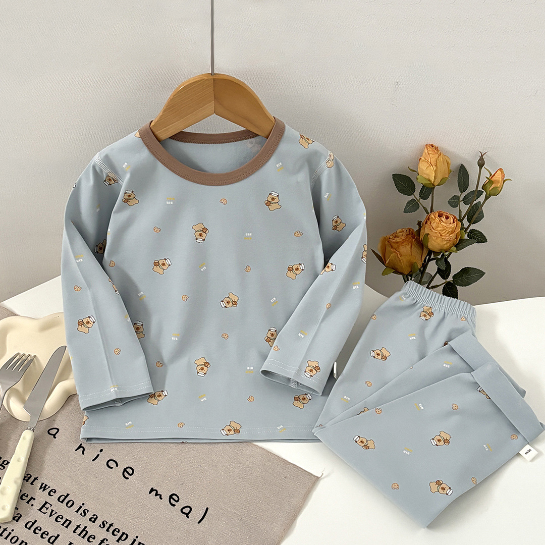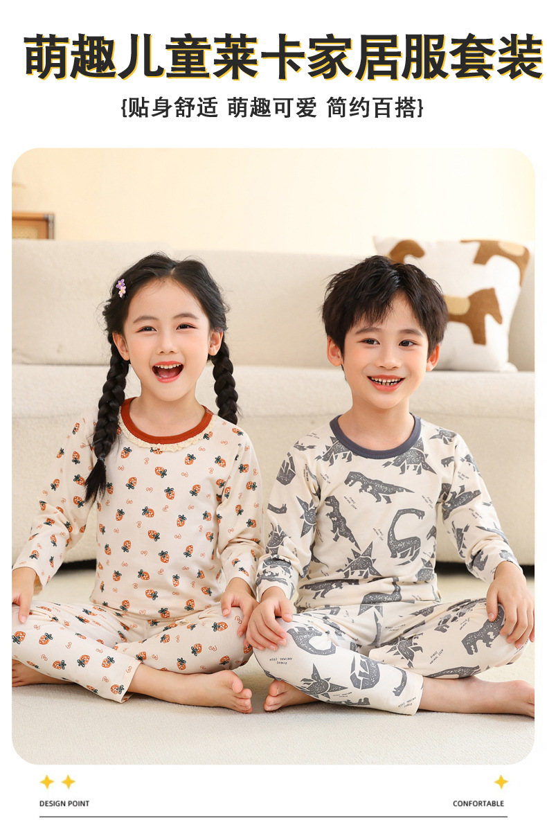 어린이 봄과 가을 라이크라 코튼 속옷 세트 소년 소녀 가을 옷과 바지 따뜻한 세트 베이스 파자마 홈 옷