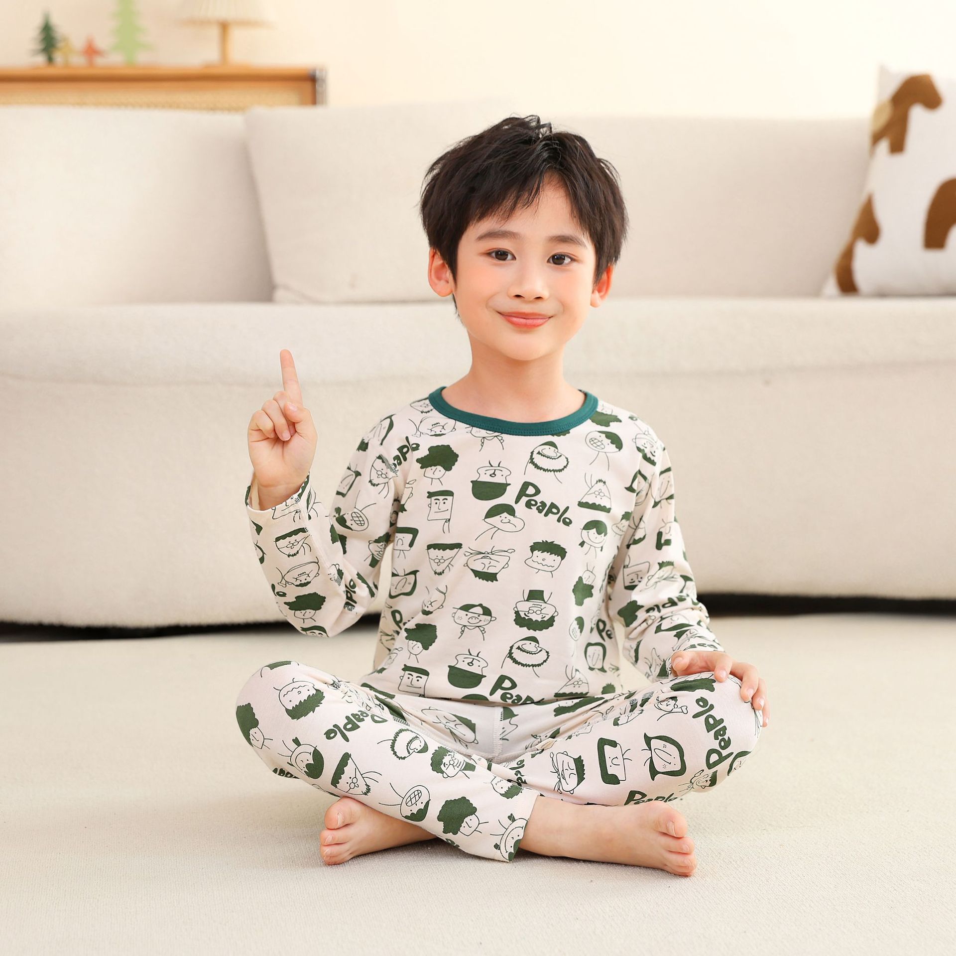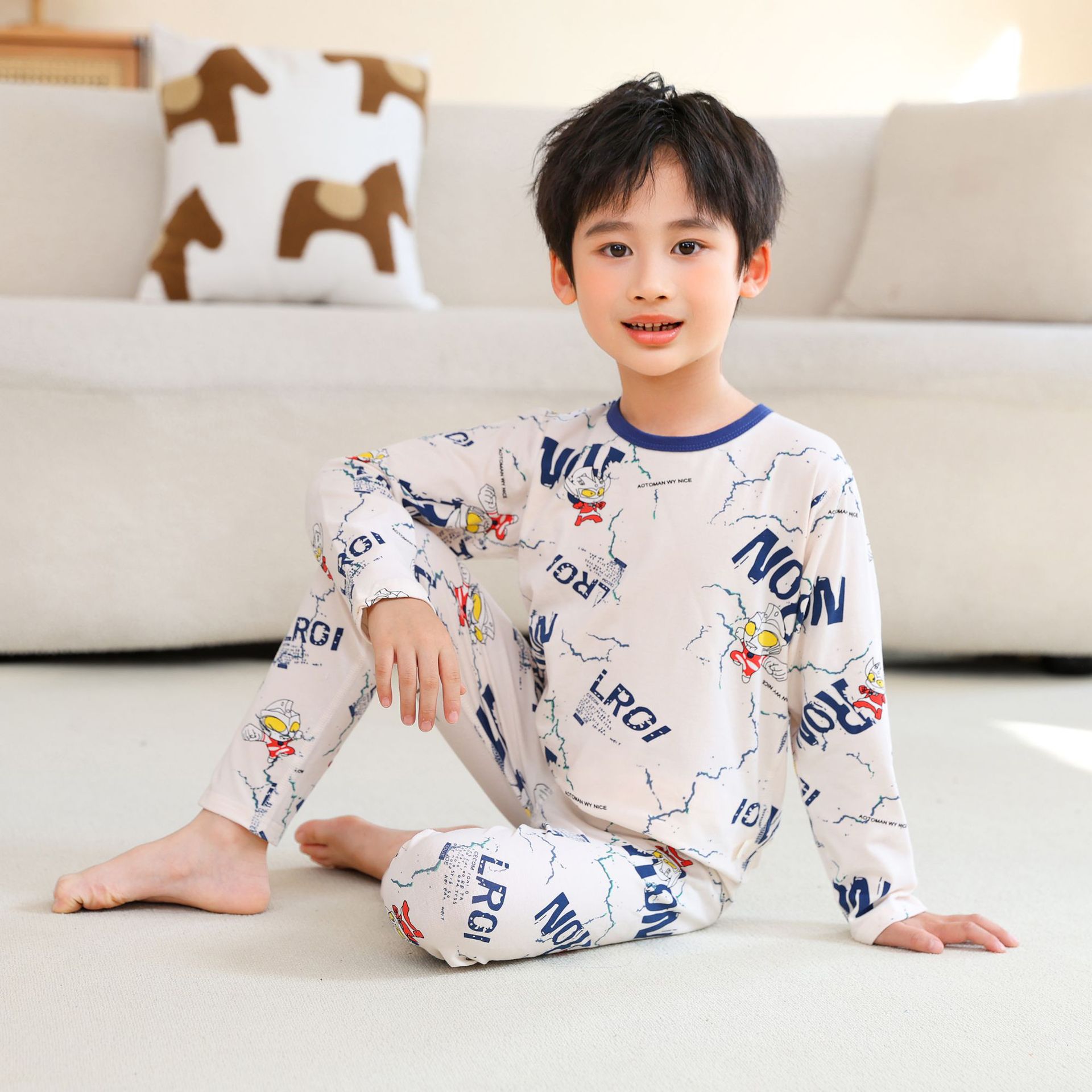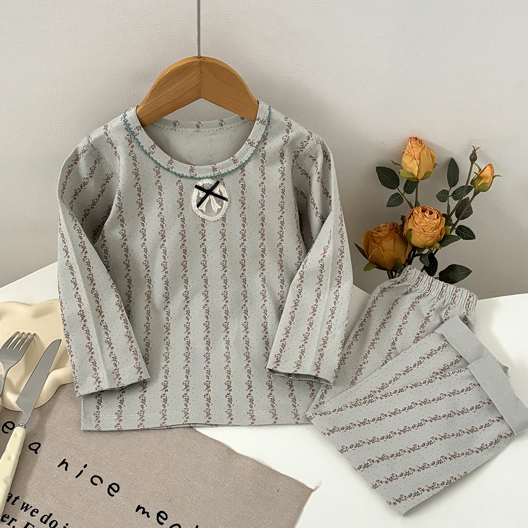 어린이 봄과 가을 라이크라 코튼 속옷 세트 소년 소녀 가을 옷과 바지 따뜻한 세트 베이스 파자마 홈 옷