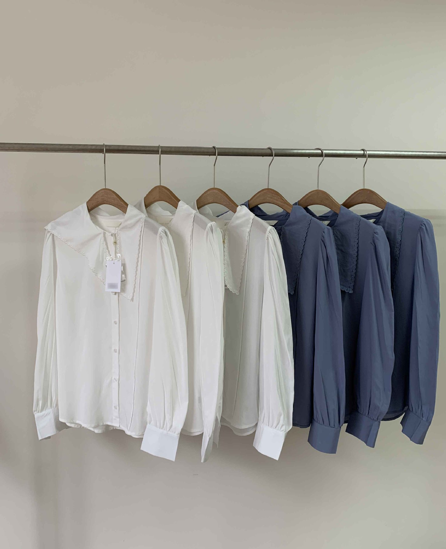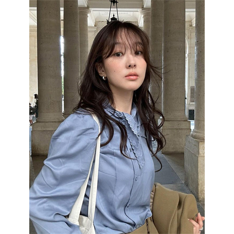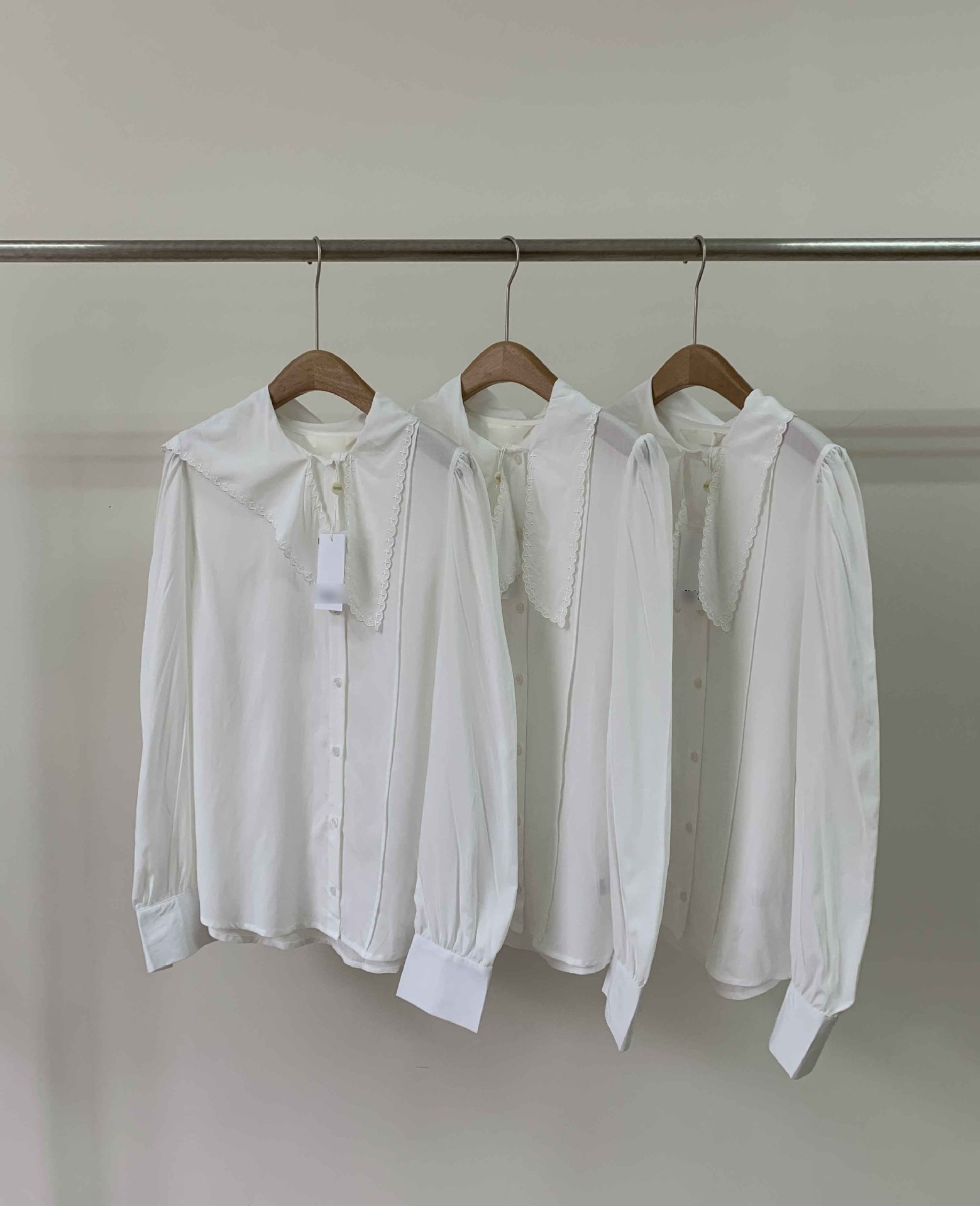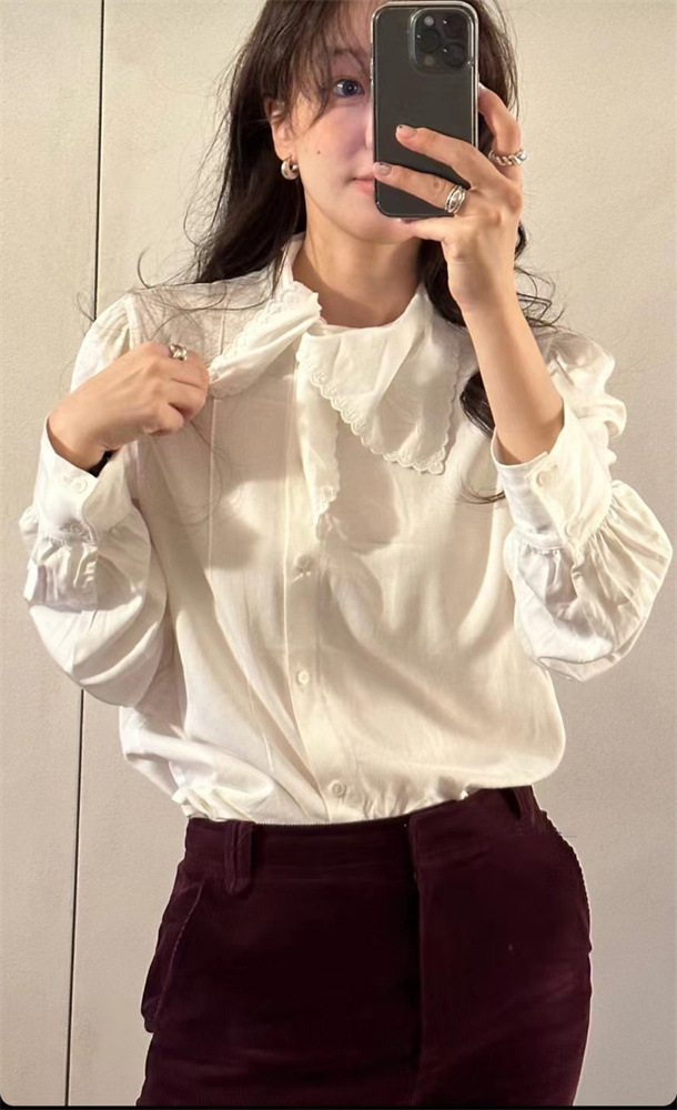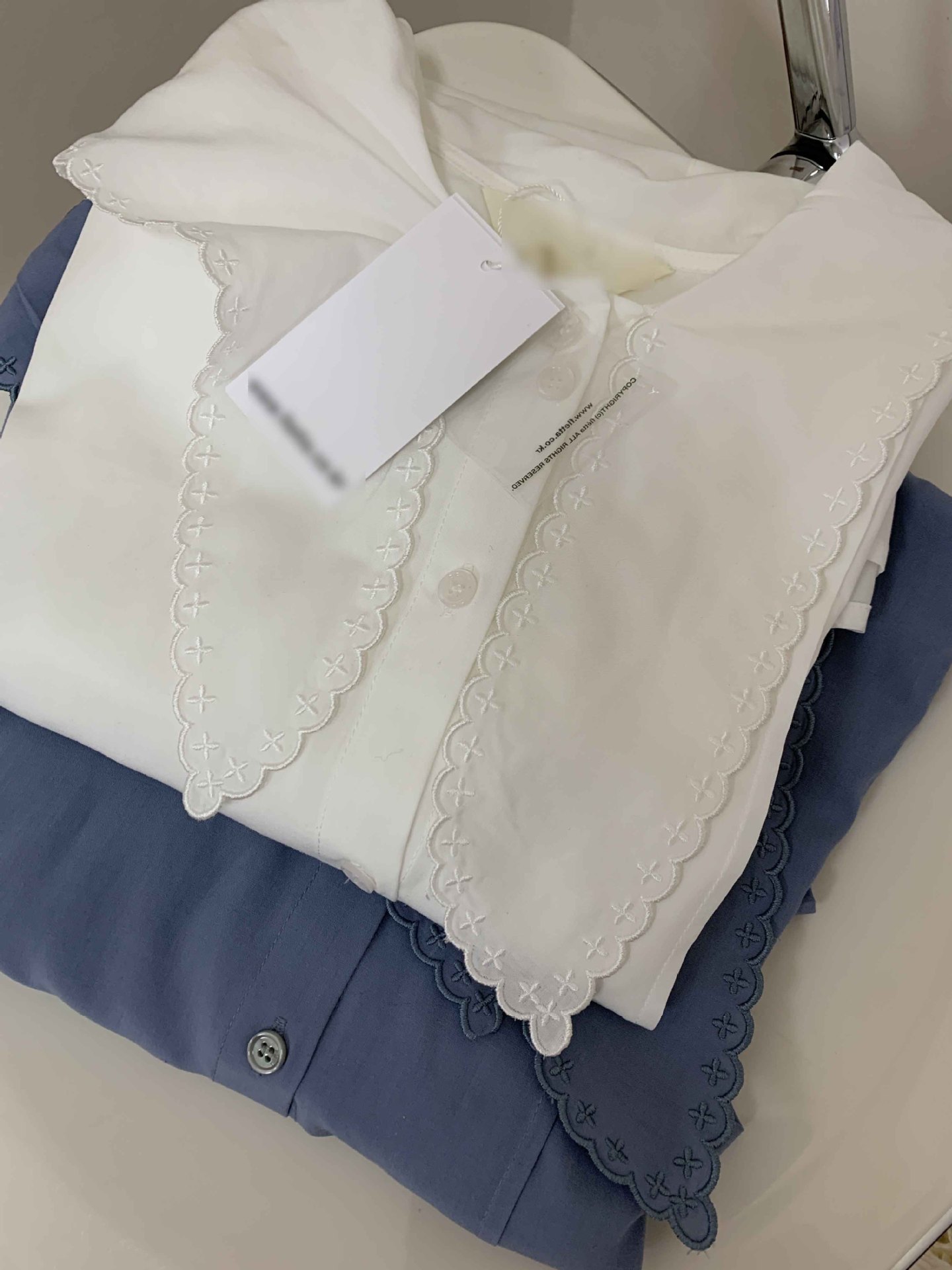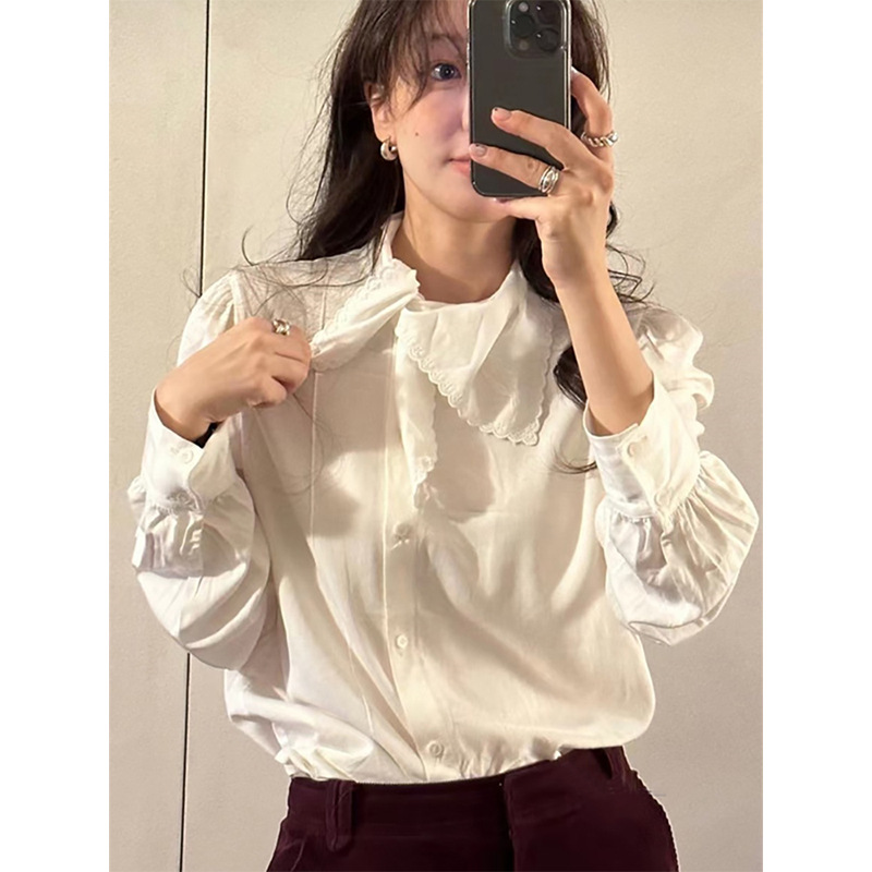 스팟 레이스 타이 셔츠 봄 가을 여성 패션 디자인 화이트 심플 다용도 셔츠 탑 flet*a스토어 가기