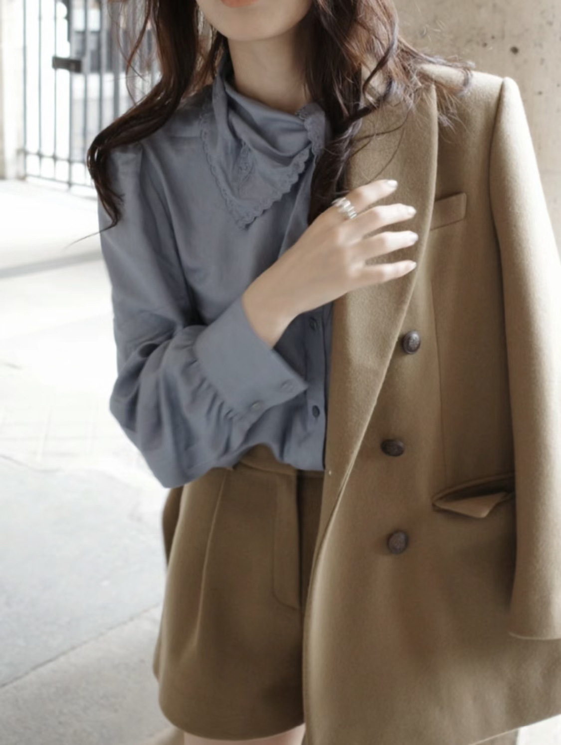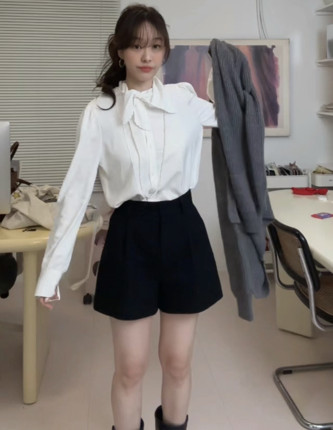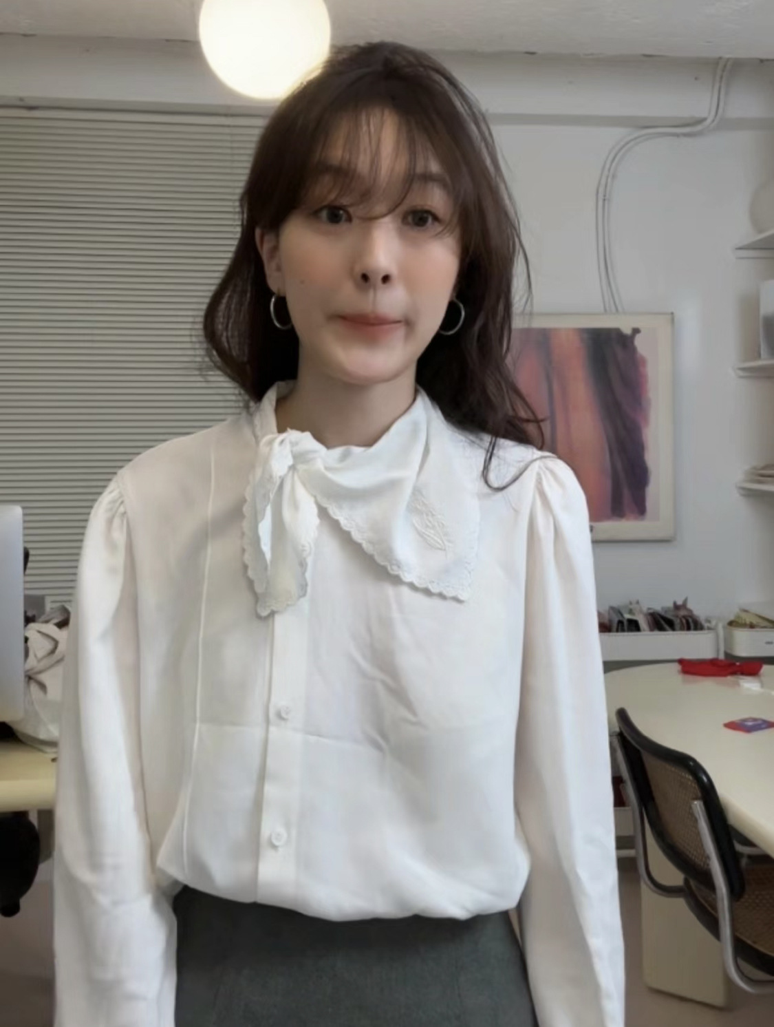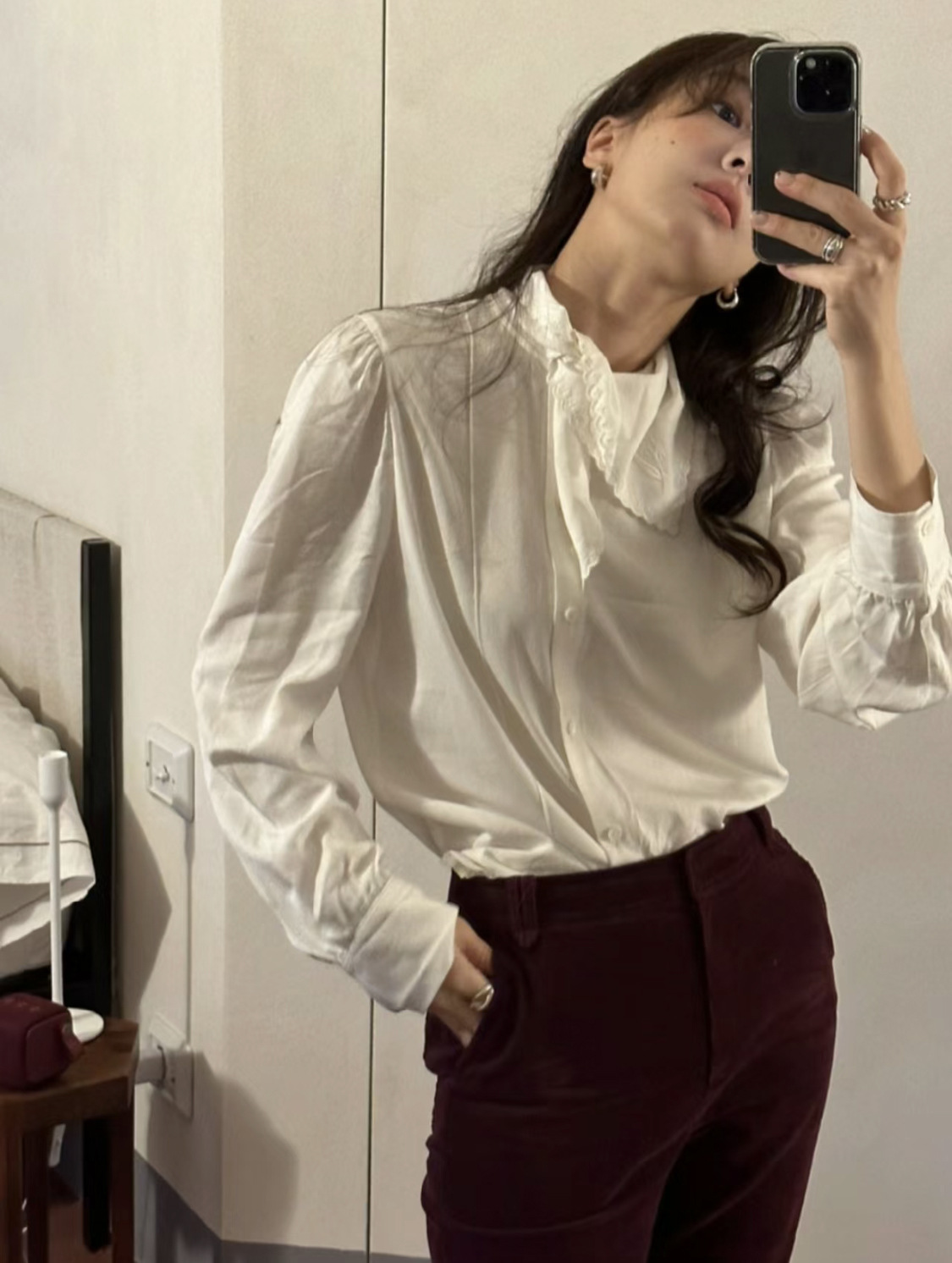 스팟 레이스 타이 셔츠 봄 가을 여성 패션 디자인 화이트 심플 다용도 셔츠 탑 flet*a스토어 가기