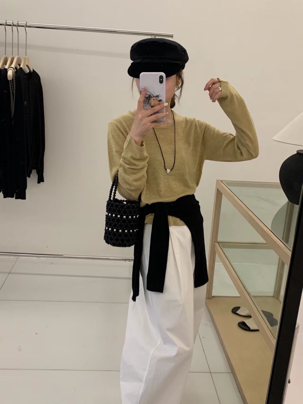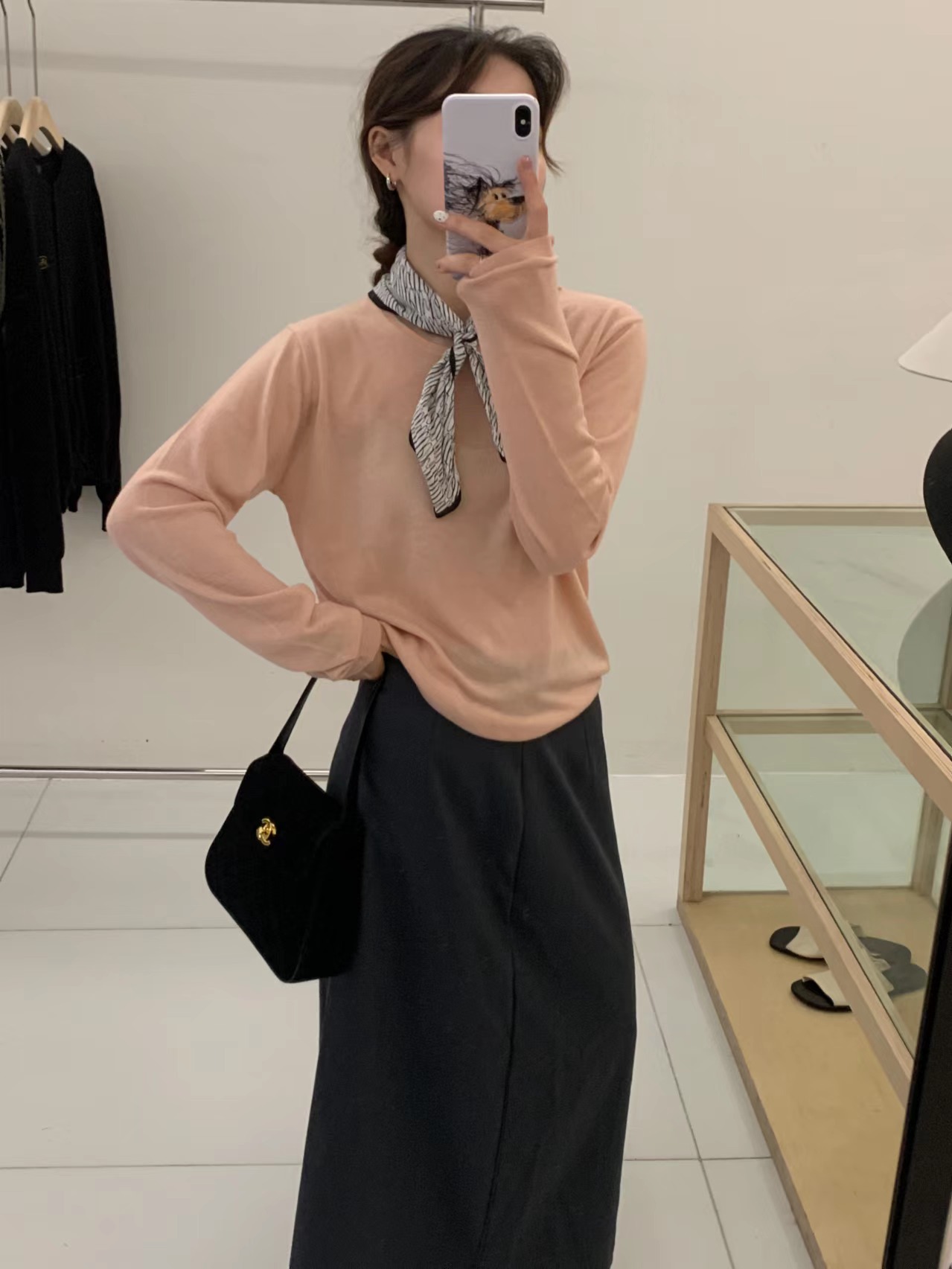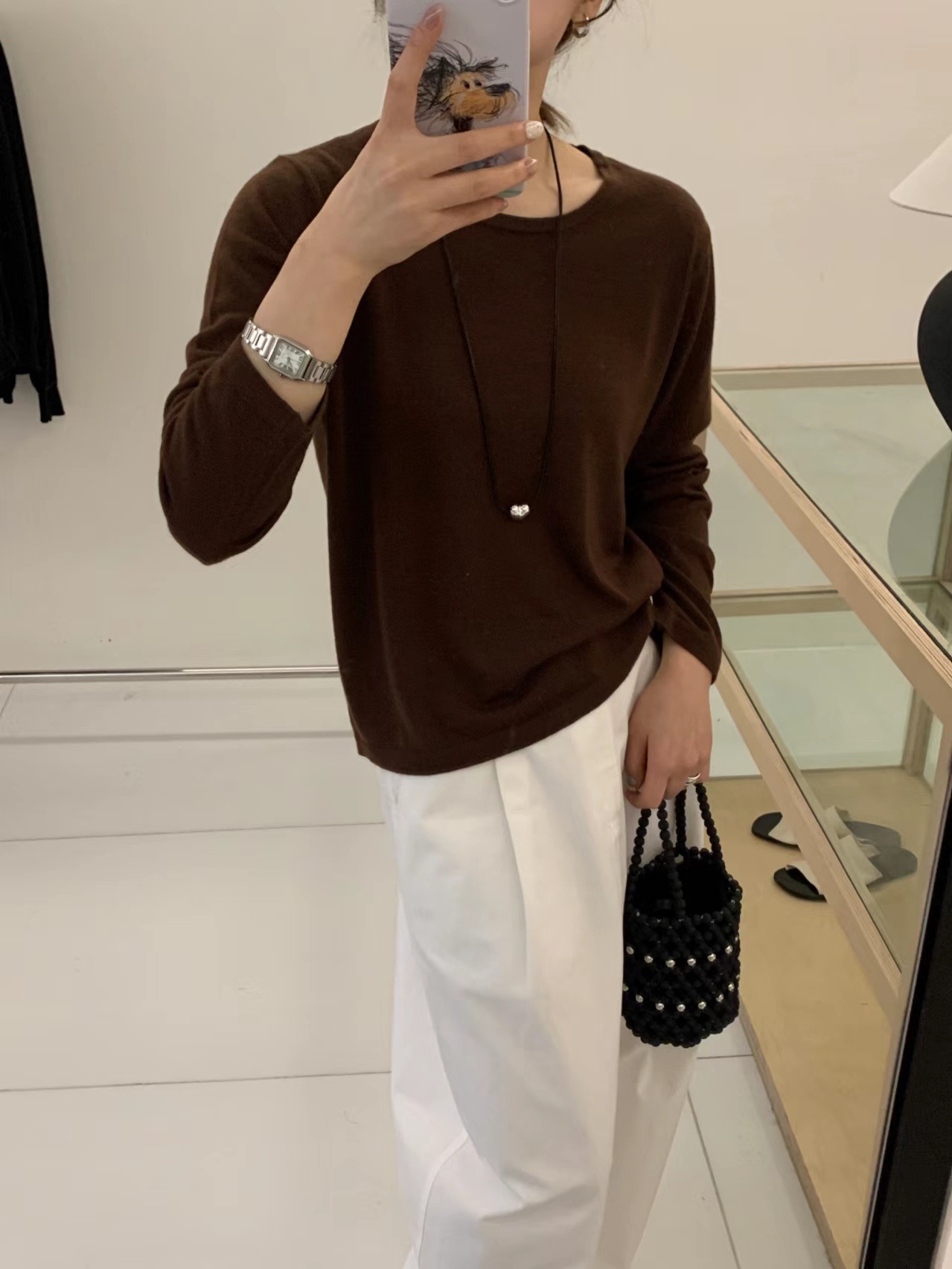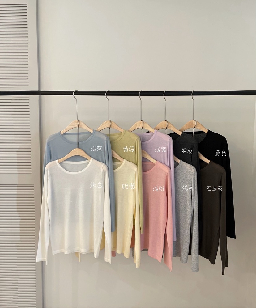 2024 가을 6 울 니트 긴팔 티셔츠 여성용 라운드넥 풀오버 루즈핏 다용도 베이직 이너웨어 탑스토어 가기