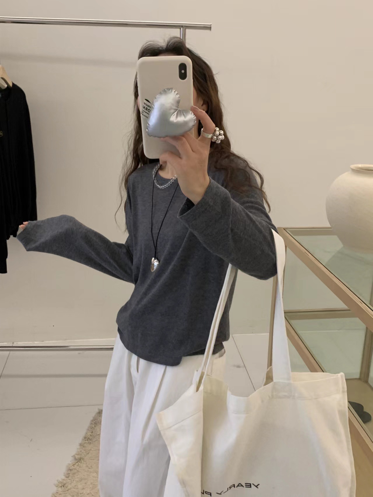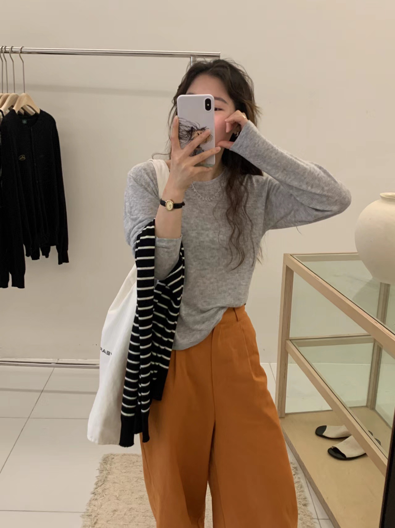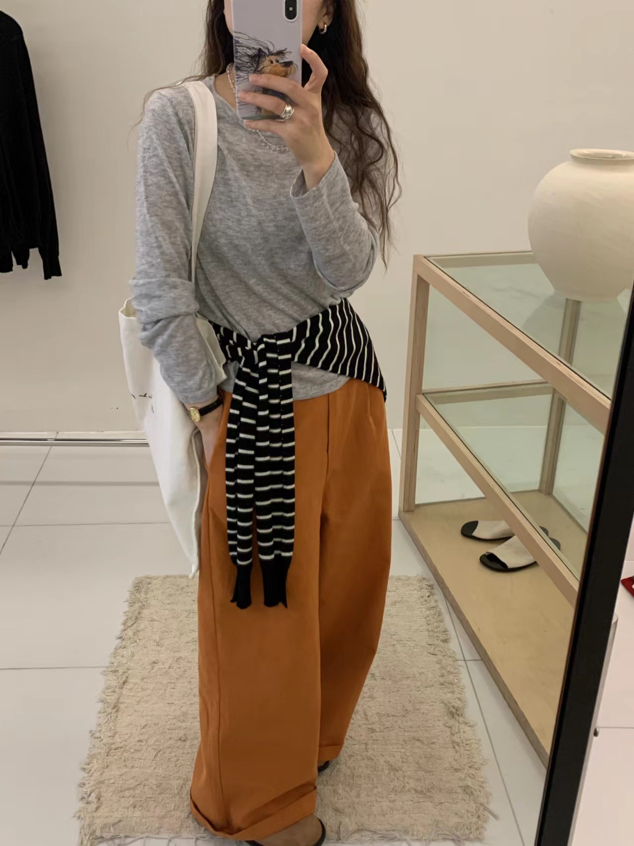 2024 가을 6 울 니트 긴팔 티셔츠 여성용 라운드넥 풀오버 루즈핏 다용도 베이직 이너웨어 탑스토어 가기