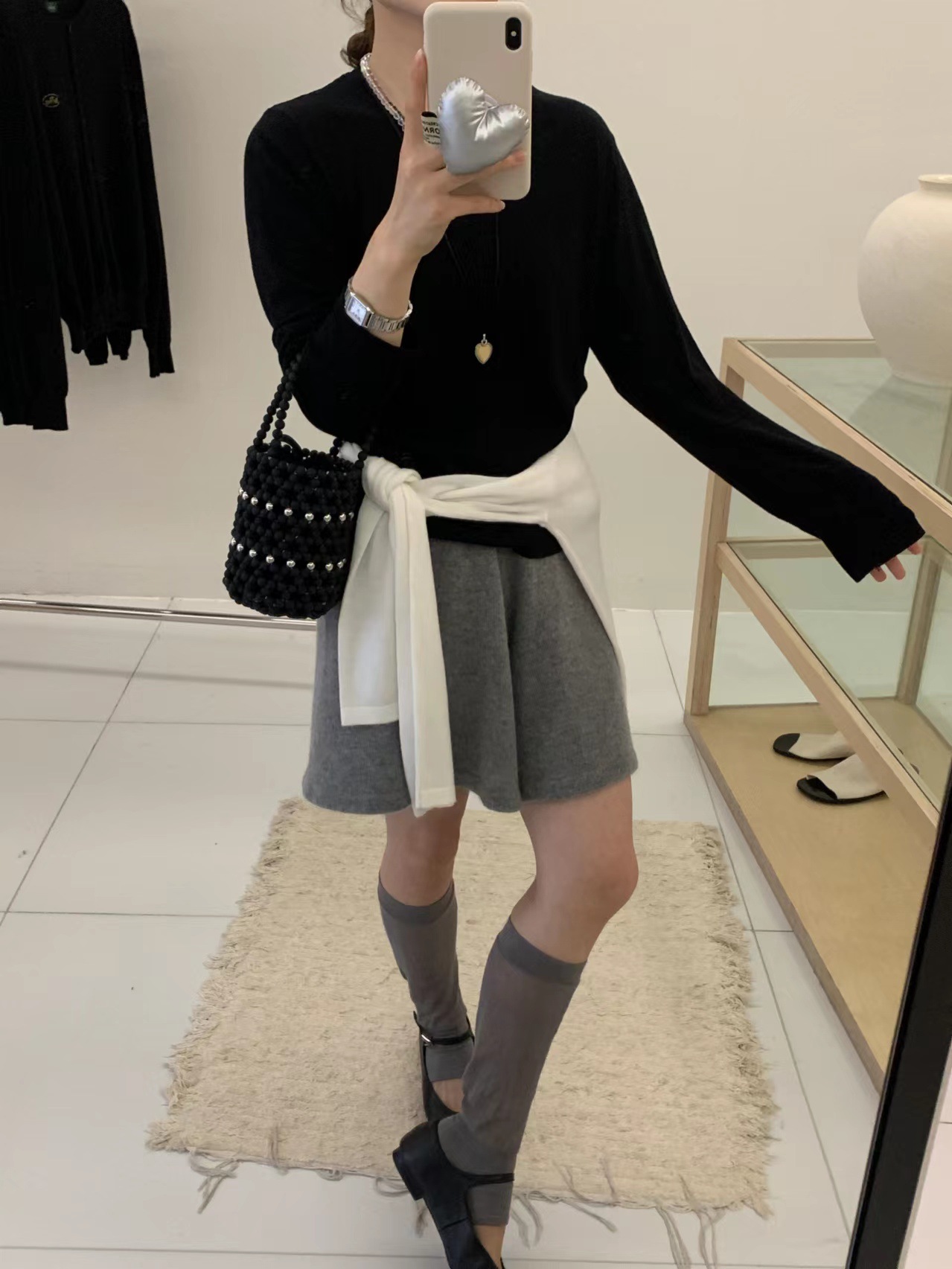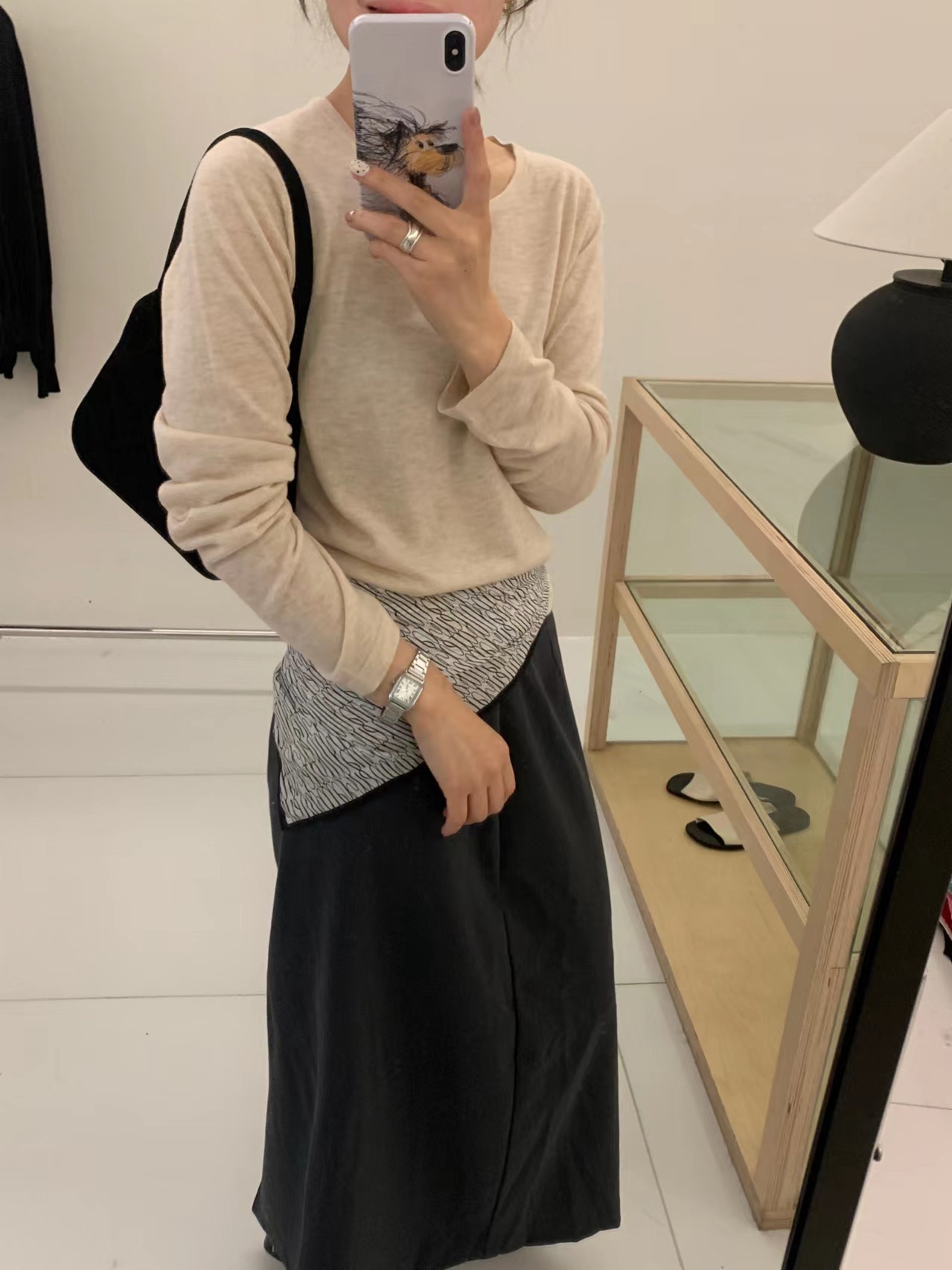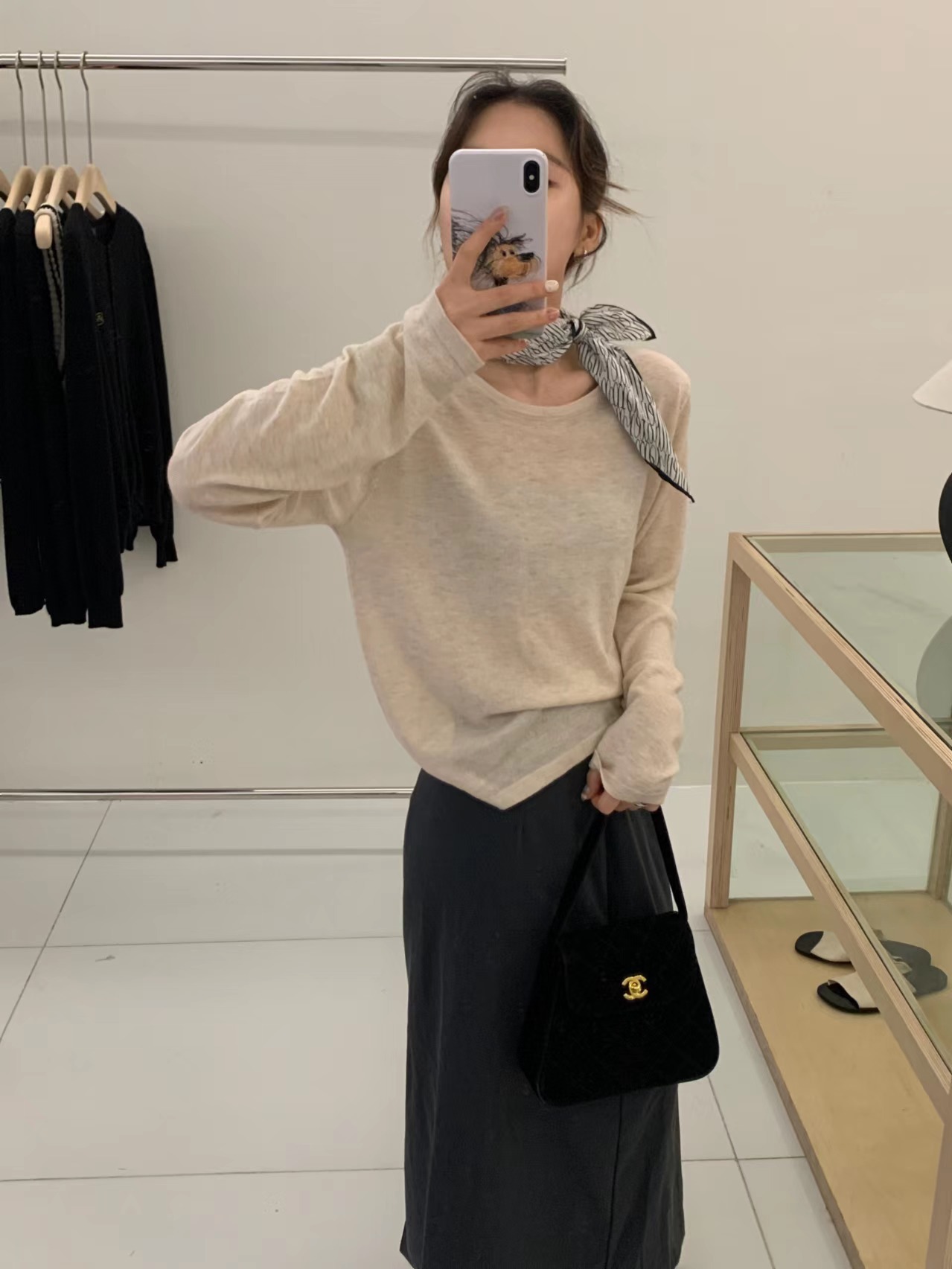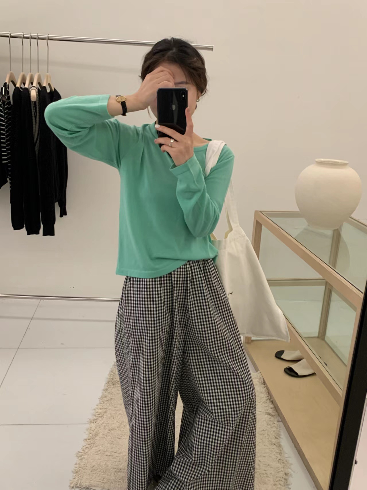2024 가을 6 울 니트 긴팔 티셔츠 여성용 라운드넥 풀오버 루즈핏 다용도 베이직 이너웨어 탑스토어 가기