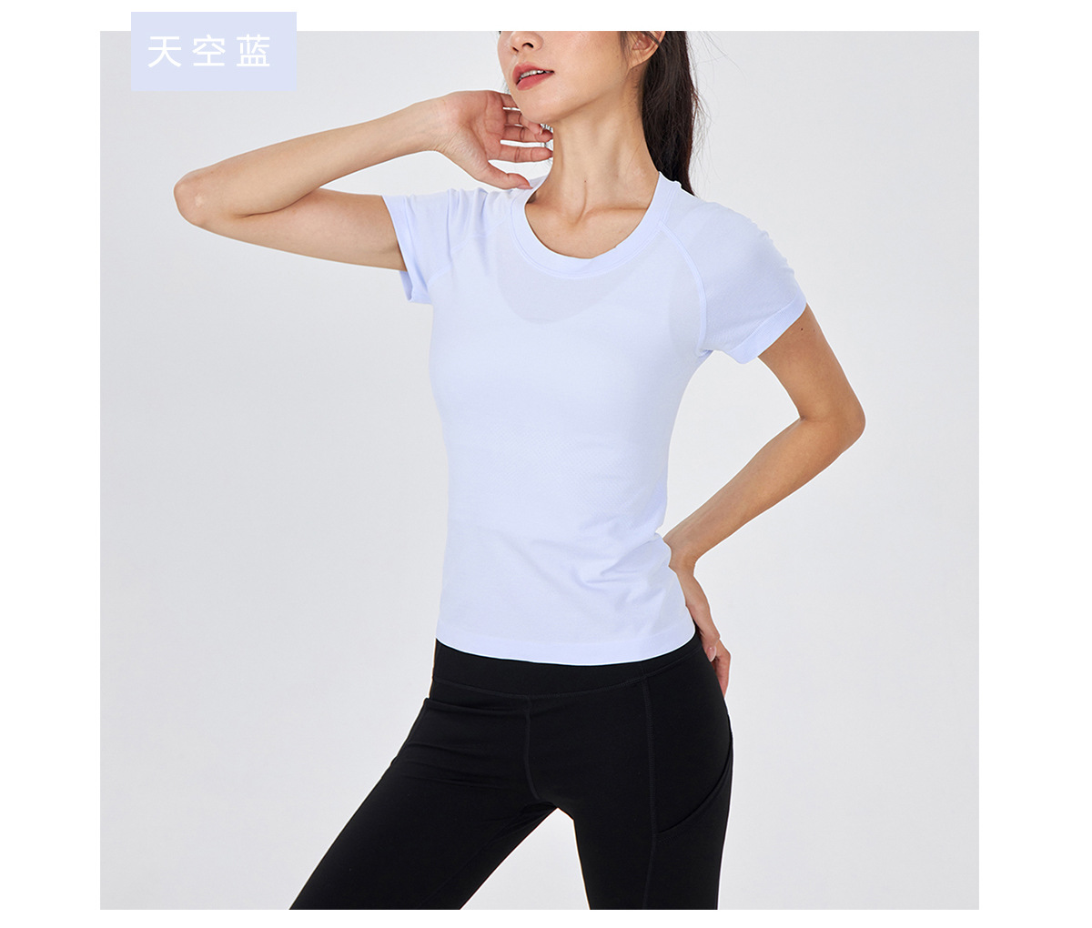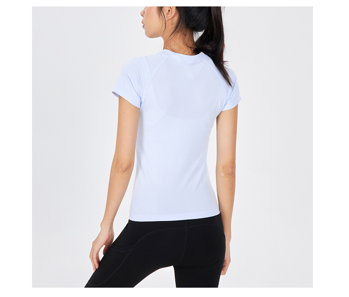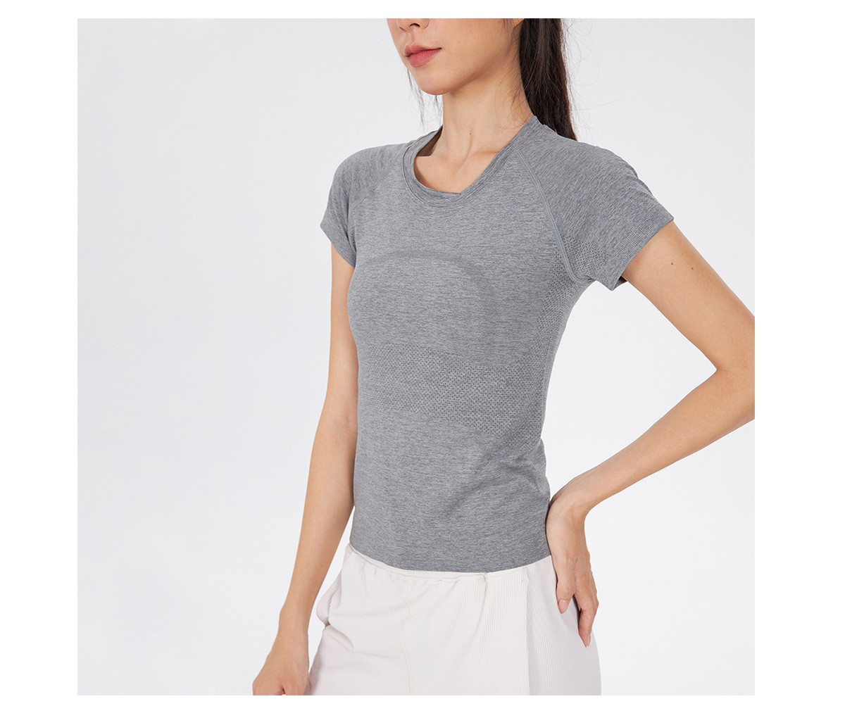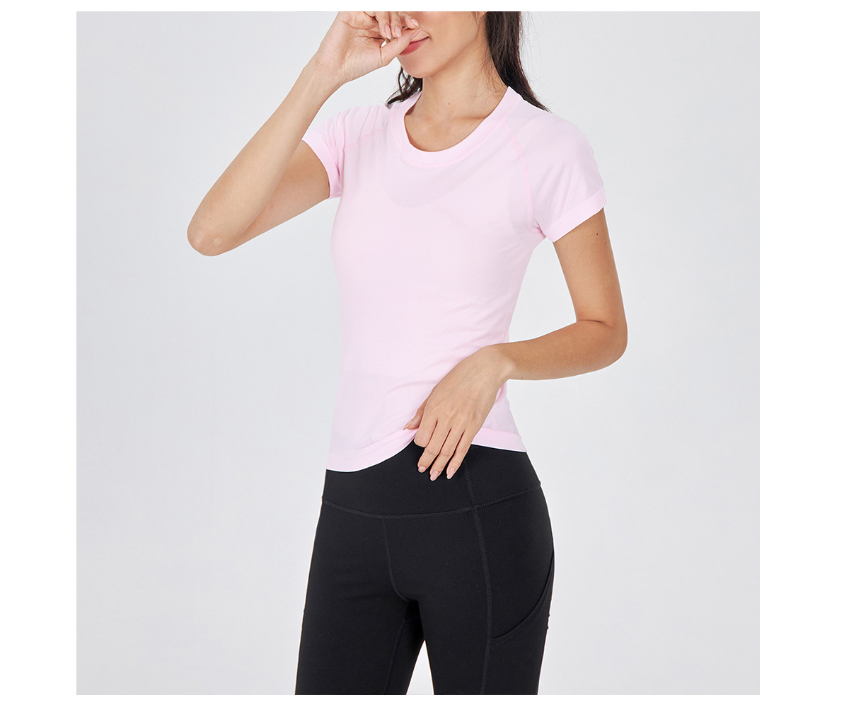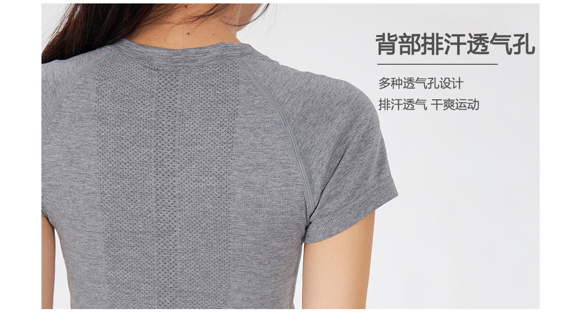 새 버전 니트 이음매없는 짧은 요가 착용 땀 흡수 슬림 통기성 피부 친화적 인 티셔츠 스포츠 러닝 피트니스 반팔