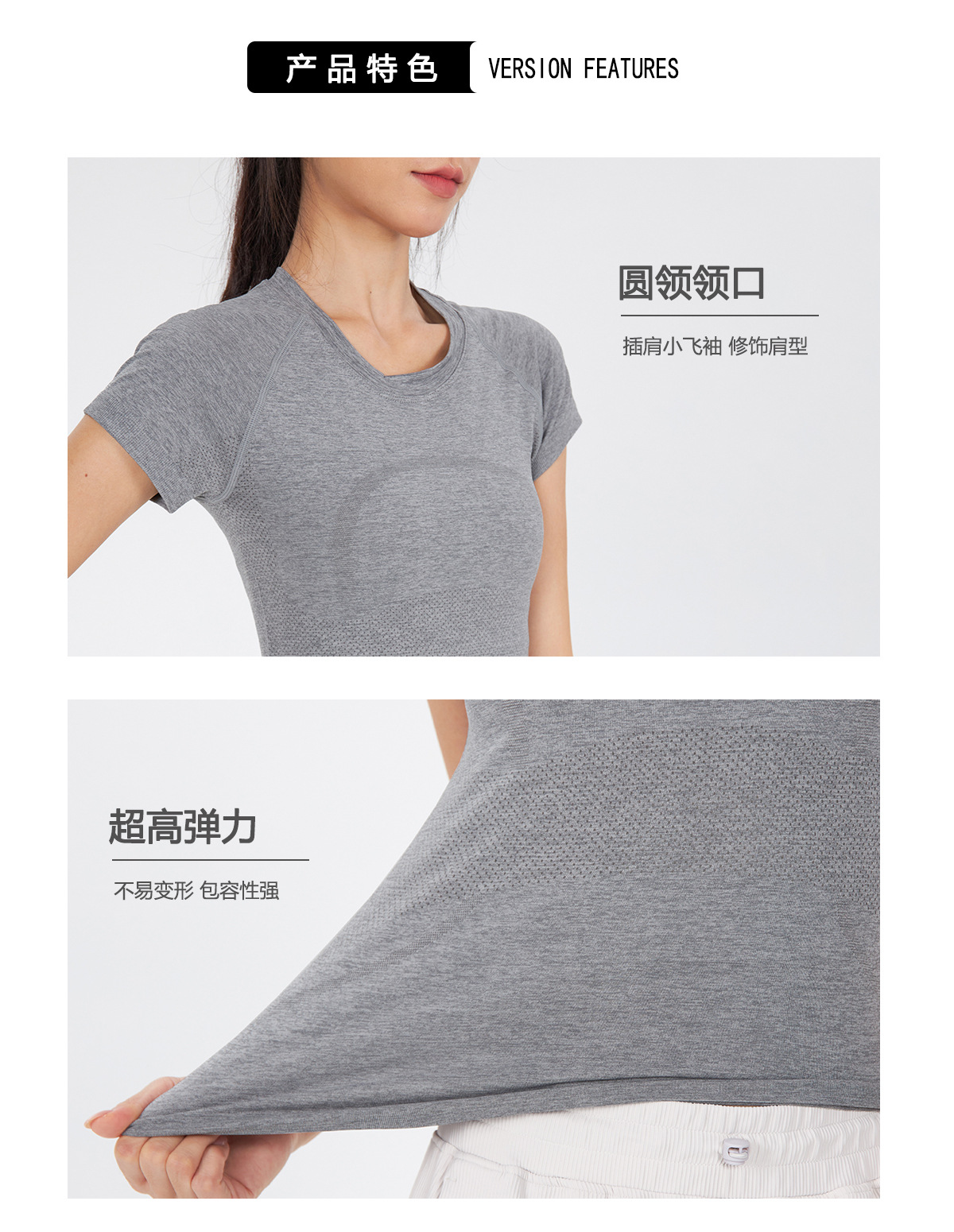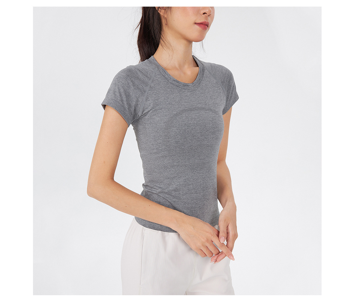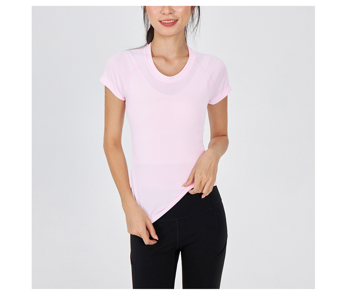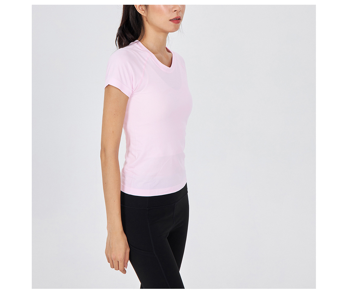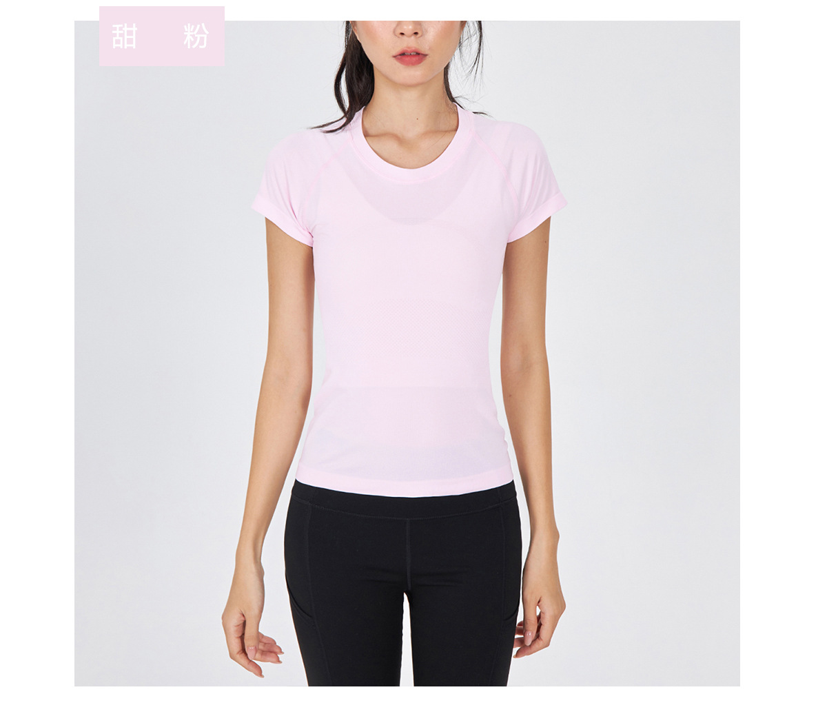 새 버전 니트 이음매없는 짧은 요가 착용 땀 흡수 슬림 통기성 피부 친화적 인 티셔츠 스포츠 러닝 피트니스 반팔