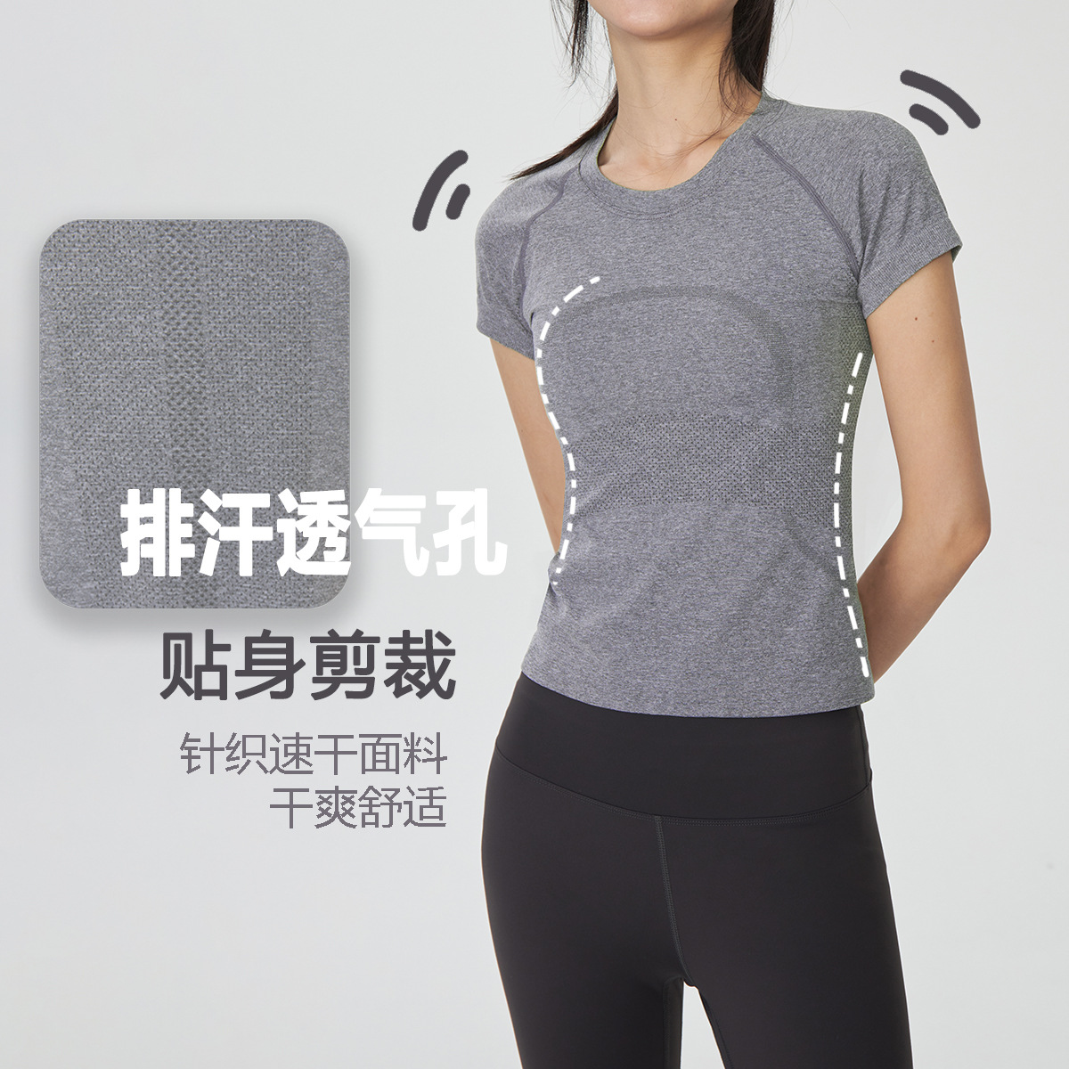 새 버전 니트 이음매없는 짧은 요가 착용 땀 흡수 슬림 통기성 피부 친화적 인 티셔츠 스포츠 러닝 피트니스 반팔스토어 가기