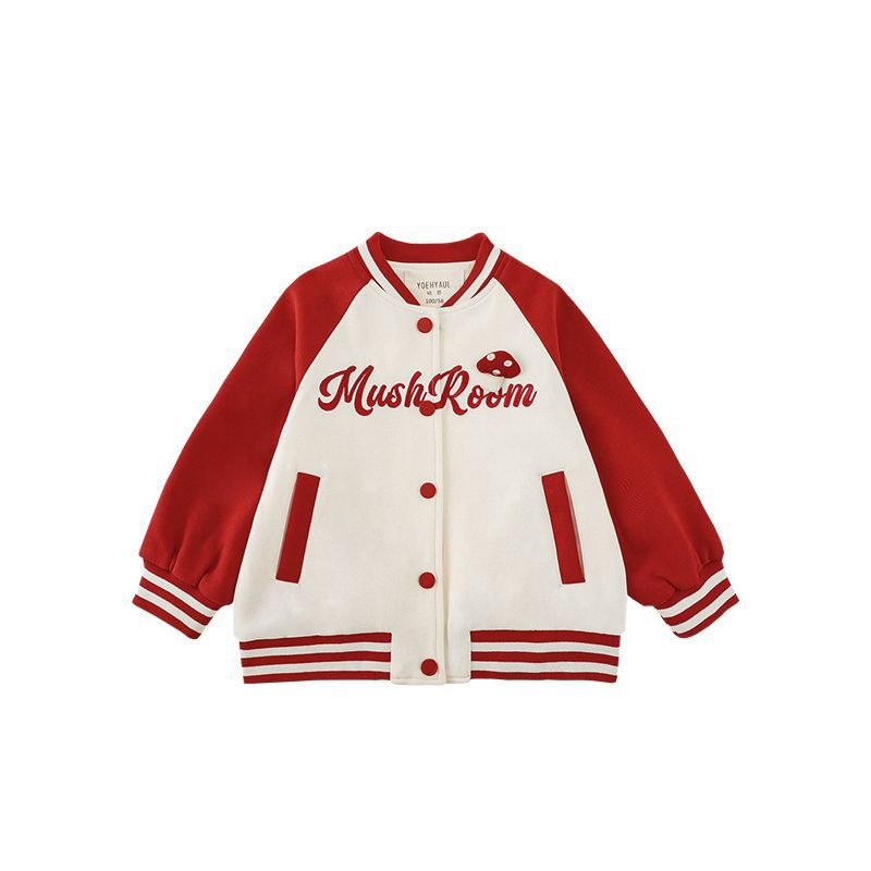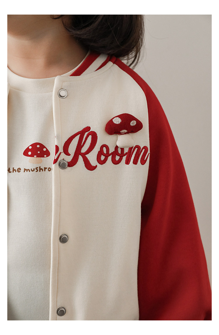 Wurib 소녀의 가을 버섯 시리즈 세트 다이나믹 캠퍼스 클립 리브 재킷 캐주얼 후드 스웨트 셔츠