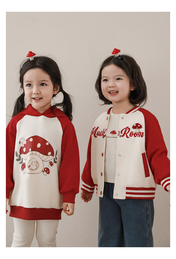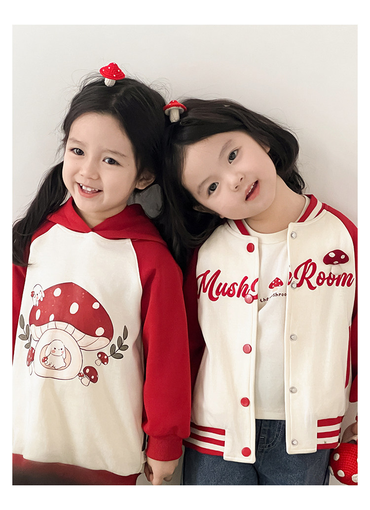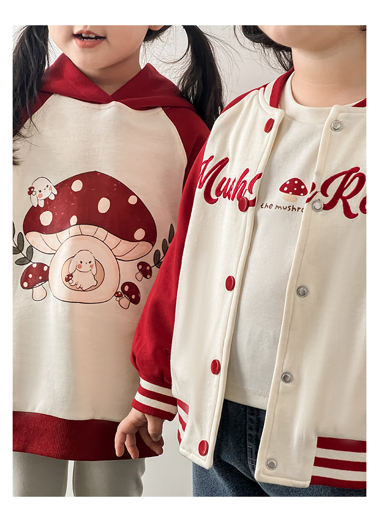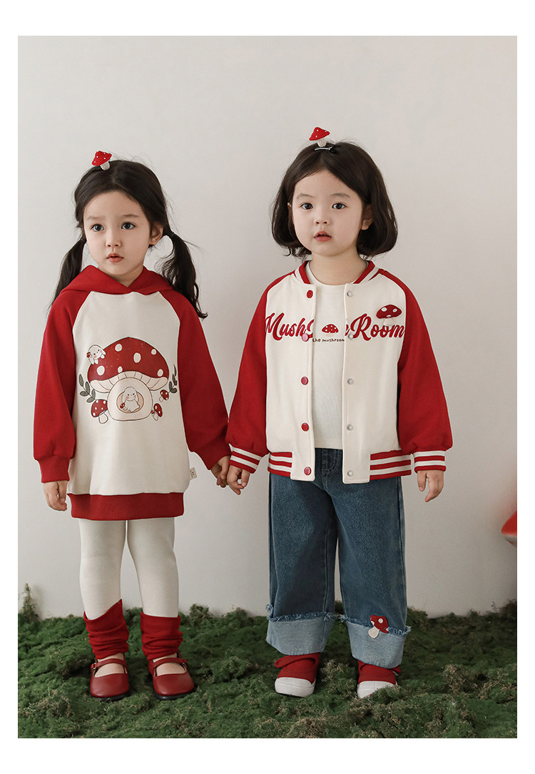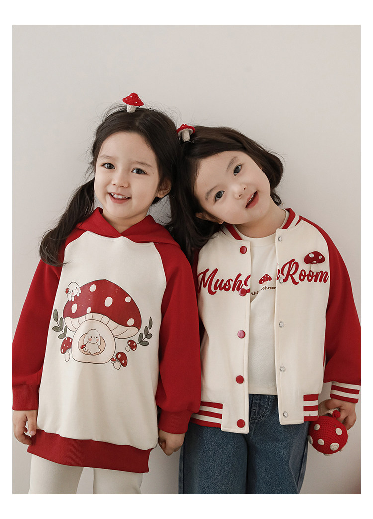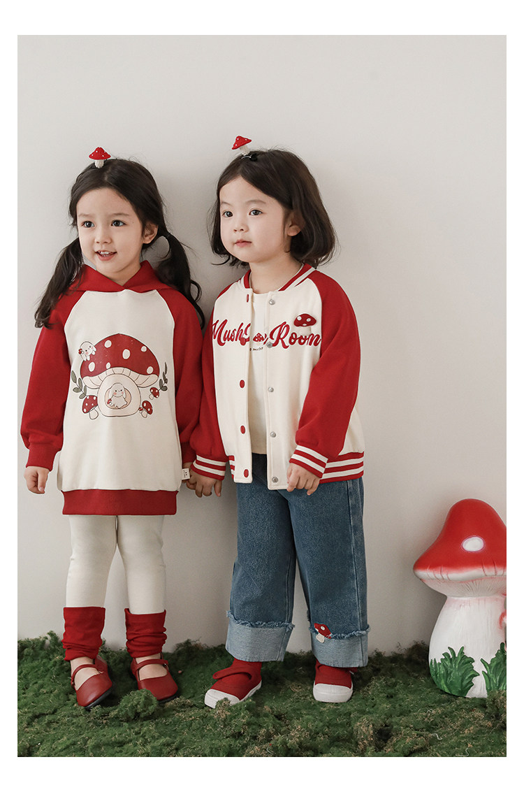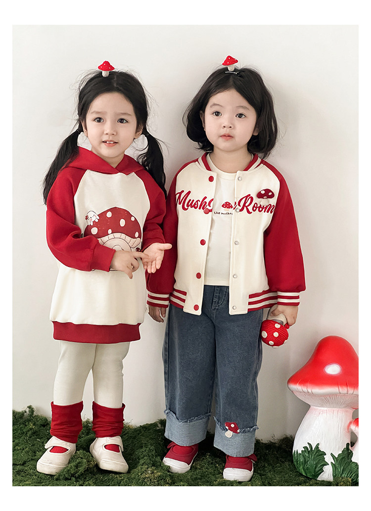 Wurib 소녀의 가을 버섯 시리즈 세트 다이나믹 캠퍼스 클립 리브 재킷 캐주얼 후드 스웨트 셔츠스토어 가기