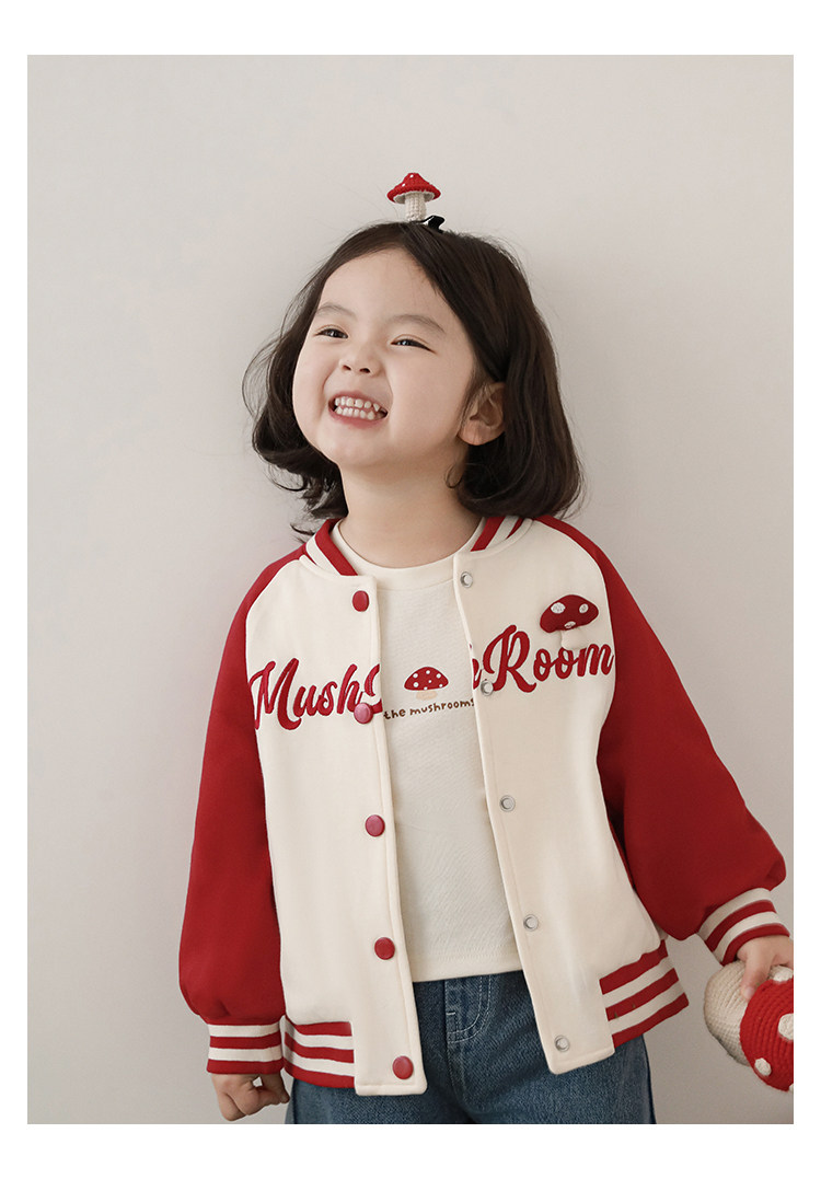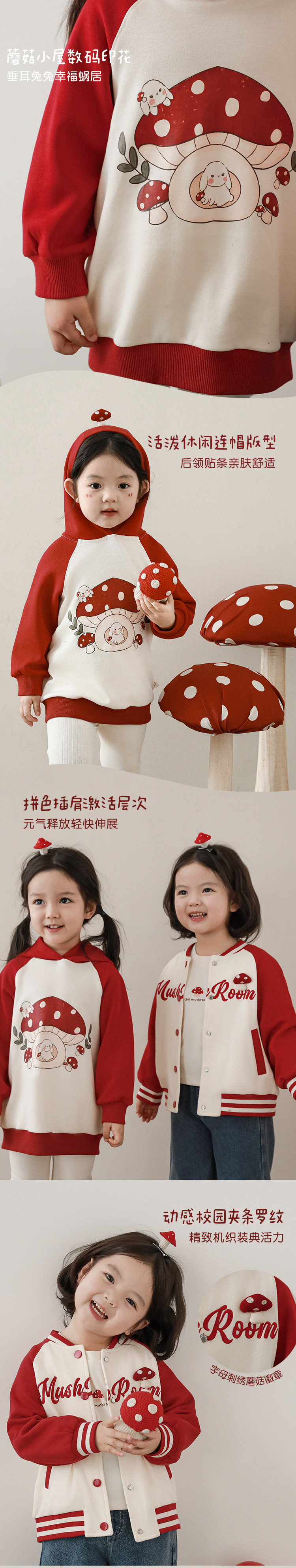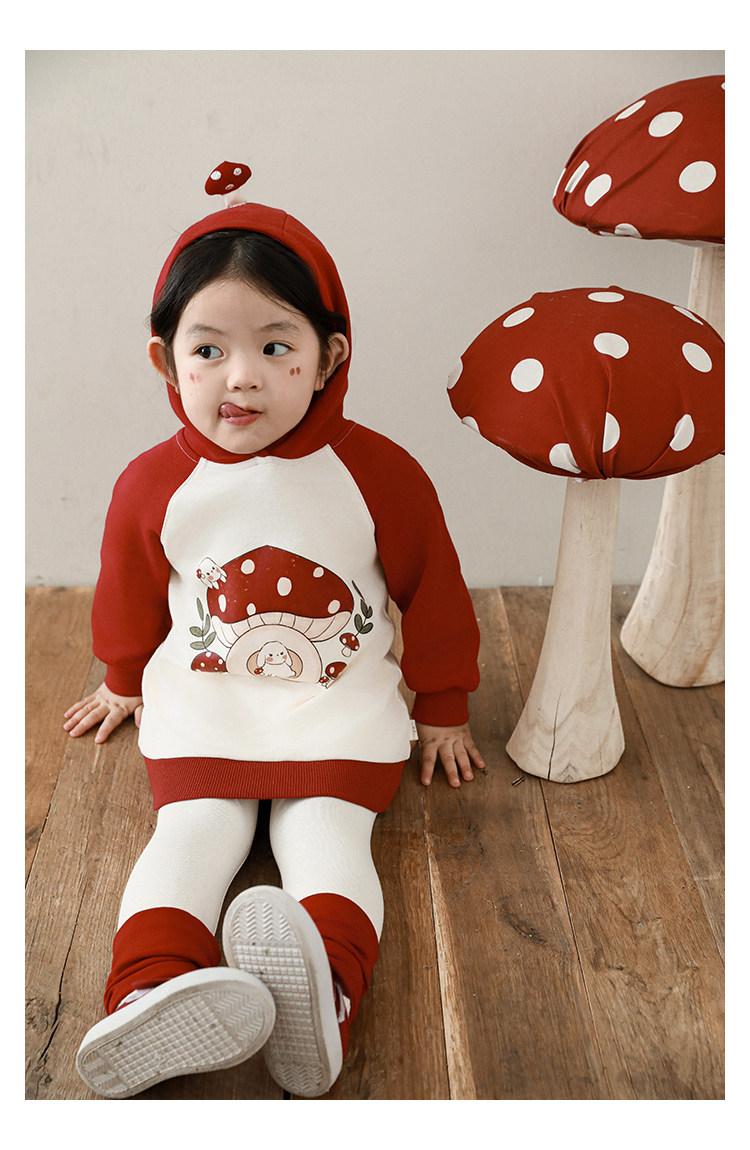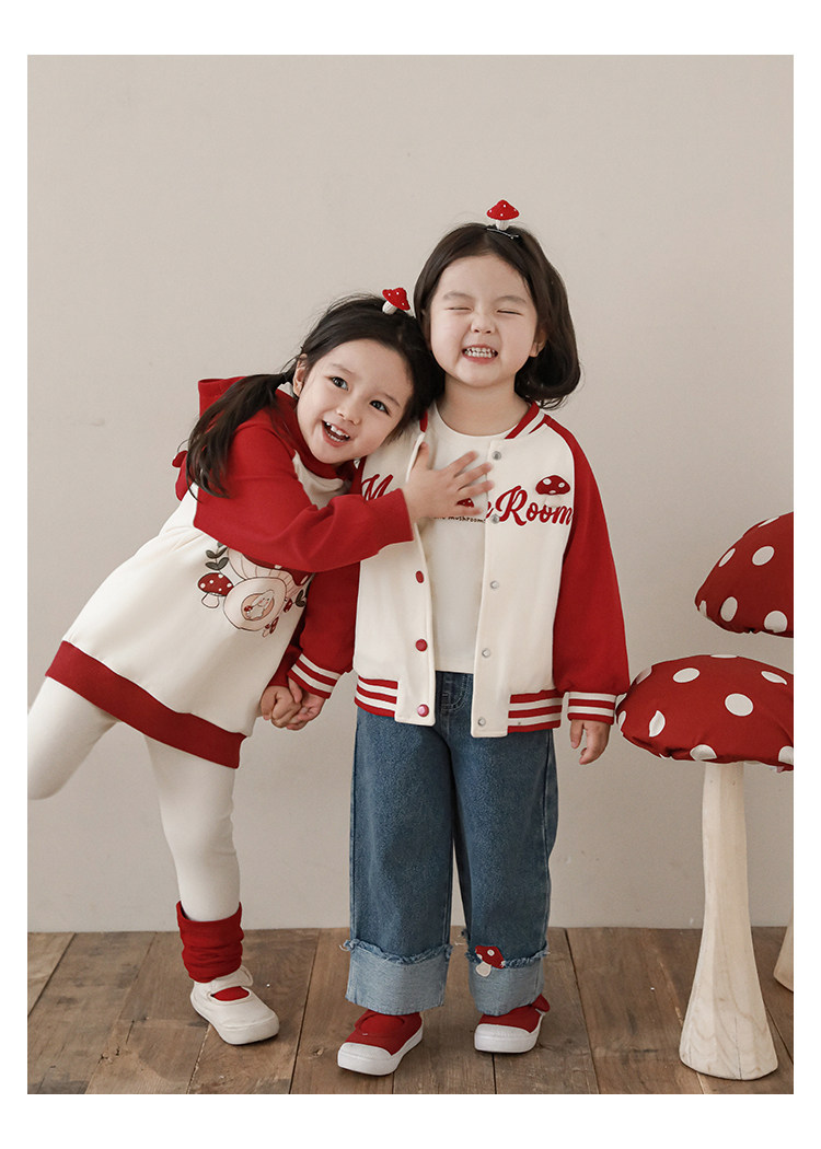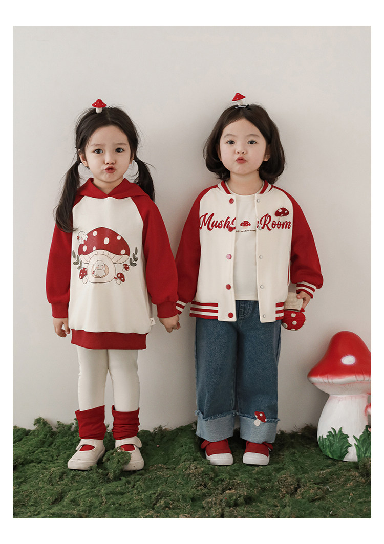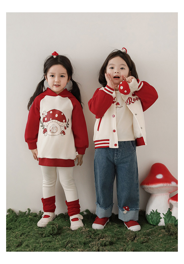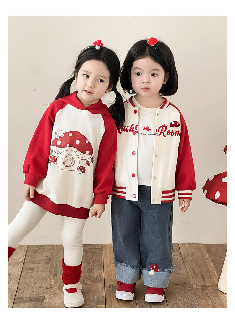 Wurib 소녀의 가을 버섯 시리즈 세트 다이나믹 캠퍼스 클립 리브 재킷 캐주얼 후드 스웨트 셔츠스토어 가기