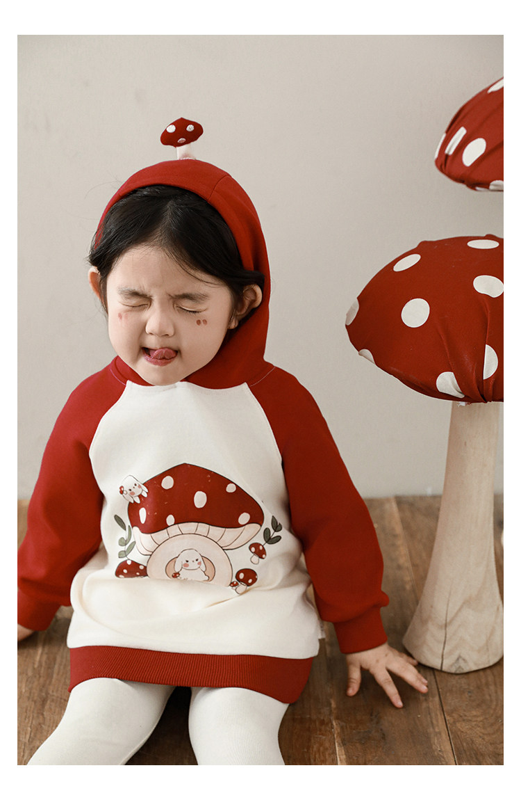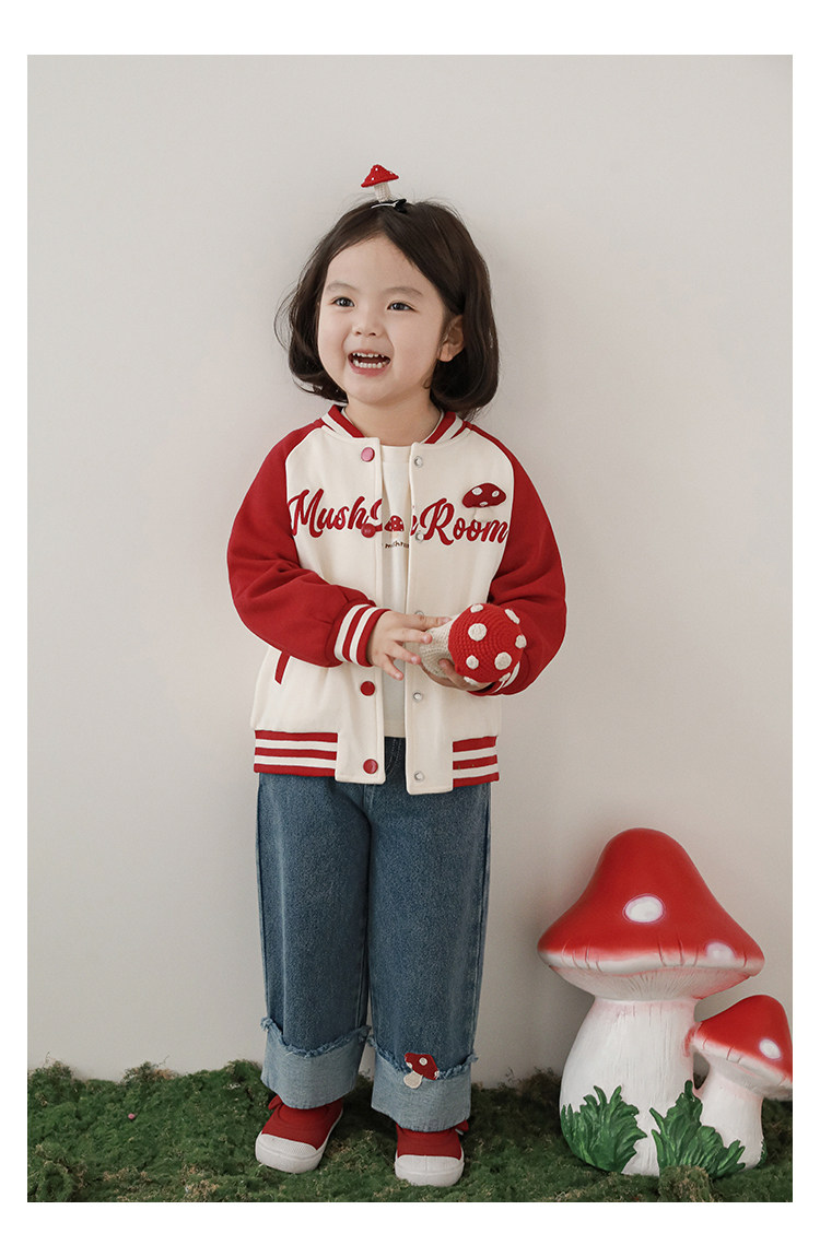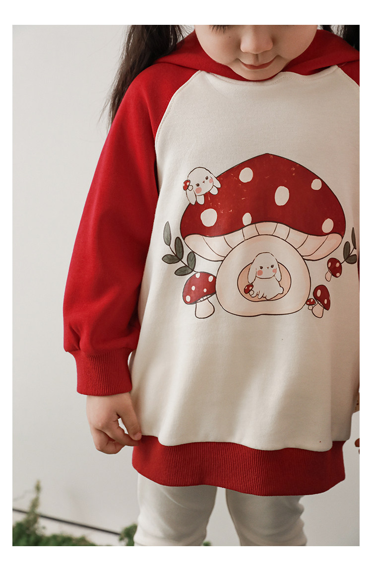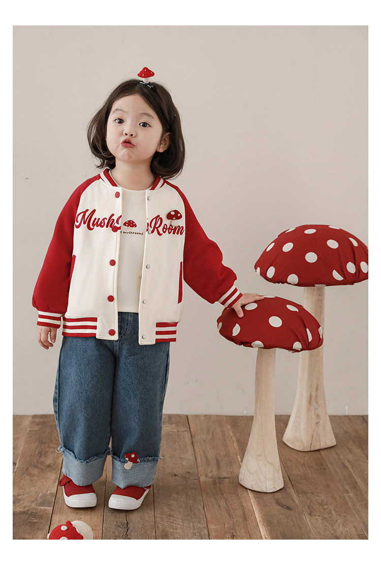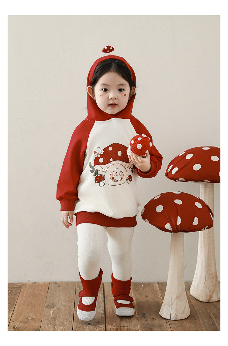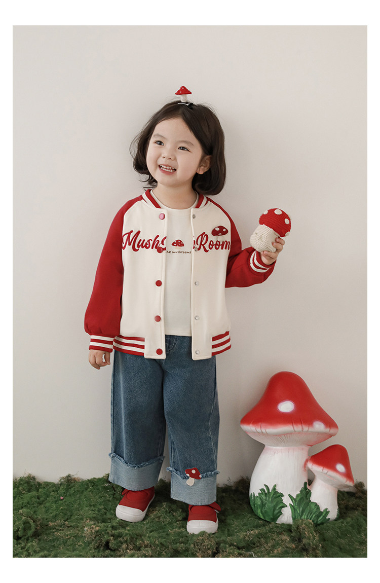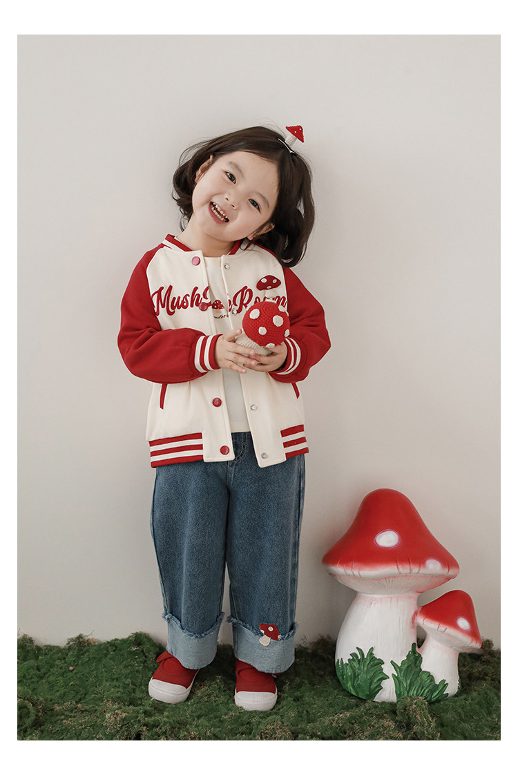 Wurib 소녀의 가을 버섯 시리즈 세트 다이나믹 캠퍼스 클립 리브 재킷 캐주얼 후드 스웨트 셔츠스토어 가기